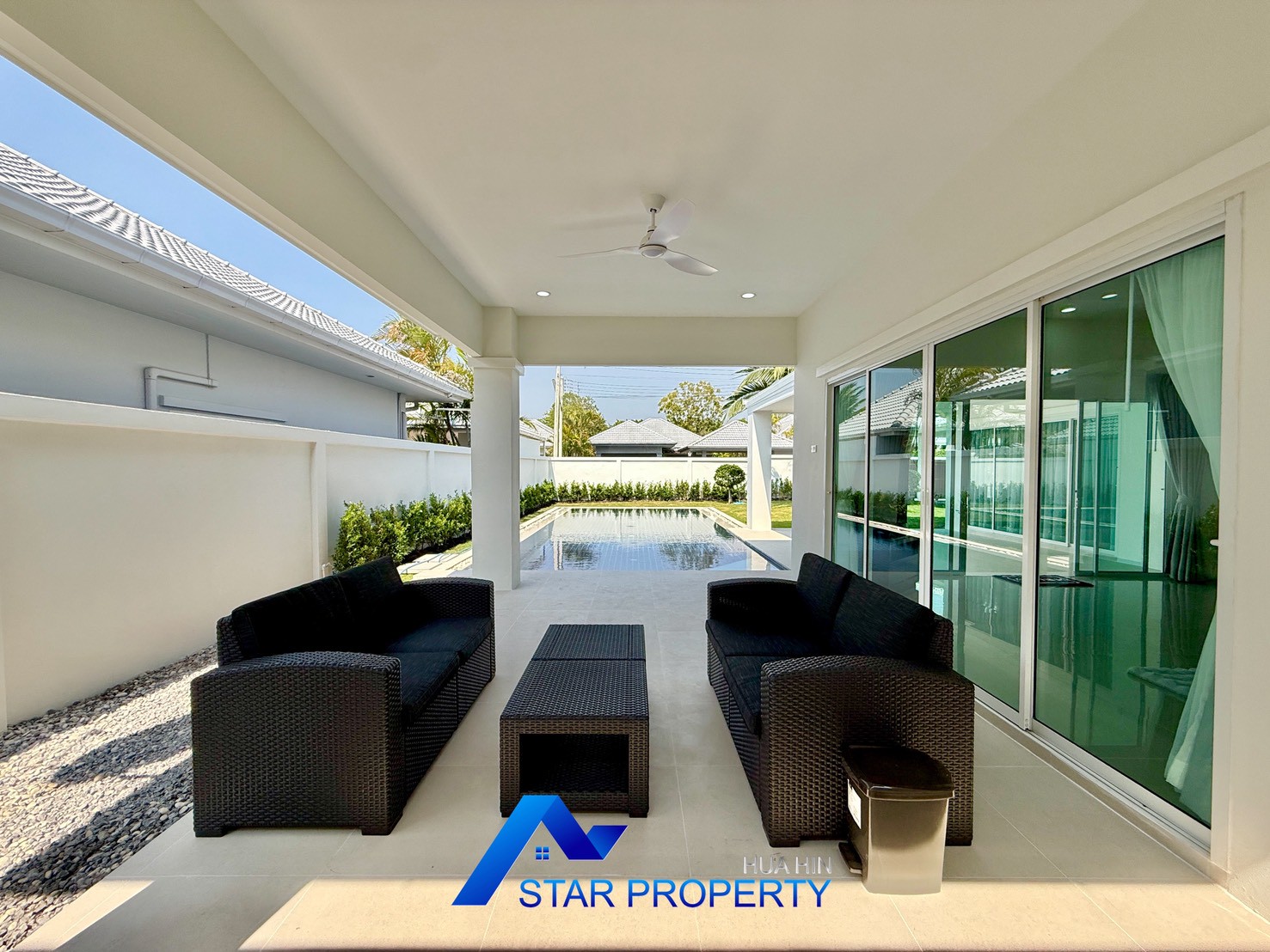 Experience comfortable and private living in this beautifully renovated pool villa, ideally located in a peaceful residential community along Hua Hin Soi 88, approximately 7 km from Hua Hin town center.