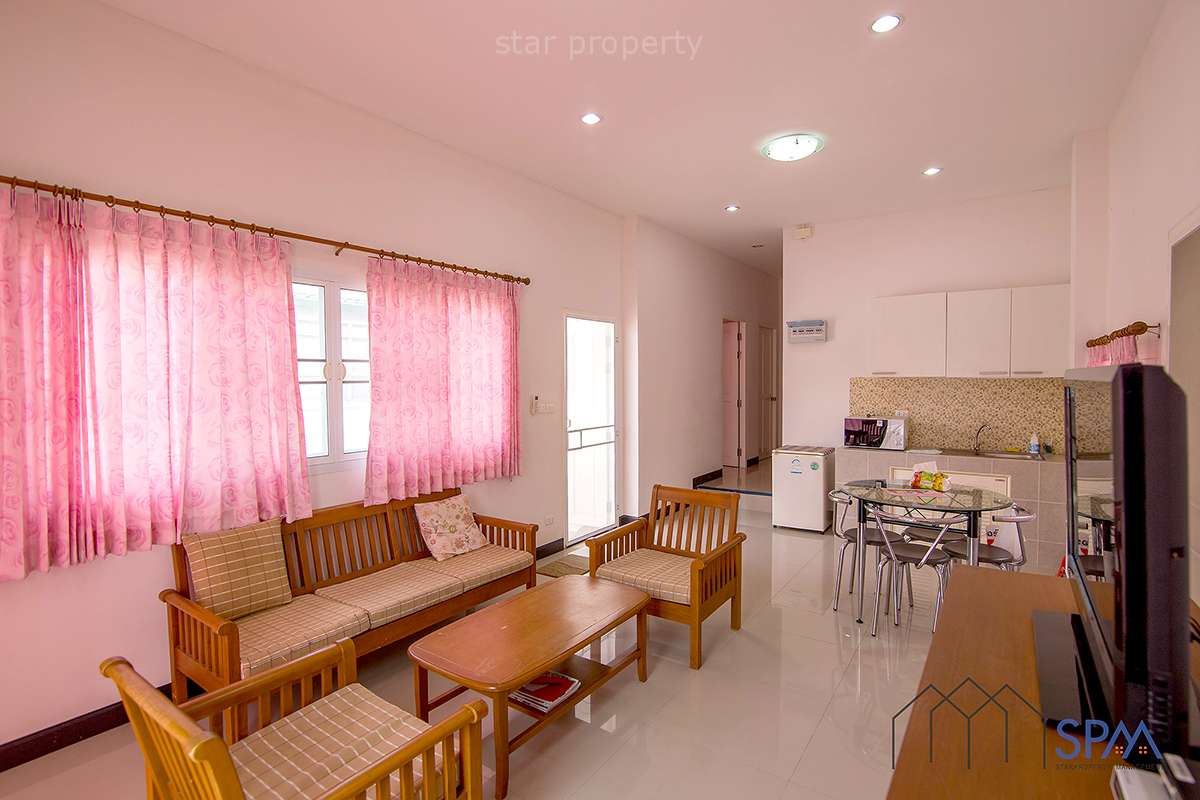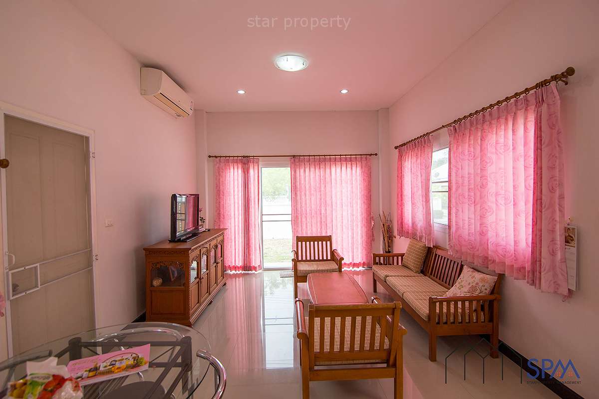 This is a 2 bedroom, 2 bathroom property sits on a land of 220 sq m size plot. It is located in a well-known area Hin Lek Fai which has lots of amenities such as beach, golf course, local shops and markets. Right in front of the house is a nice tiny garden, providing the feeling of space and privacy.