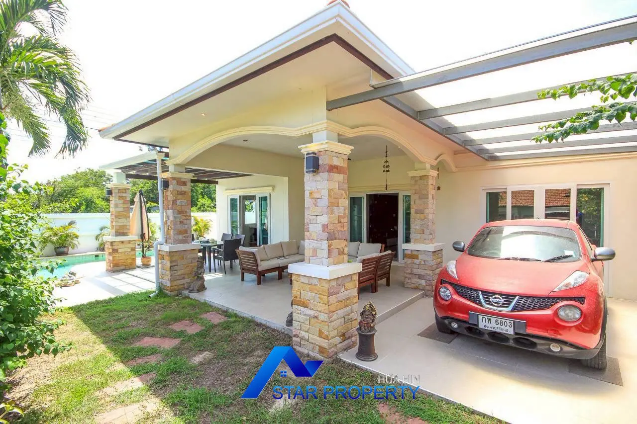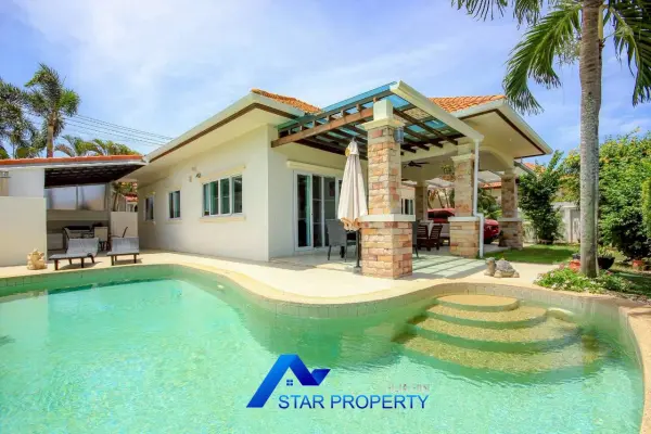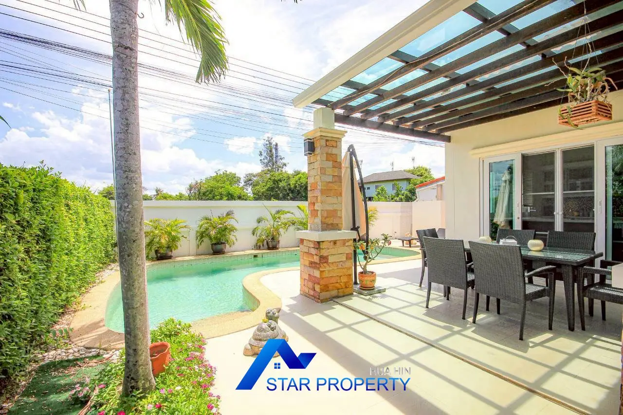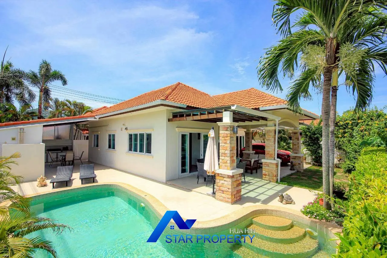 Discover contemporary tropical living in this beautifully designed pool villa, nestled in a peaceful and private setting just 10–15 minutes from downtown Hua Hin. This home perfectly blends modern elegance with relaxed island-style charm, offering a seamless indoor-outdoor lifestyle ideal for families, retirees, or investors.