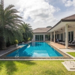 This bungalow in a high quality development. The house is located in soi 56 and has a land area 360 sq.m and a living area of 100 sq.m. There is 3 bedrooms, and 2 bathrooms, air-con, reserve water supply tank, car park and landscaped gardens with a plenty of tropical trees, and a community swimming pool. This house has a nice fitted kitchen and adjacent to that is the dining/living area.