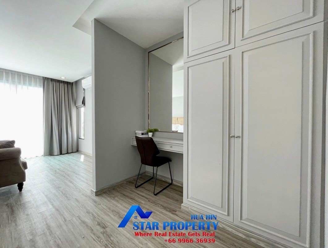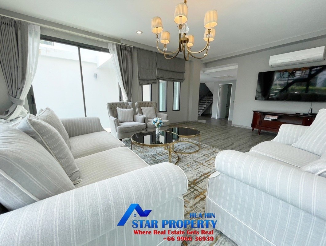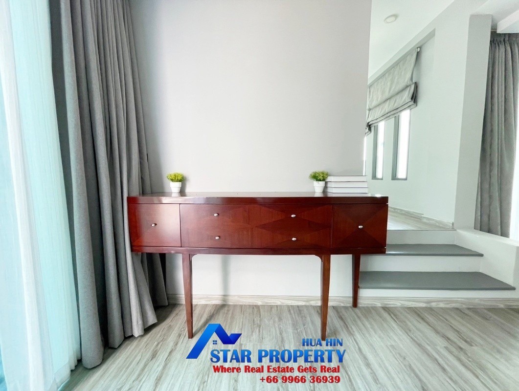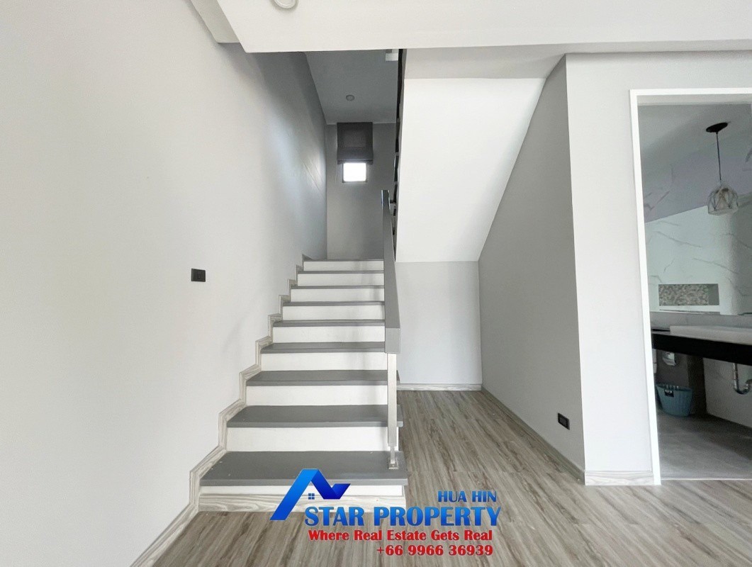 This Modern inspired design is truly remarkable inside and out. Perfect located and very private neighbourhood (Only 5 houses). At 200 square wah and walk 150 m to the beach. This 3 storey house offers a unique furniture, mix and match and blend of leisure very luxury, near to Makro Huahin, delicious restaurants, and cafes, schools. Thus, this modern pool villa provides an exclusive opportunity to own a most beautiful property.