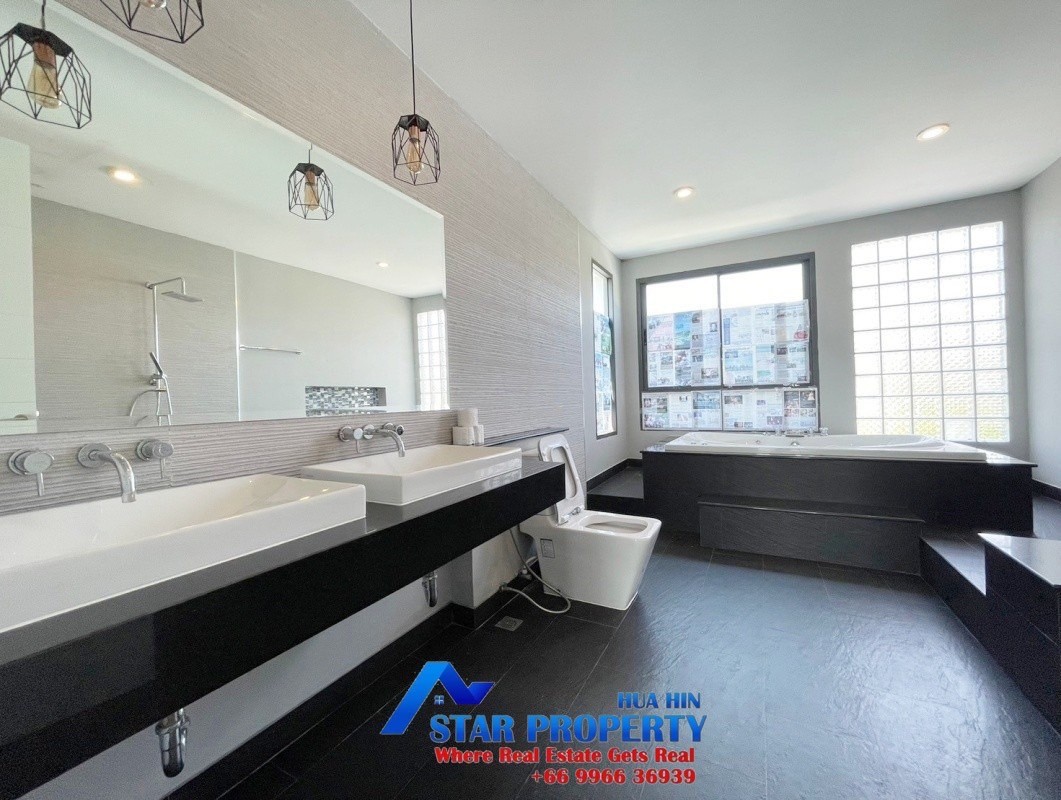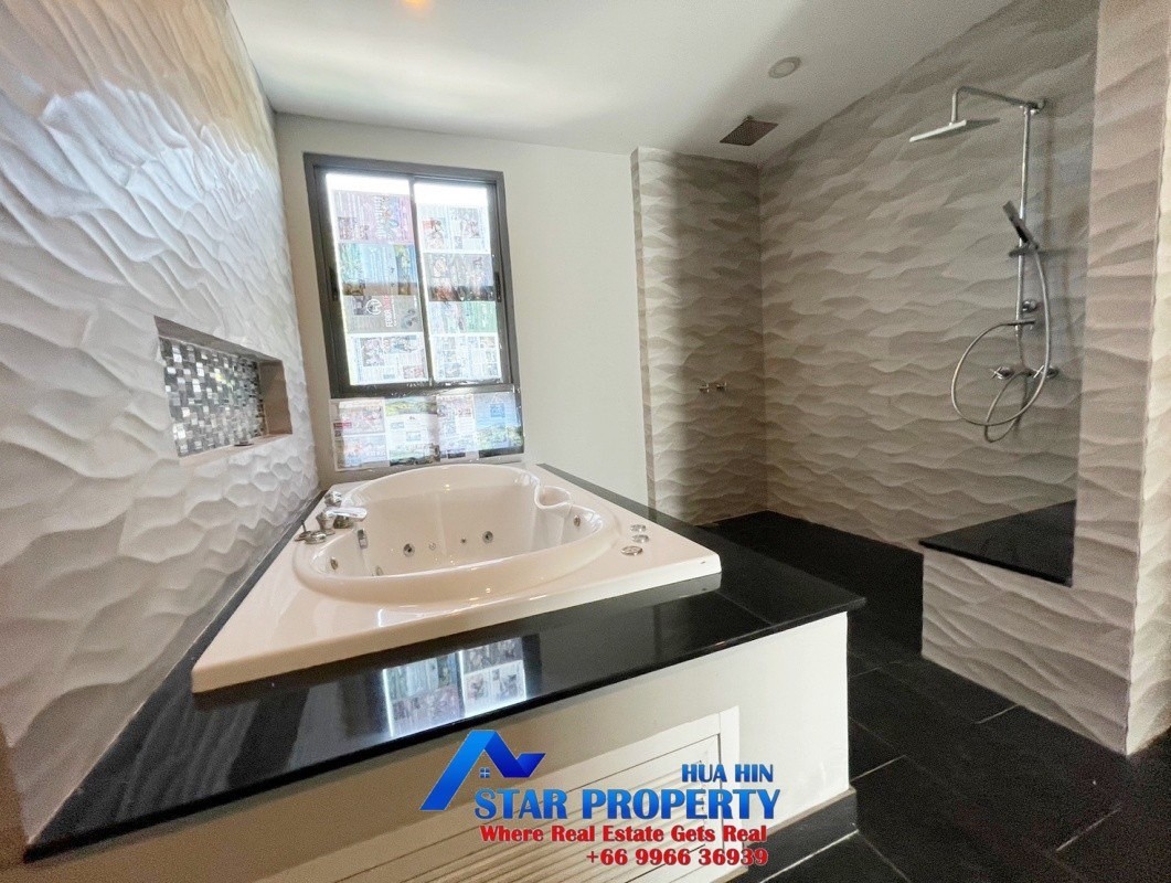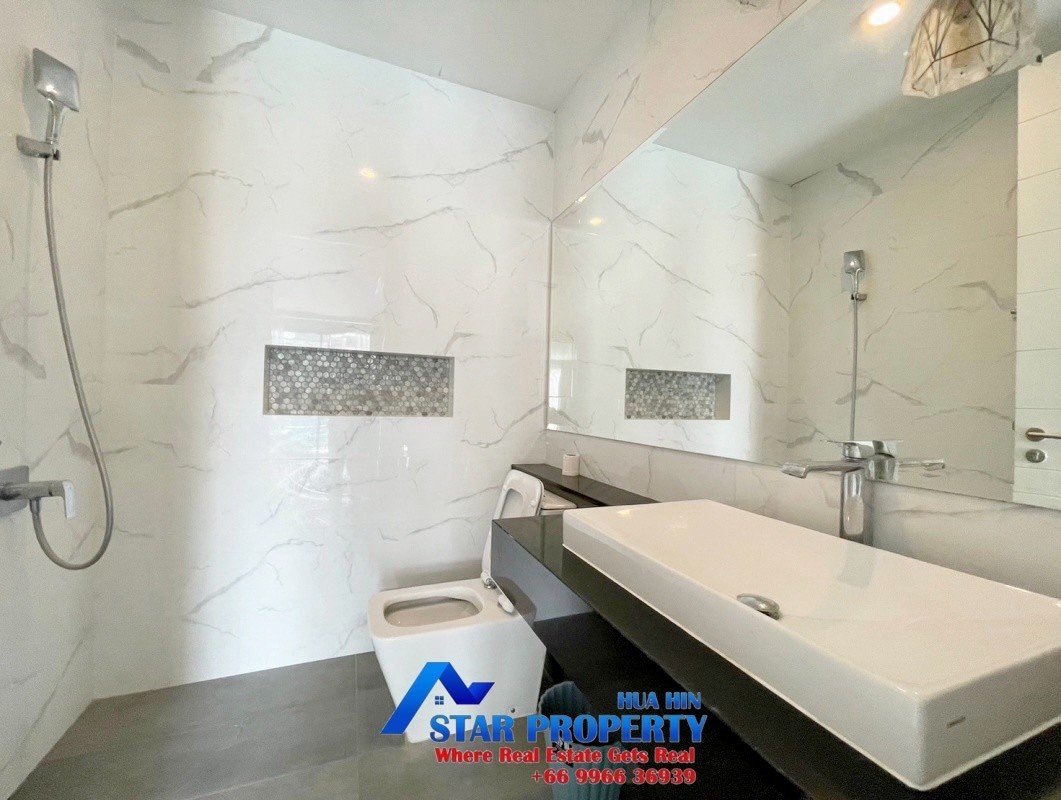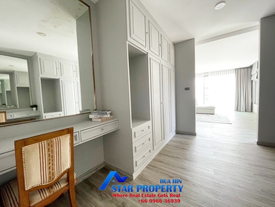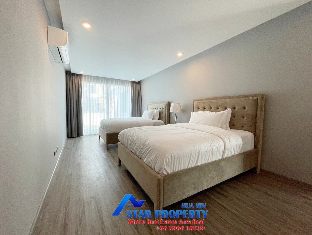 This Modern inspired design is truly remarkable inside and out. Perfect located and very private neighbourhood (Only 5 houses). At 200 square wah and walk 150 m to the beach. This 3 storey house offers a unique furniture, mix and match and blend of leisure very luxury, near to Makro Huahin, delicious restaurants, and cafes, schools. Thus, this modern pool villa provides an exclusive opportunity to own a most beautiful property.