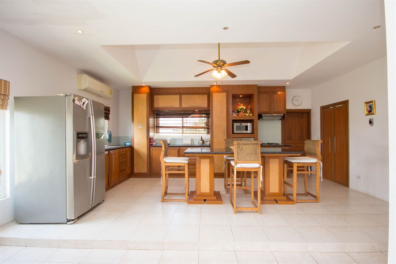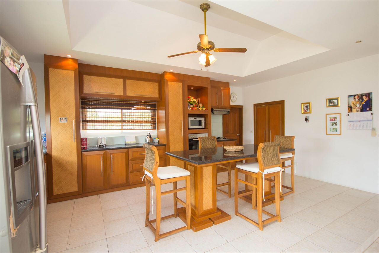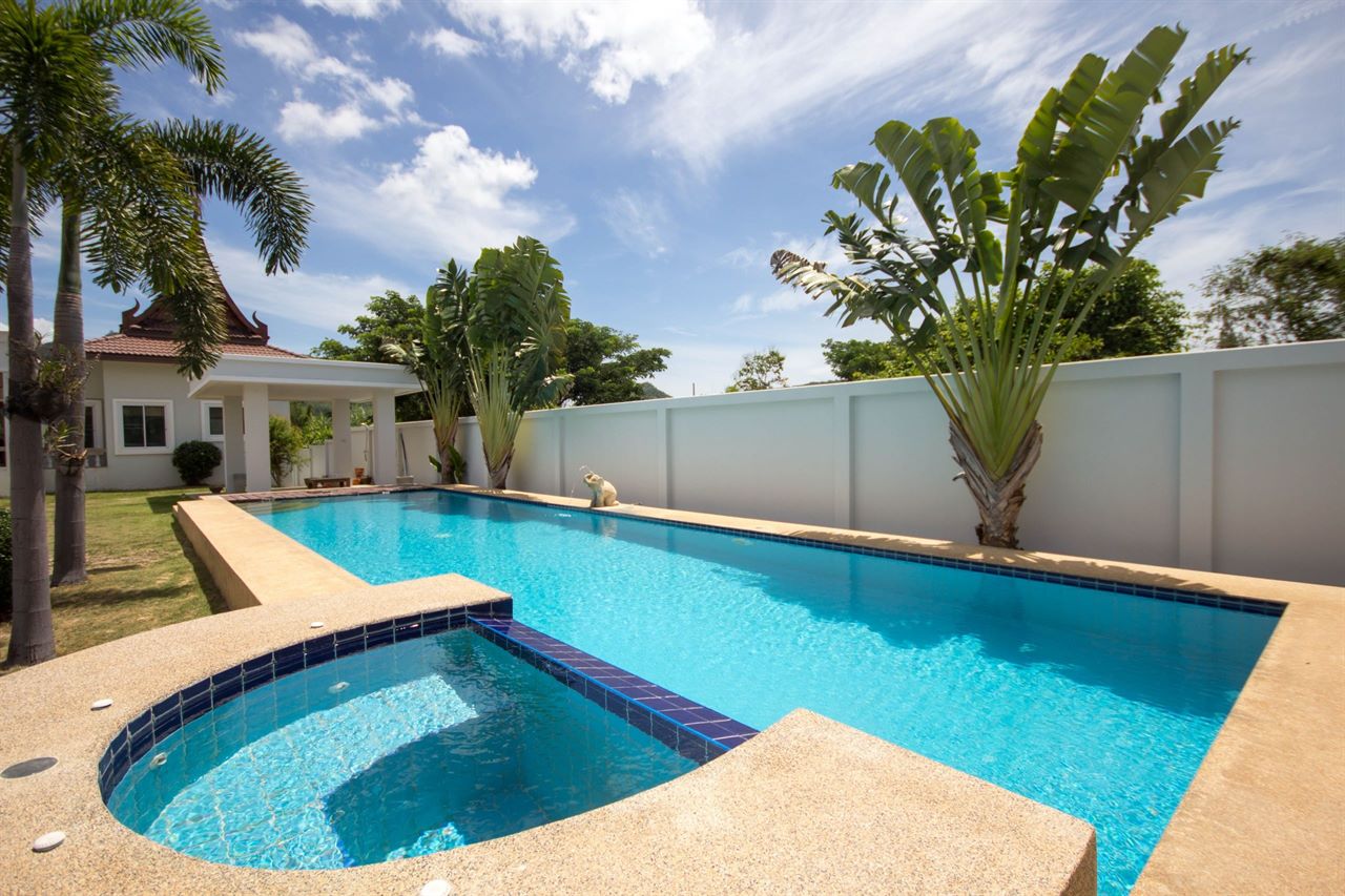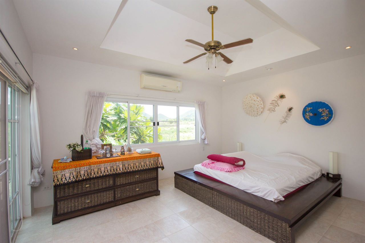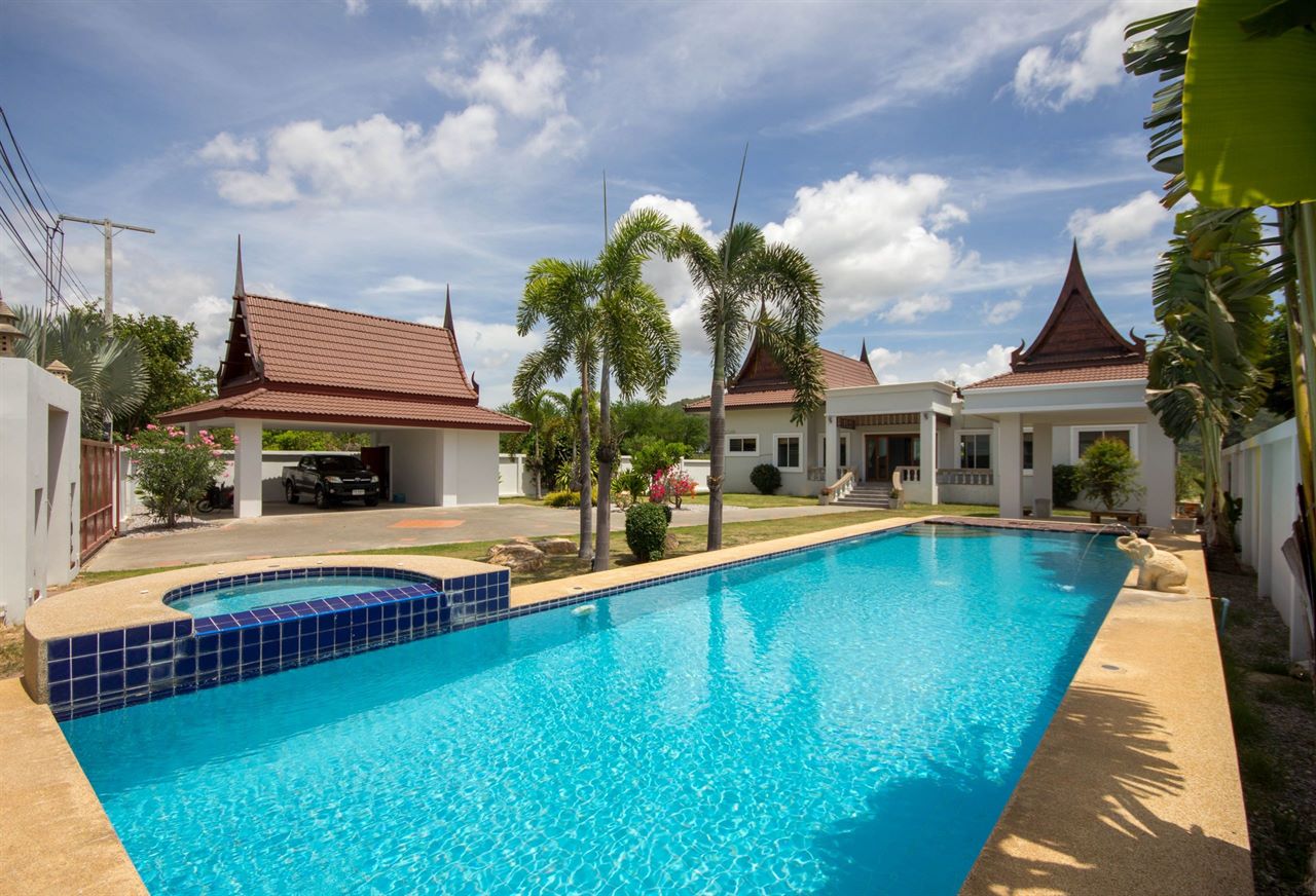 A beautiful and luxurious home, situated in an exclusive estate only 6 kilometers from Hua Hin city centre. This house has a true asian feel,all modern conveniences. The lush, tropical garden stocked with mature plants surrounds the sun deck and private swimming pool. The inside of the house has been designed to meet high construction specifications. It has been finished to modern and European standards. The property has a fitted European kitchen with western appliances, storage room, outside terrace with mountain view, beautiful landscaped gardens, also covered barbecue area and car parking. This luxurious home is essential viewing to appreciate its many quality features.