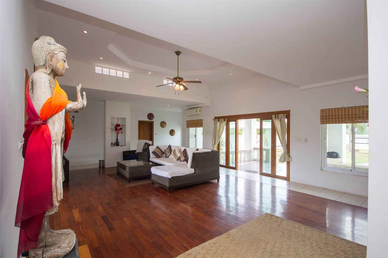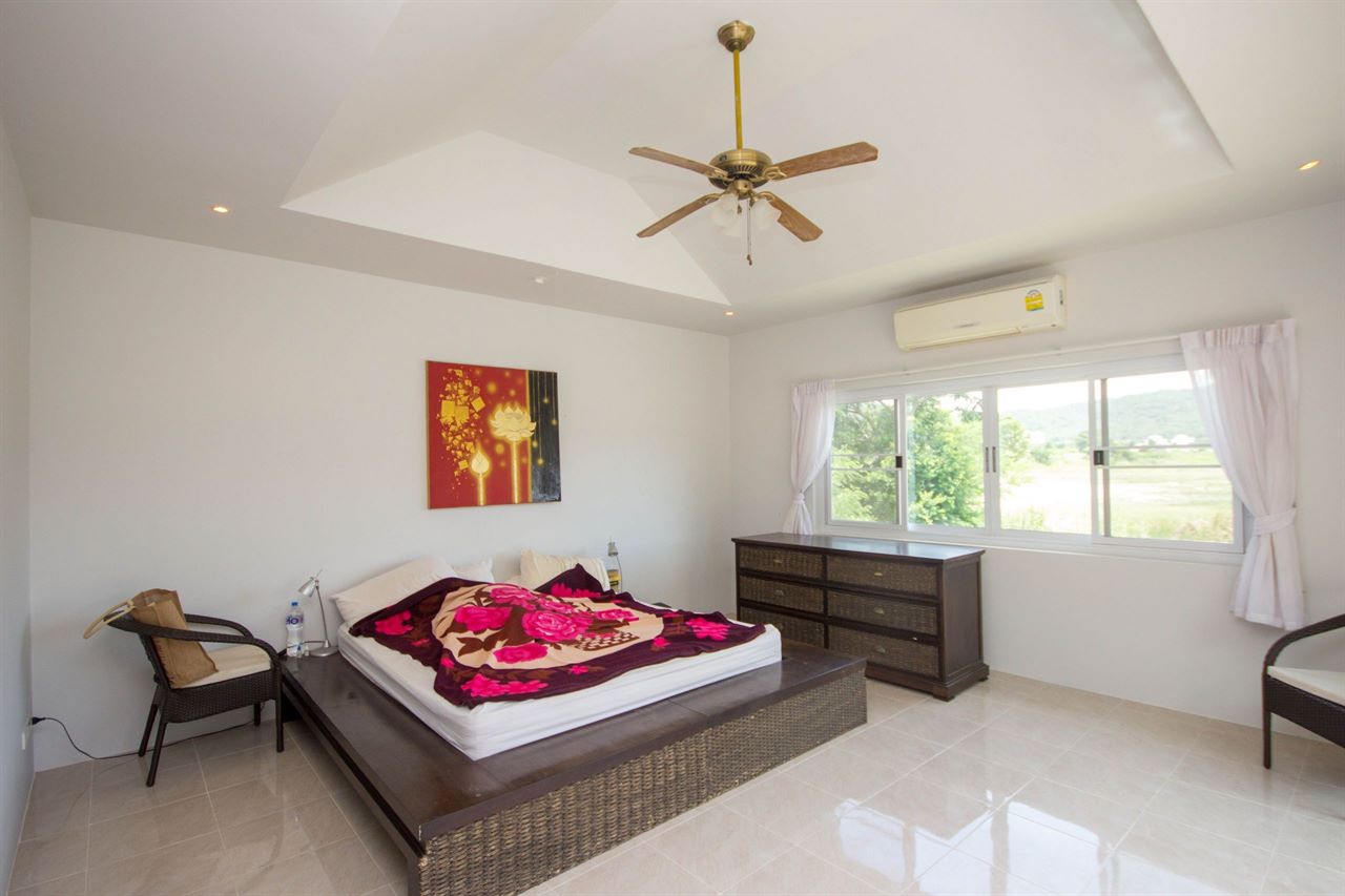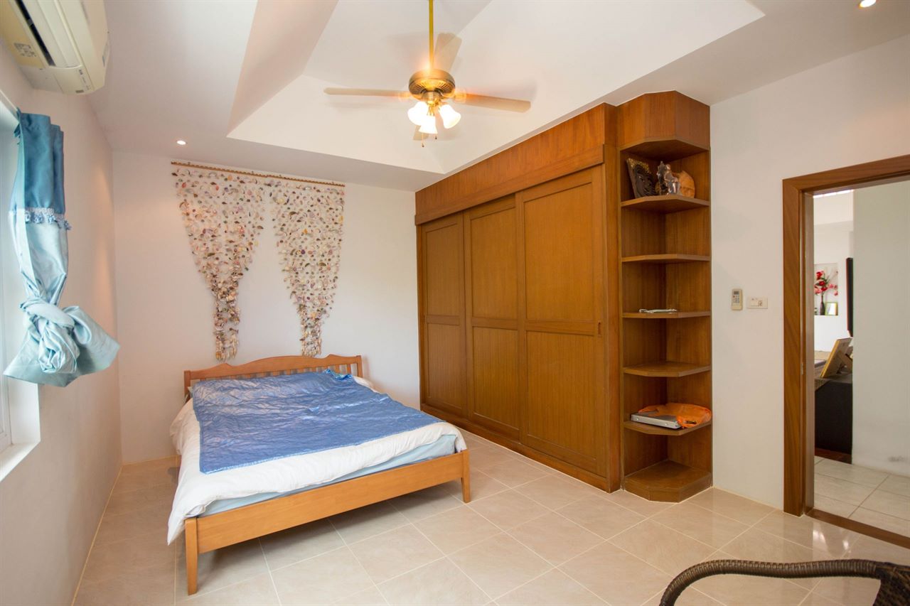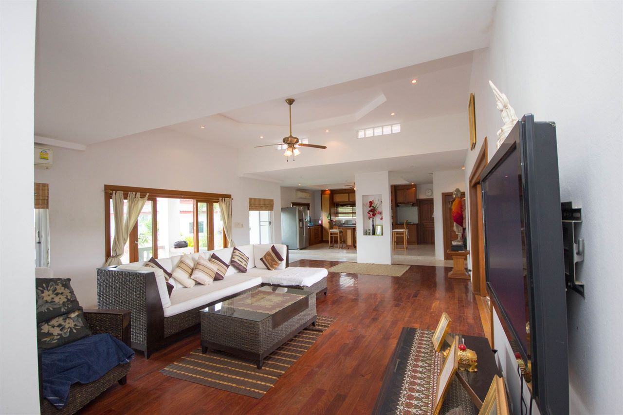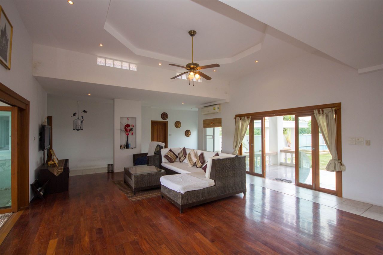 A beautiful and luxurious home, situated in an exclusive estate only 6 kilometers from Hua Hin city centre. This house has a true asian feel,all modern conveniences. The lush, tropical garden stocked with mature plants surrounds the sun deck and private swimming pool. The inside of the house has been designed to meet high construction specifications. It has been finished to modern and European standards. The property has a fitted European kitchen with western appliances, storage room, outside terrace with mountain view, beautiful landscaped gardens, also covered barbecue area and car parking. This luxurious home is essential viewing to appreciate its many quality features.