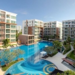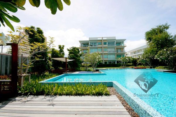 For sale a beach front, well presented, south facing, studio apartment at “The Beach Palace” which is a low rise condominium complex located between the 5 star Springfield@Sea Resort & Spa and prestigious beach front private Thai residences approximately 5km south of Cha Am and 20km north of Hua Hin. The 53 sq.m. apartment is on the ground Floor ,with pool access from the room and comes fully furnished to a very high standard. The kitchen is European in style with an electric hob, a fridge and ,washing machine.Has a very large balcony to enjoy the pool view.