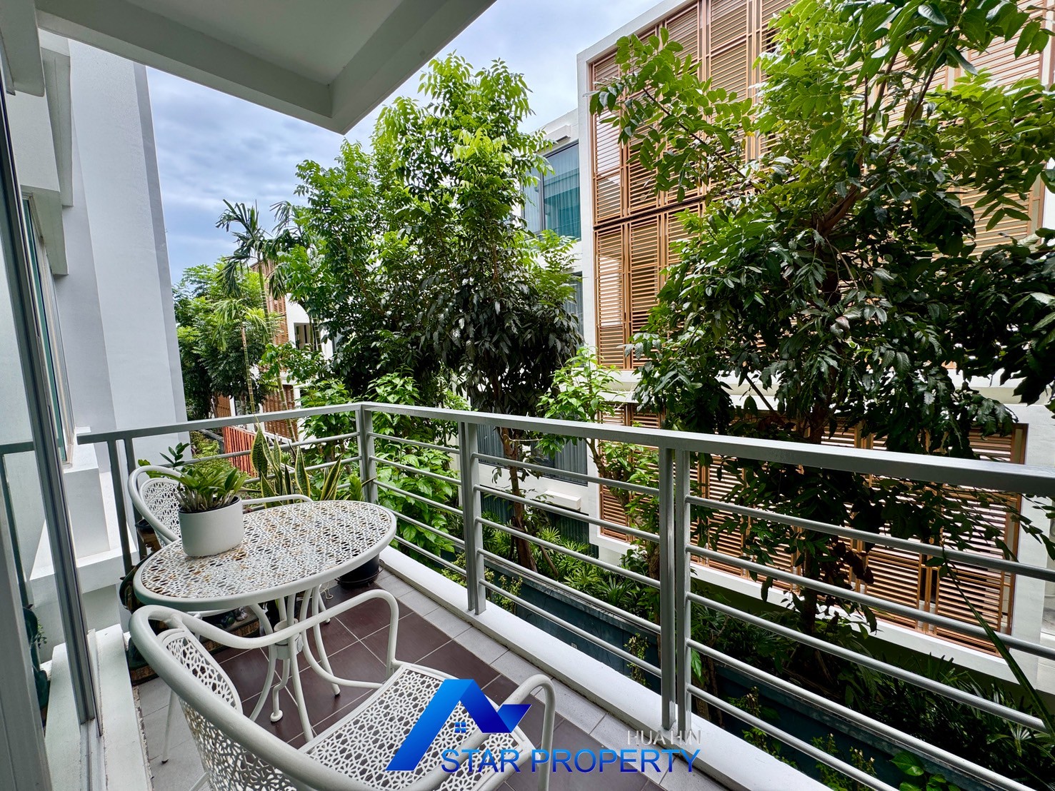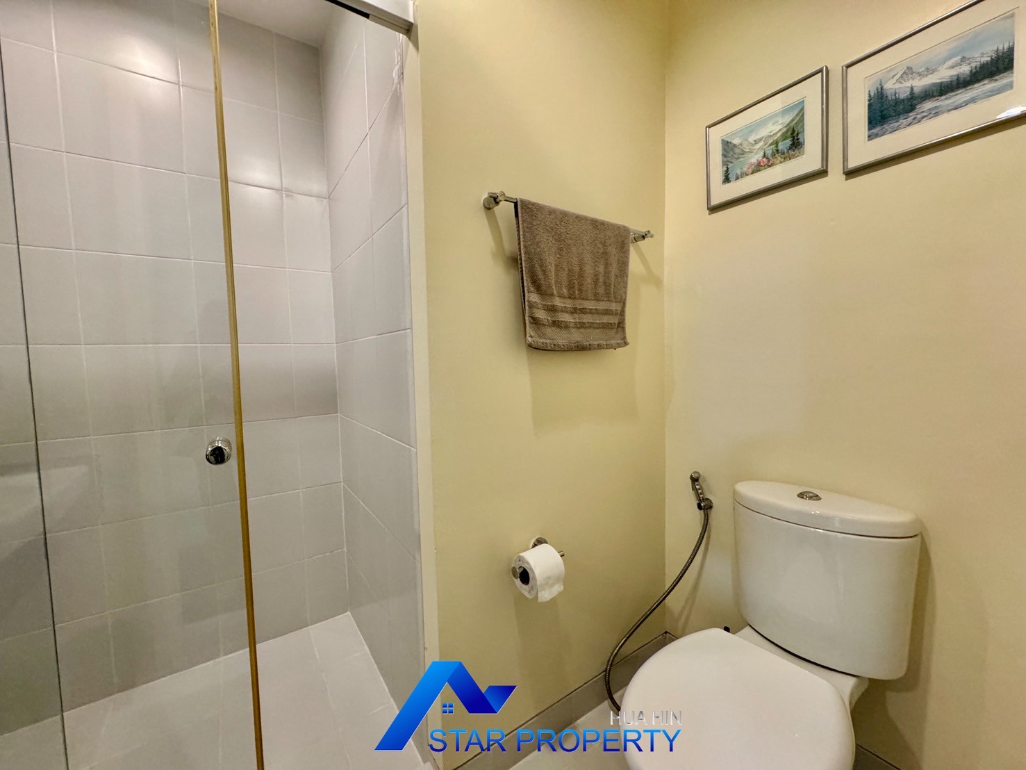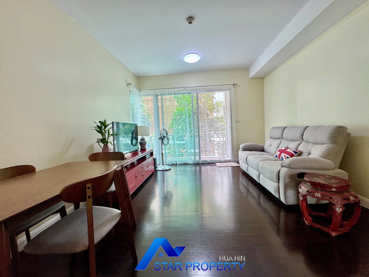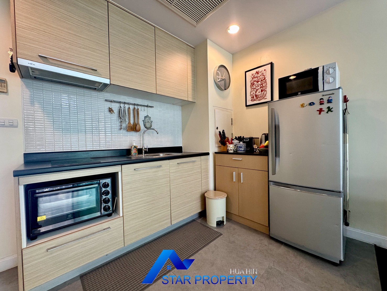 Condominium in the heart of the city, opposite Market Village shopping mall. Not many units, total 93 units. Direct access to the most beautiful beach in Hua Hin. This corner unit consists of 2 bedrooms and 2 bathrooms, fully furnished ( except personal stuff and some pieces of decoration, 2nd floor, usable area 74 sq.m. Open living/dining/kitchen area with sliding doors to a private balcony with garden and tree views on the left. This property is not to be missed!!