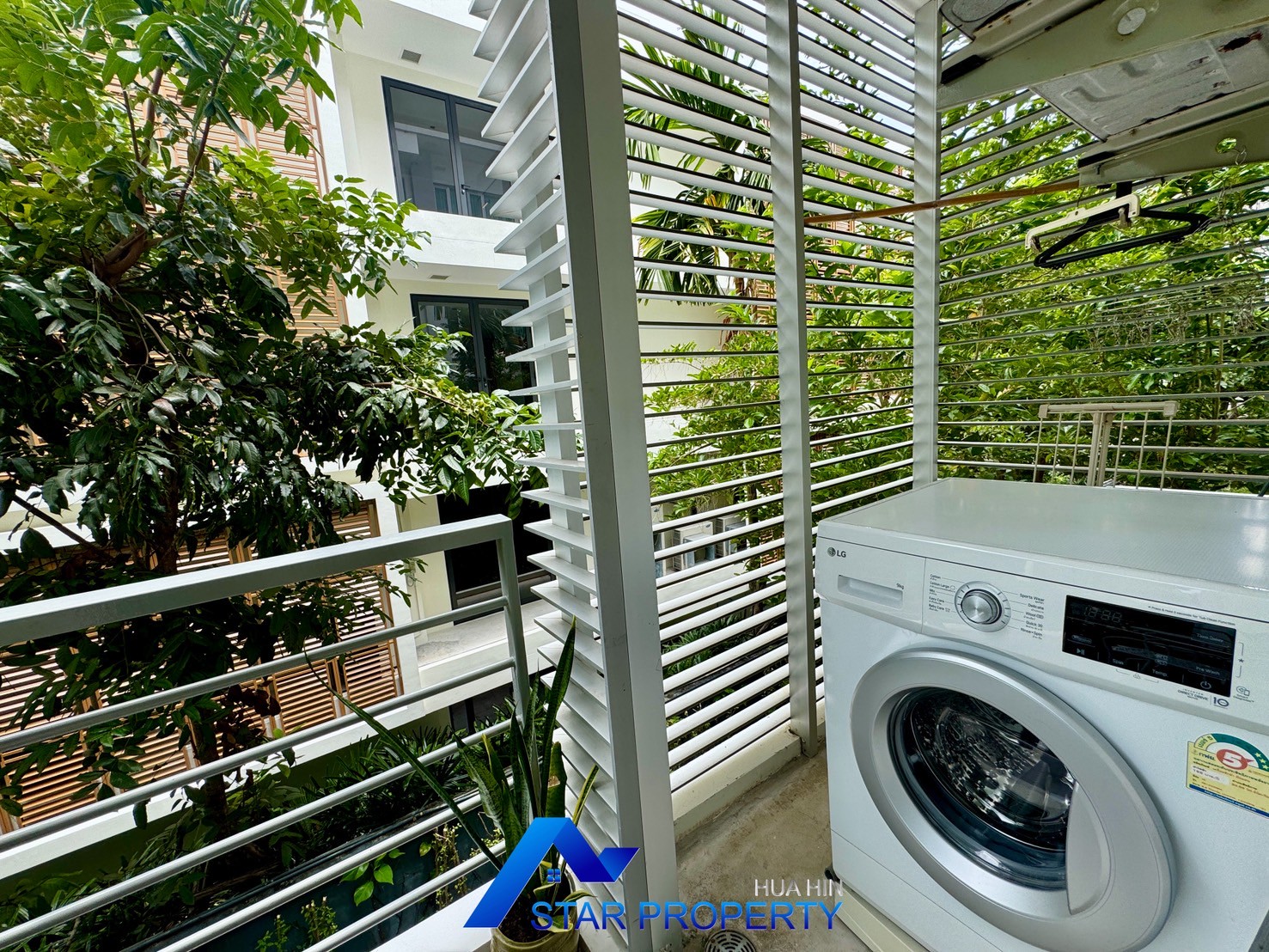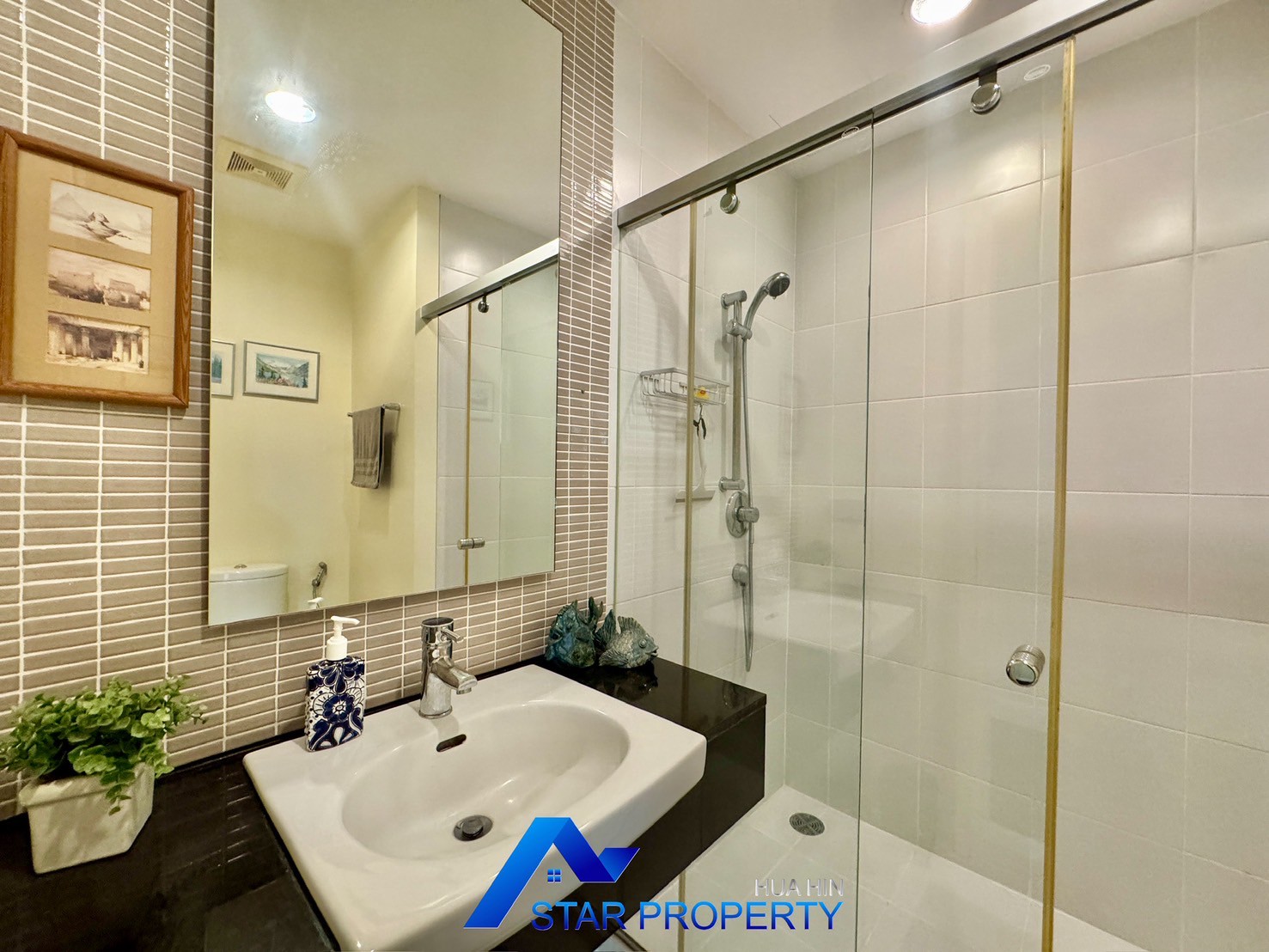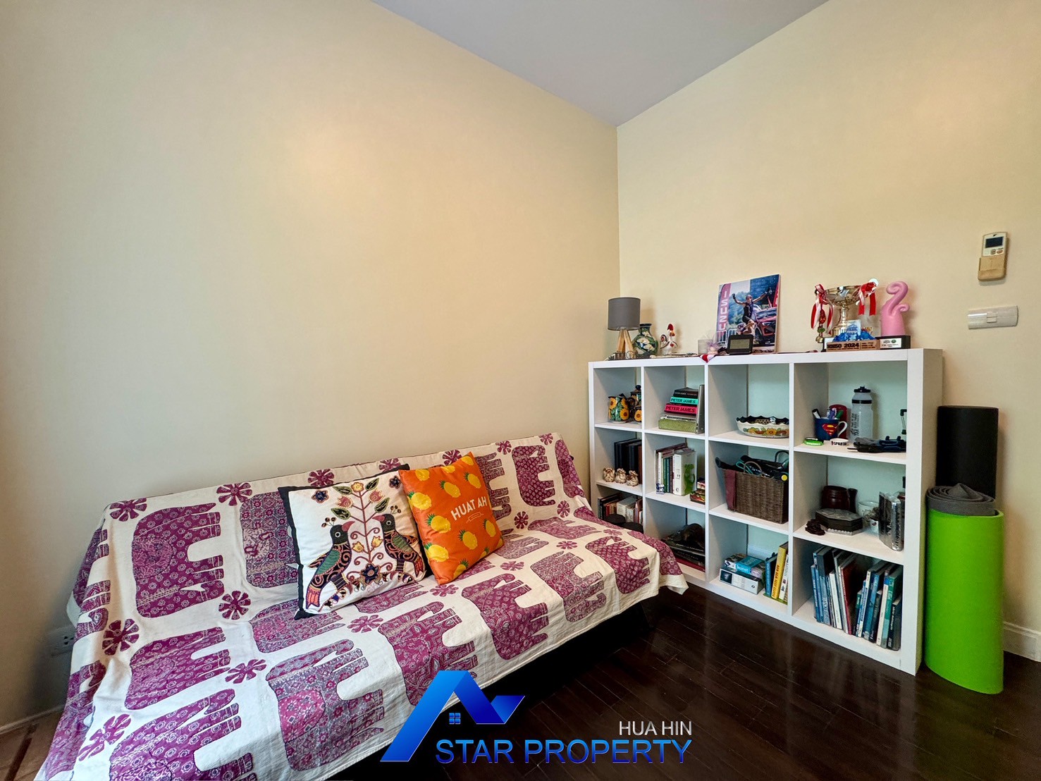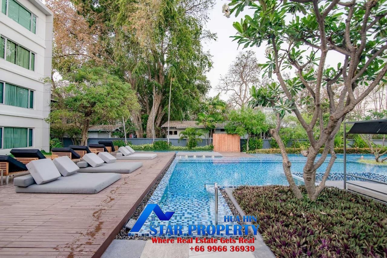 Condominium in the heart of the city, opposite Market Village shopping mall. Not many units, total 93 units. Direct access to the most beautiful beach in Hua Hin. This corner unit consists of 2 bedrooms and 2 bathrooms, fully furnished ( except personal stuff and some pieces of decoration, 2nd floor, usable area 74 sq.m. Open living/dining/kitchen area with sliding doors to a private balcony with garden and tree views on the left. This property is not to be missed!!