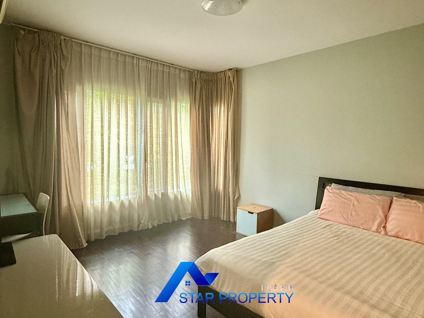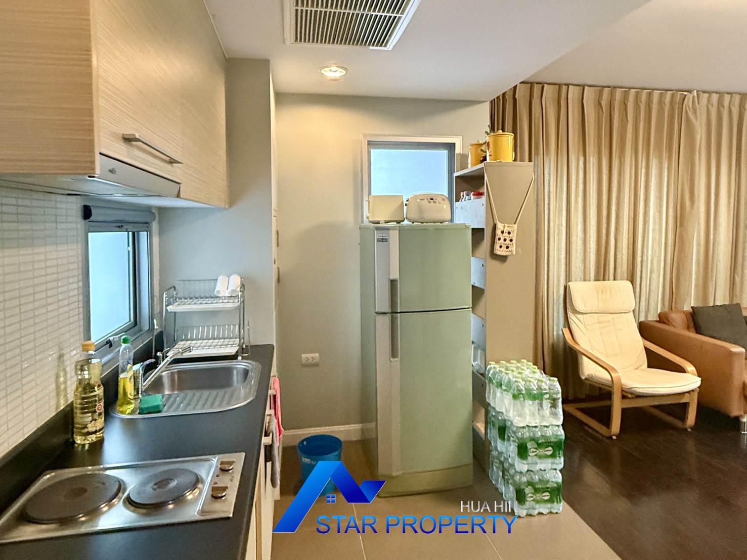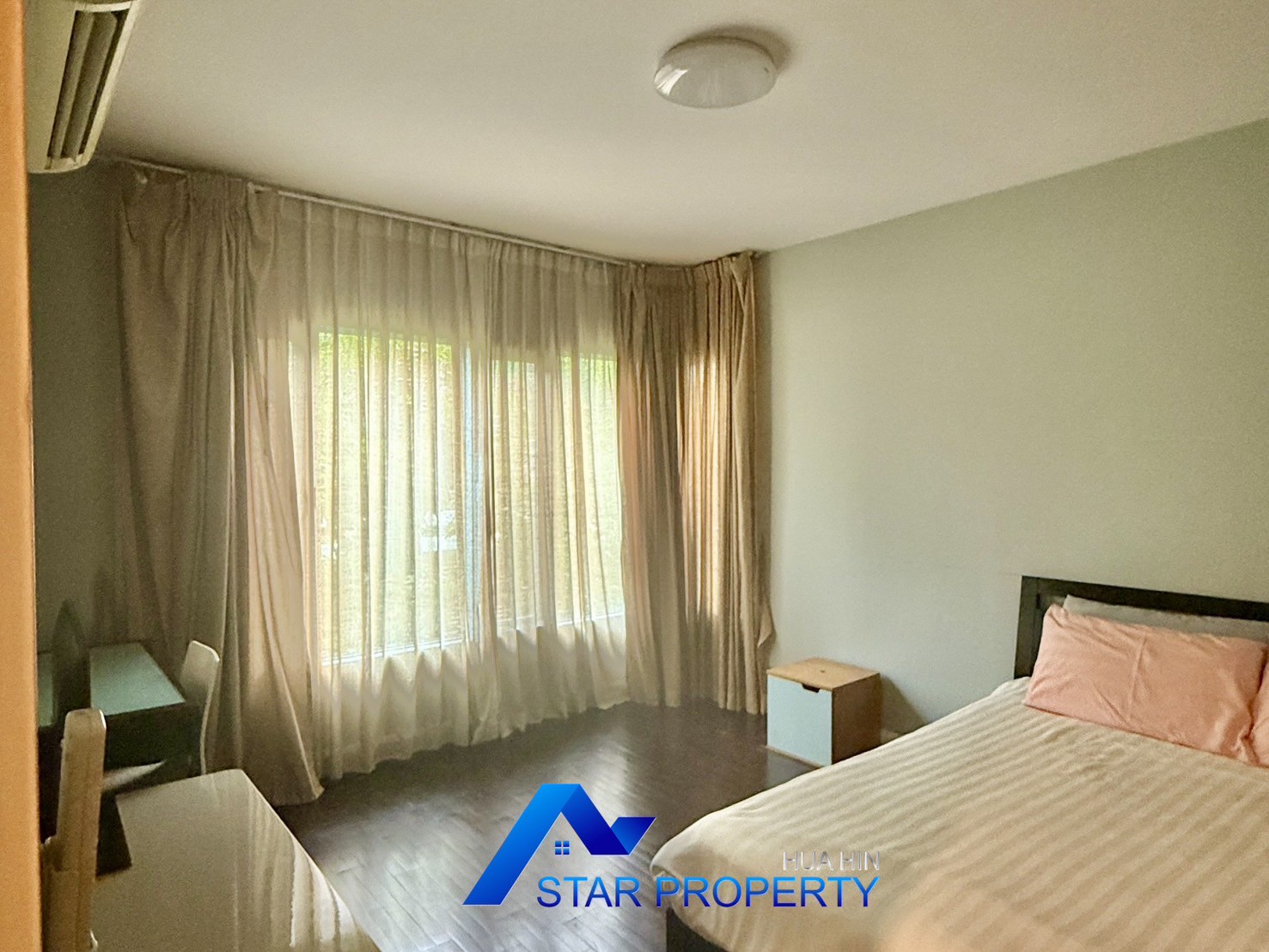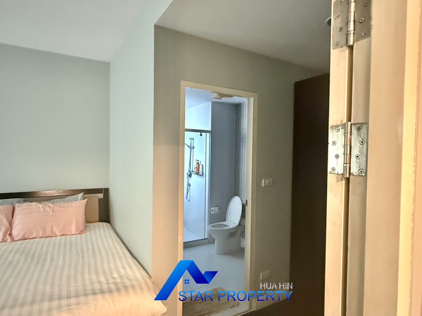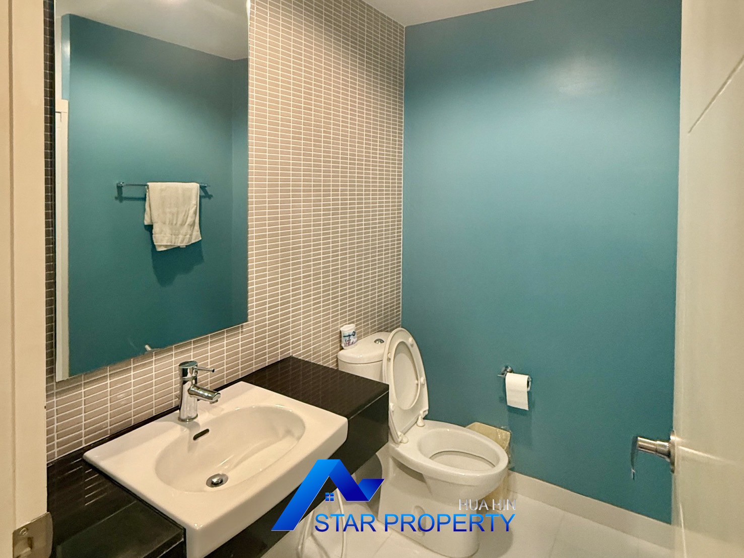 Condominium in the heart of the city, opposite Market Village shopping mall. Not many units, total 93 units. Direct access to the most beautiful beach in Cha-am. This corner unit consists of 2 bedrooms and 2 bathrooms, fully furnished, 2nd floor, usable area 75.34 sq.m. Open living/dining/kitchen area with sliding doors to a private balcony with garden and tree views on the left. This property is not to be missed!!