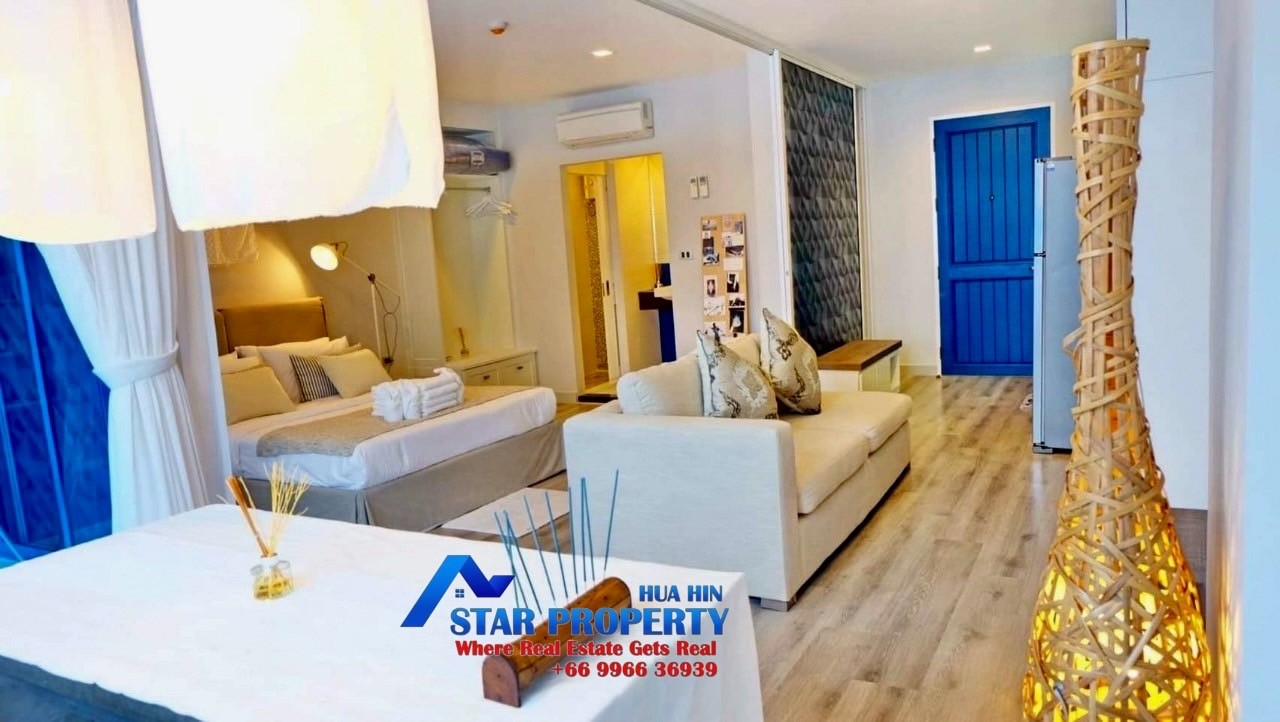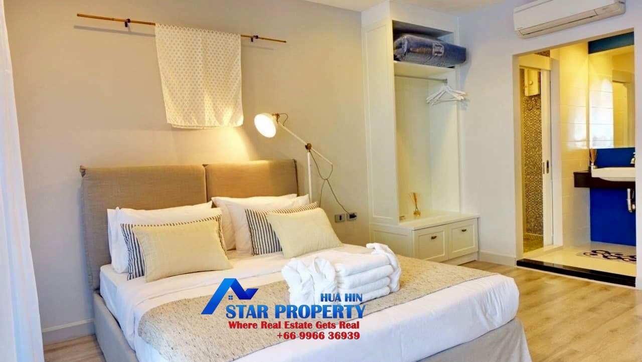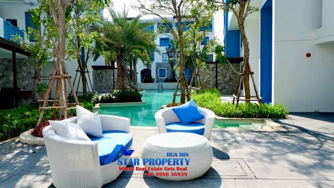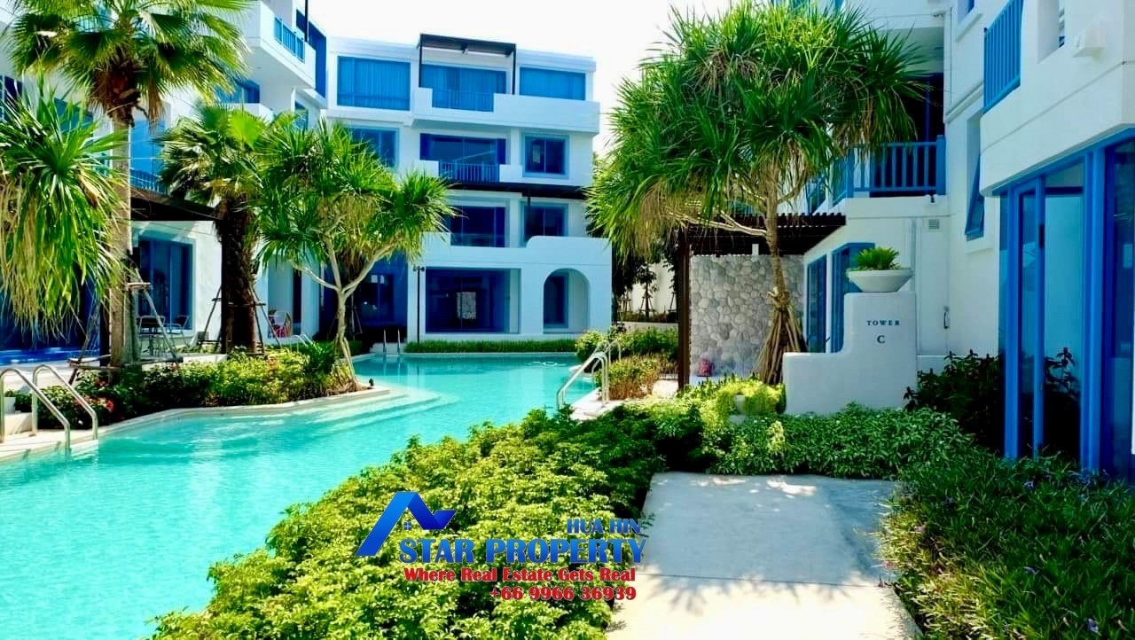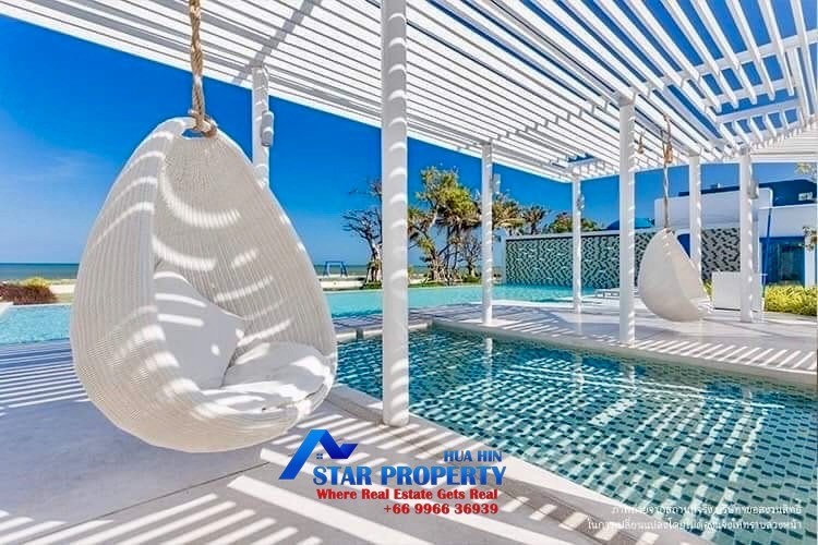 The Crest Santora, a luxury condominium and villa on Hua Hin beach, blue and white theme, decorated in resort style. Create a relaxing and private atmosphere. The project is fully equipped with all amenities, suitable for relaxation. The room is very beautiful. modern style The project is also located close to many famous amenities and tourist attractions.