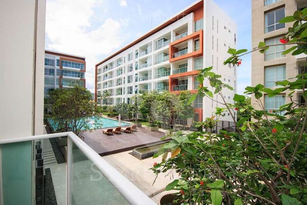 Condominium for sale with 2 bedrooms, 2 bathrooms located on the 7th floor of a very new and stylish development. The communal swimming pool runs right past the front room. There is a modern kitchen, air con and a balcony. Within minutes walk to the beach. Fully furnished to a high standard with imported appliances from the UK.