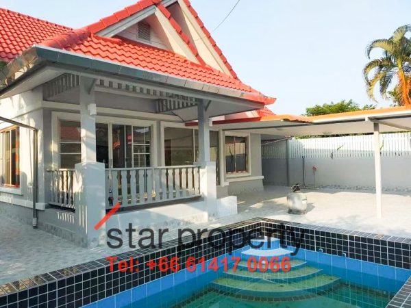 This unfurnished pool villa comes with 3 beds 3 baths and a private swimming pool. This villa is located 5 kilometers from Hua Hin City Center.
