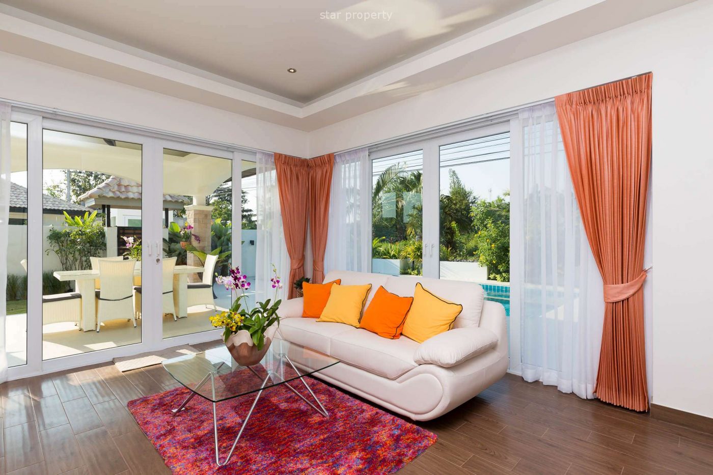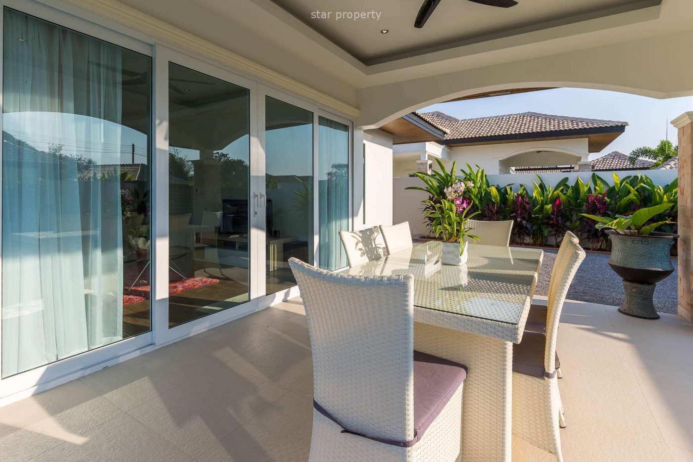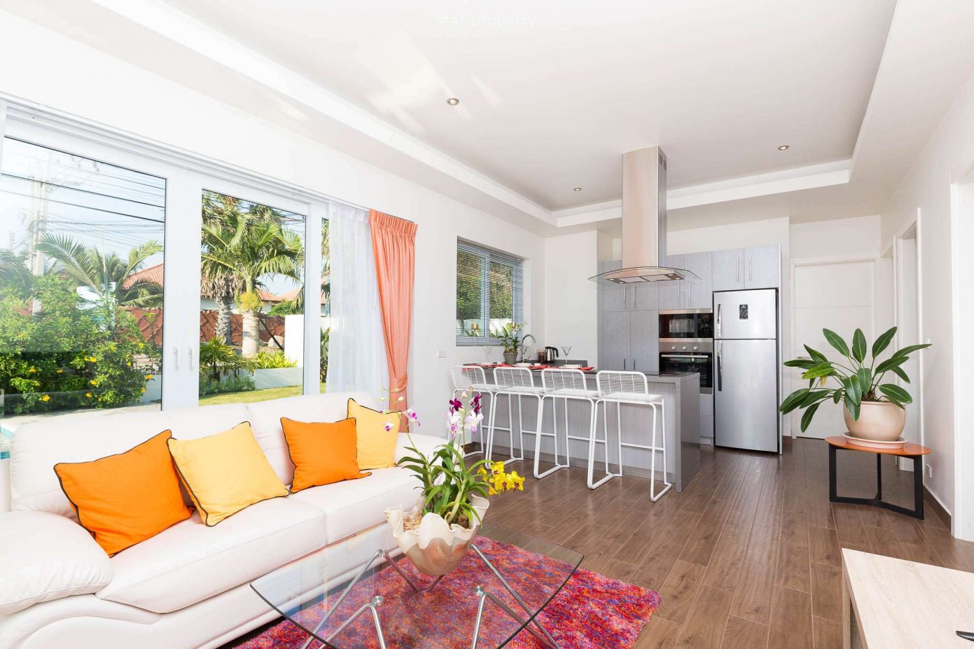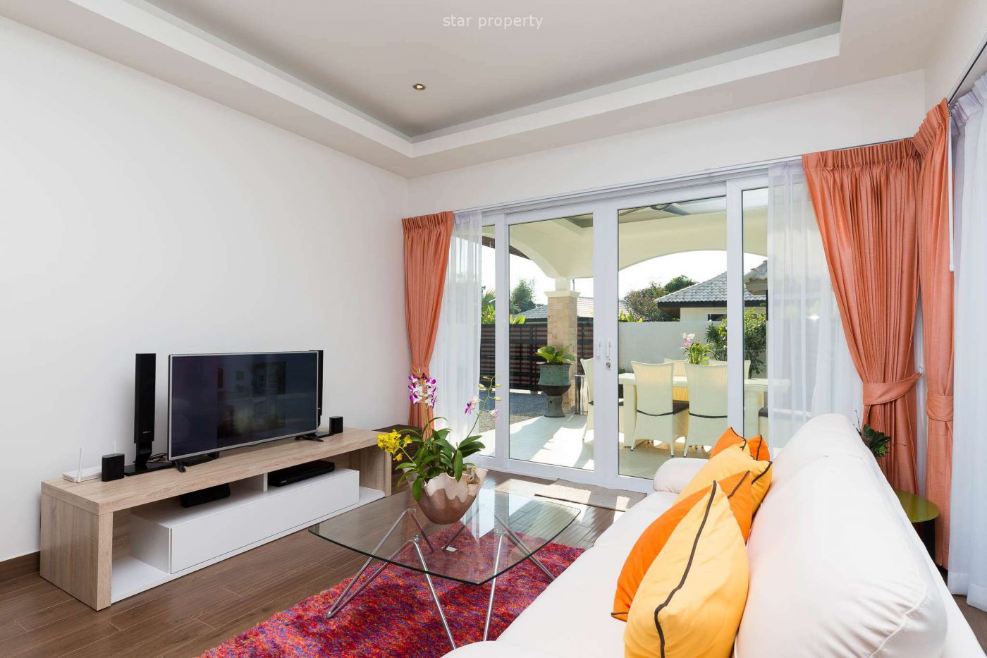 The Villa is located in a nice development called Orchid Paradise Homes, which is close by the famous Black Mountain golf course in Hua Hin. Orchid Paradise Homes have a common area with restaurant / bar, common pool area with own pool section for children and also a pool table. There is also 24 hours security on the premises. Orchid Paradise Homes is 5km from Hua Hin city.