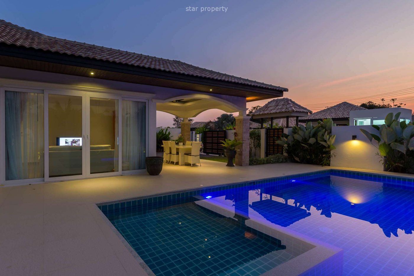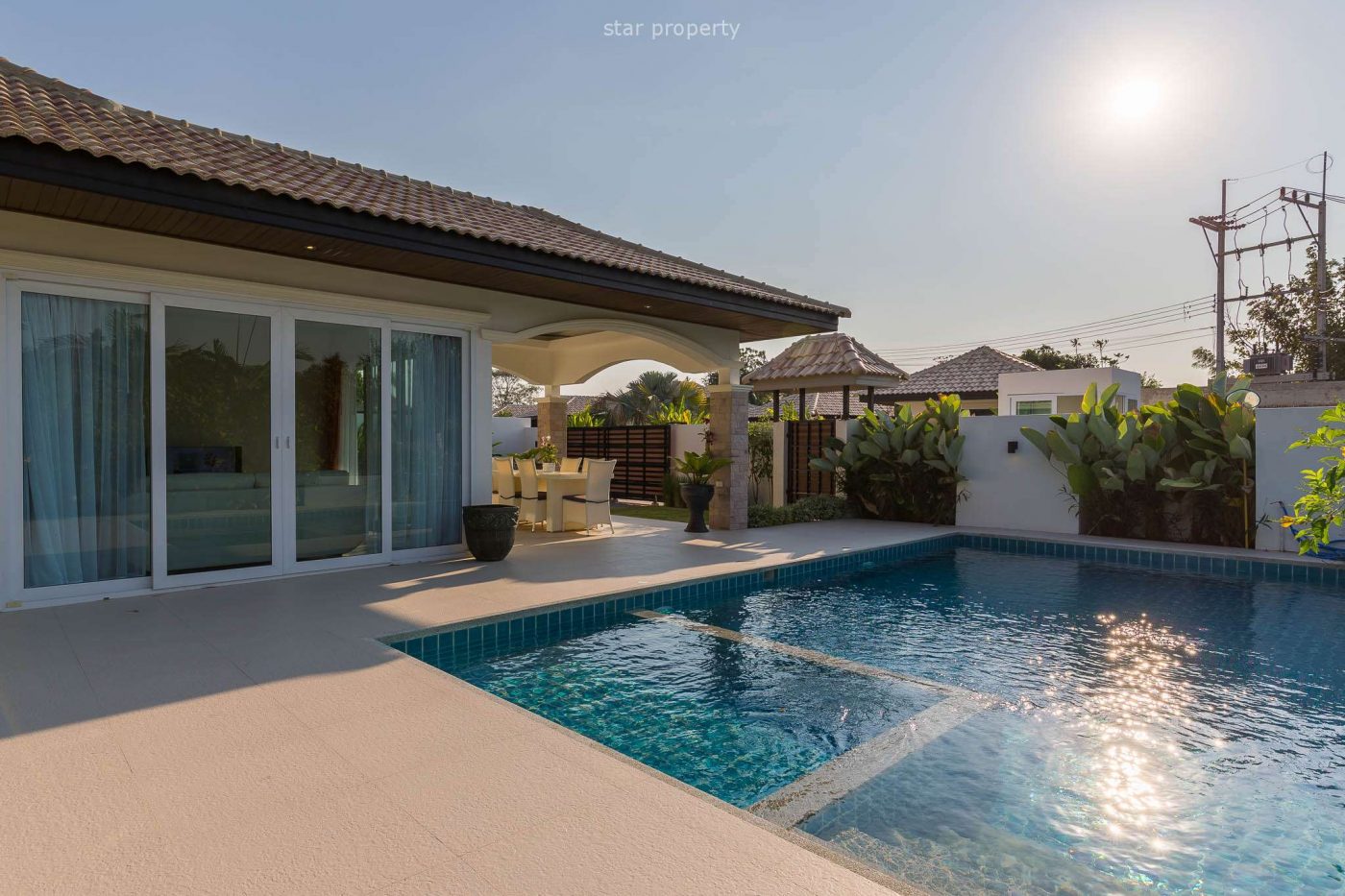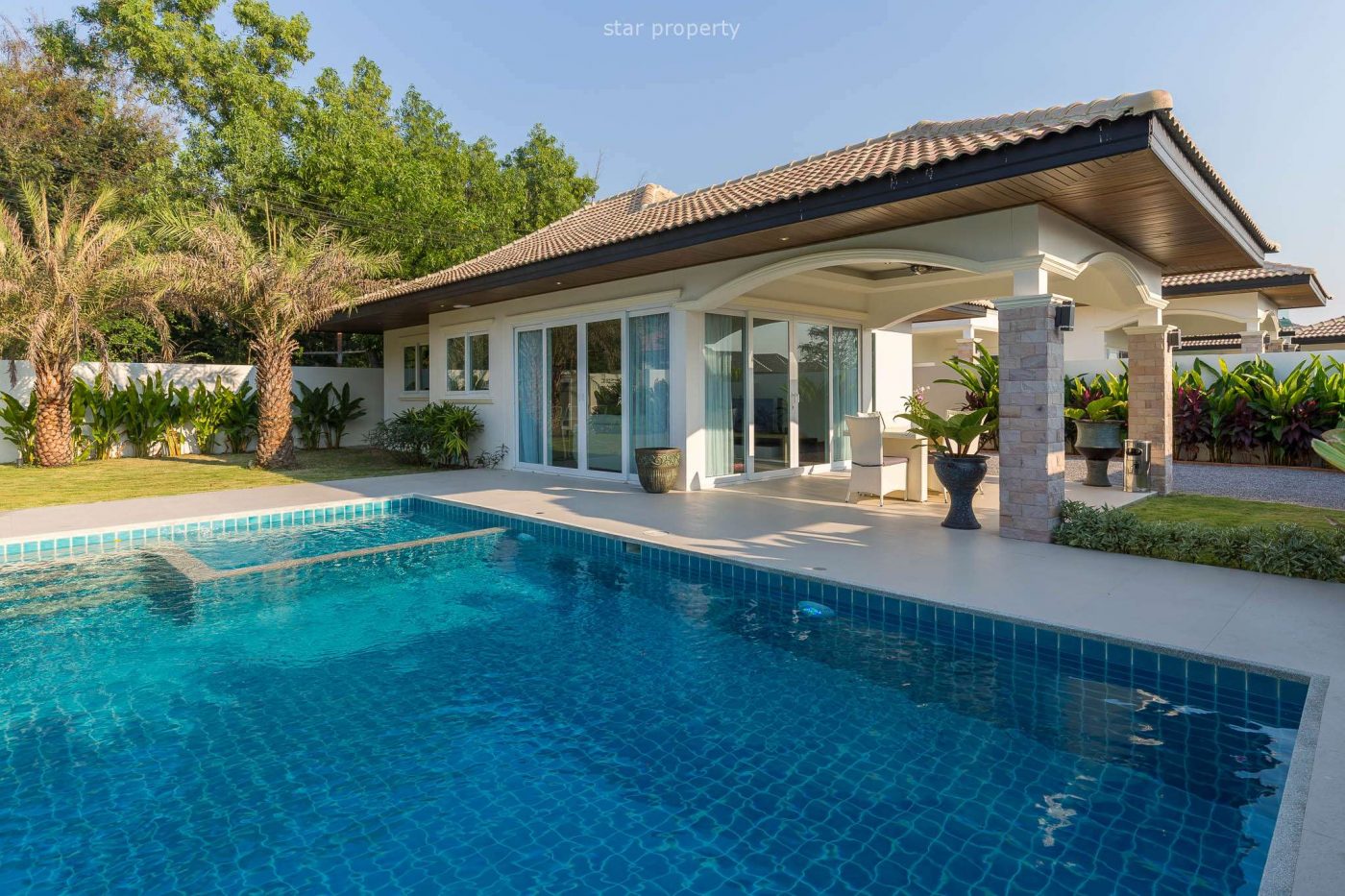 Gorgeous 3 bedroom pool villa with a big kitchen and dining room. This spacious house is set on a 320 m2 plot with private pool.