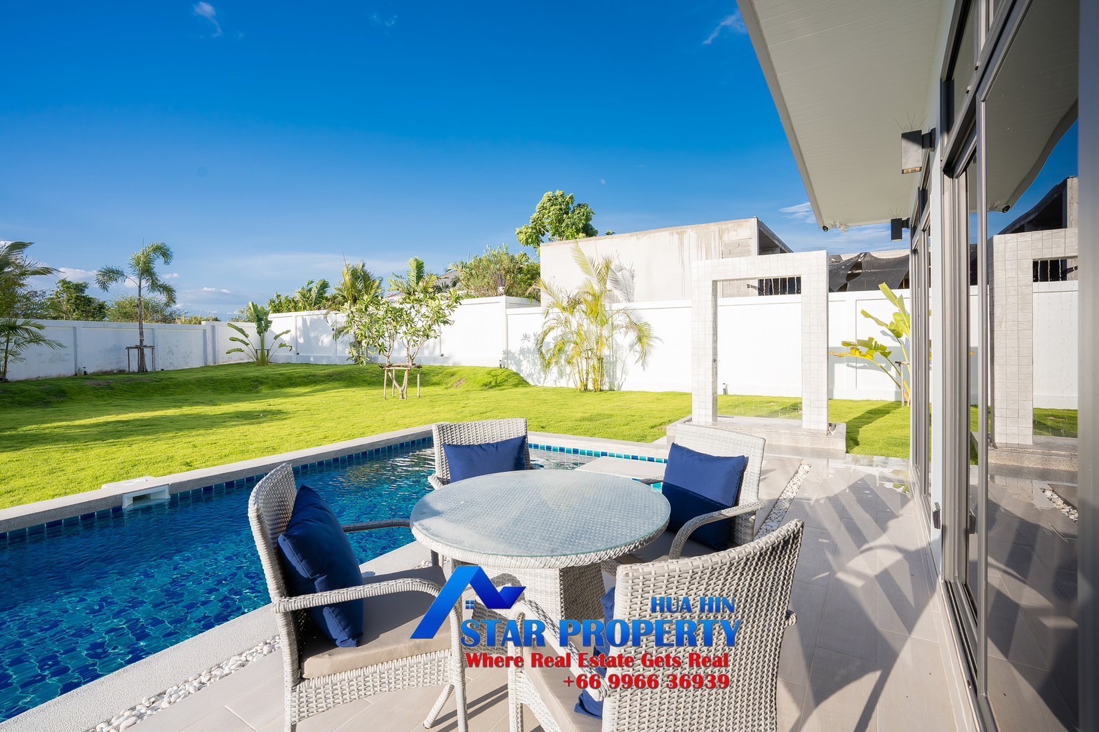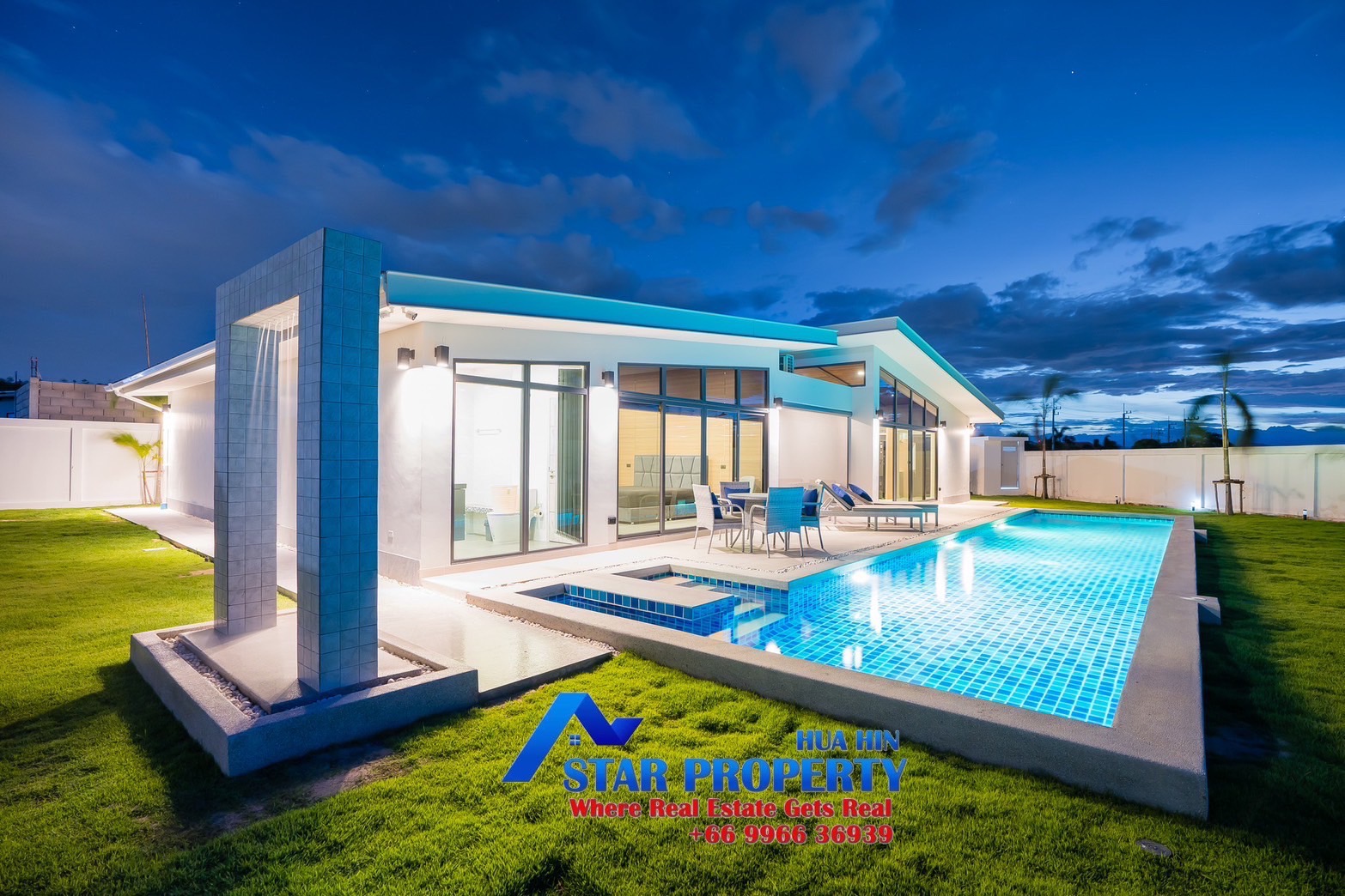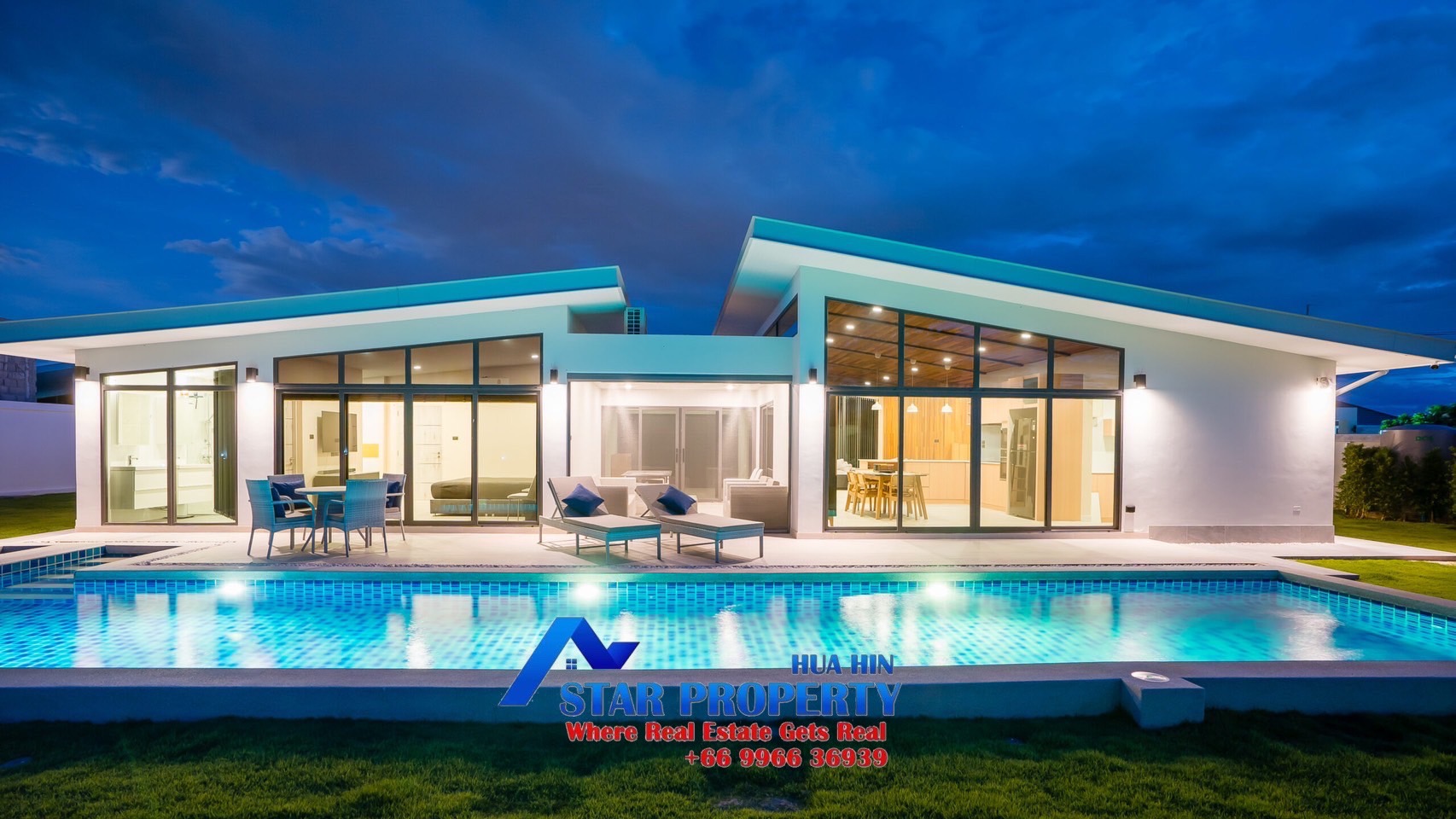 Set within a boutique project of only 13 pool villas, security is assured with nighttime security guard and underground electricity cables. Enjoy the serenity of this idyllic retreat, just a 10-minute drive from Hua Hin’s bustling central area, and a short distance from attractions such as the Pineapple Valley Golf Course, floating market, Vana Nava water park, BECC International School, and Arena Sports complex.