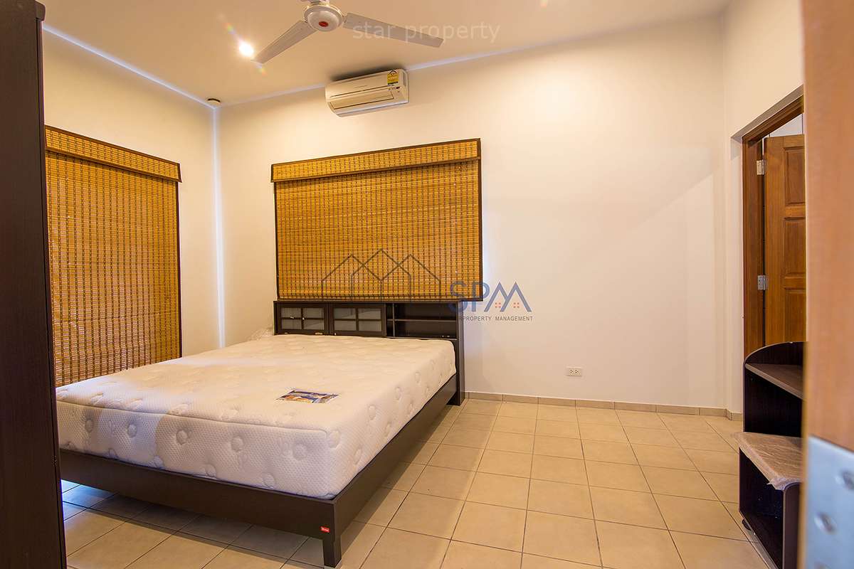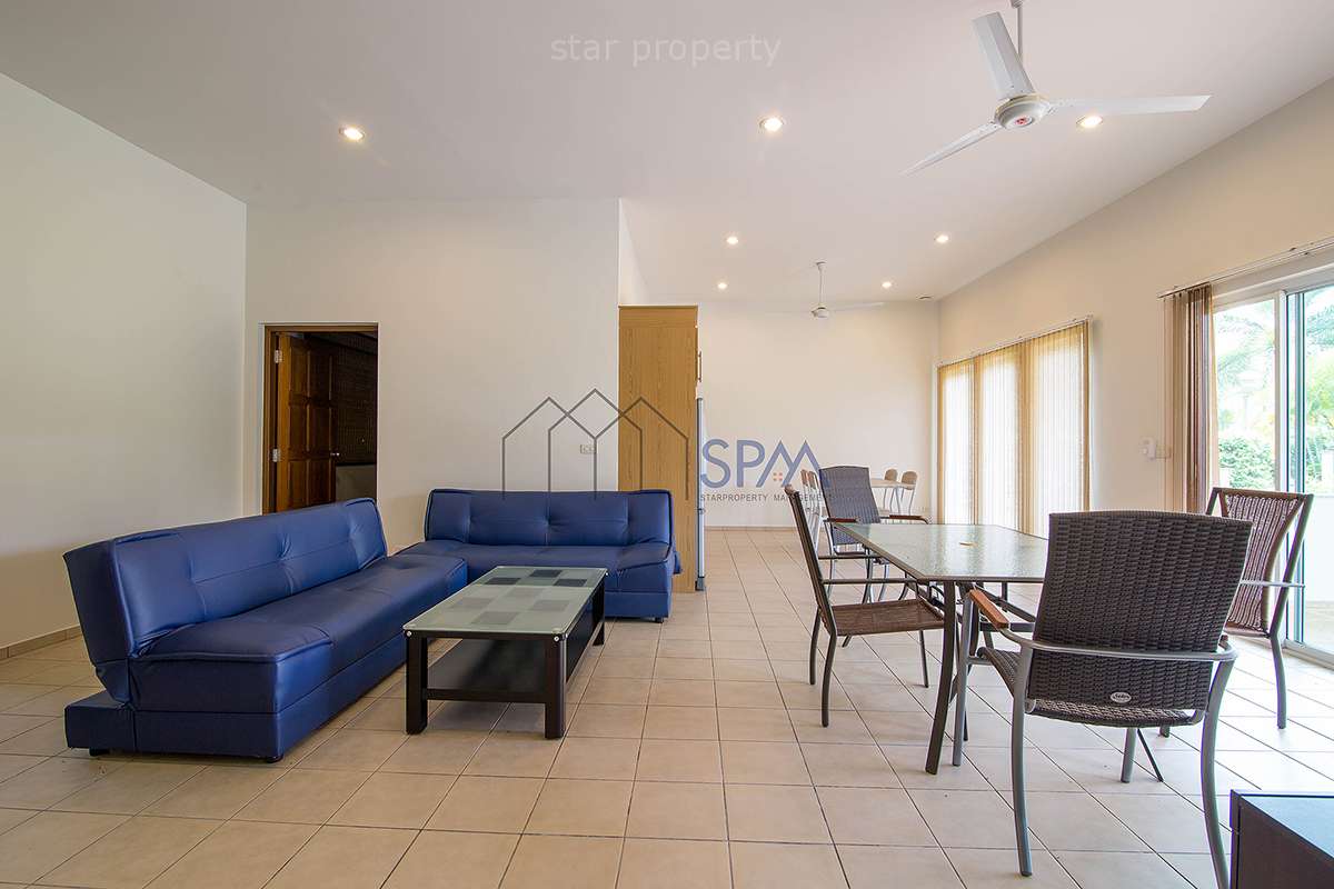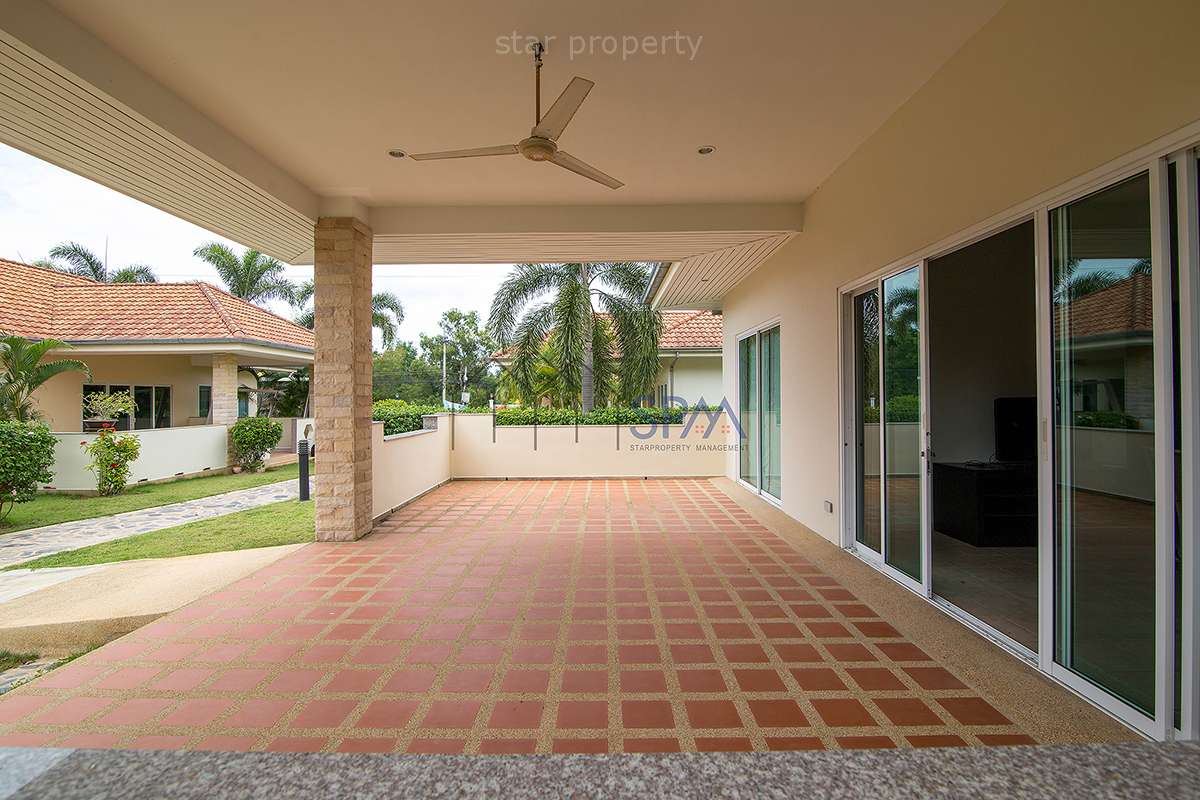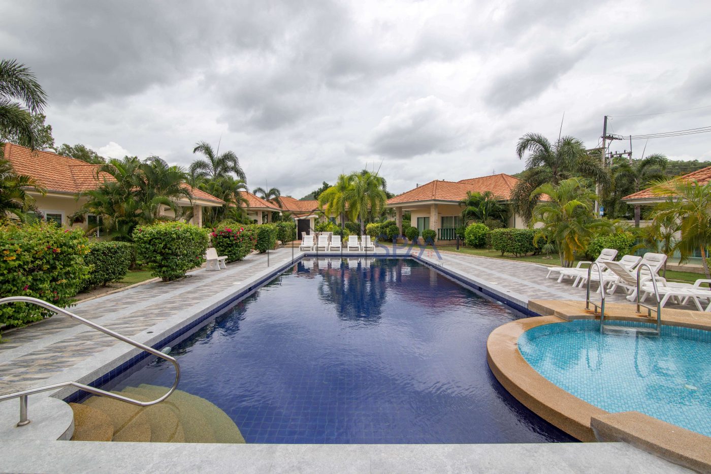 This house has 2 bedrooms and 2 bathrooms. The property has been built on a beautiful plot located in the countryside, 7 minutes drive outside Hua-Hin city. In the design of this house, lots of bright colored materials and fabrics were used to create a feeling of space and comfort. There is a communal swimming-pool and jacuzzi. The whole village is surrounded by a wall. No strangers are allowed in the village, making it perfectly safe. In the area are several golf courses, amusement parks, restaurants, markets, and other attractions. The nature is luxuriant with full of exotic trees and flowers. Hua-Hin’s famous nightlife is also nearby.
