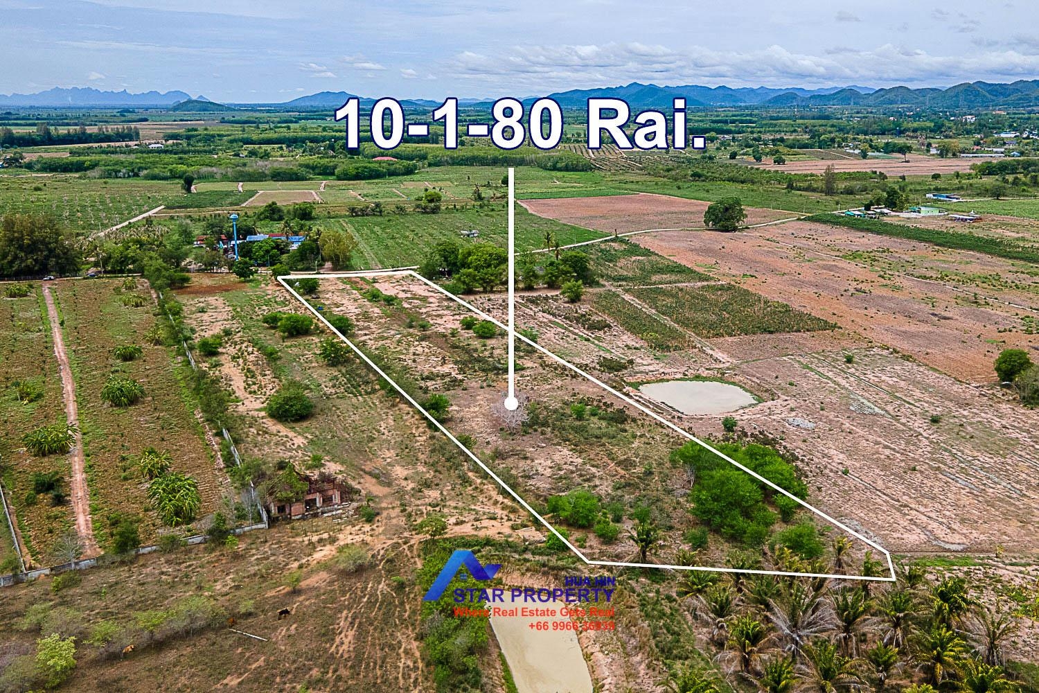 Beautiful land for sale in Hua Hin, area 10-1-80 rai, (16,720 square meters.) This plot of land has a public road. There is water and electricity. This land is only 17.7 kilometers from Hua Hin city. Price 1,200,000 baht/rai