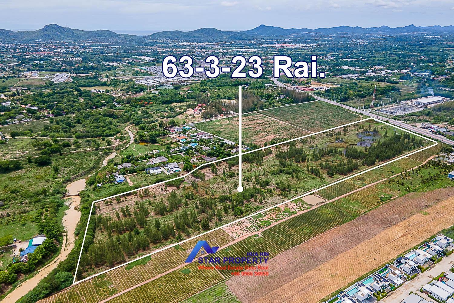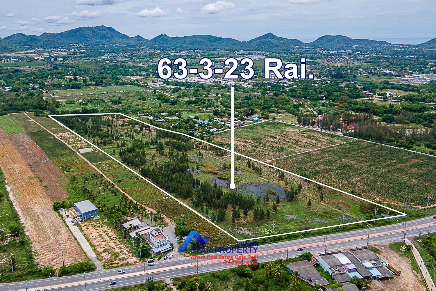 Beautiful land for sale in Hin Lek Fai, area 63-3-23 Rai, (102,092 square meters.) This plot of land has a public road. There is water and electricity. This land is only 16.4 kilometers from Hua Hin city. Price 3,500,000 baht/rai