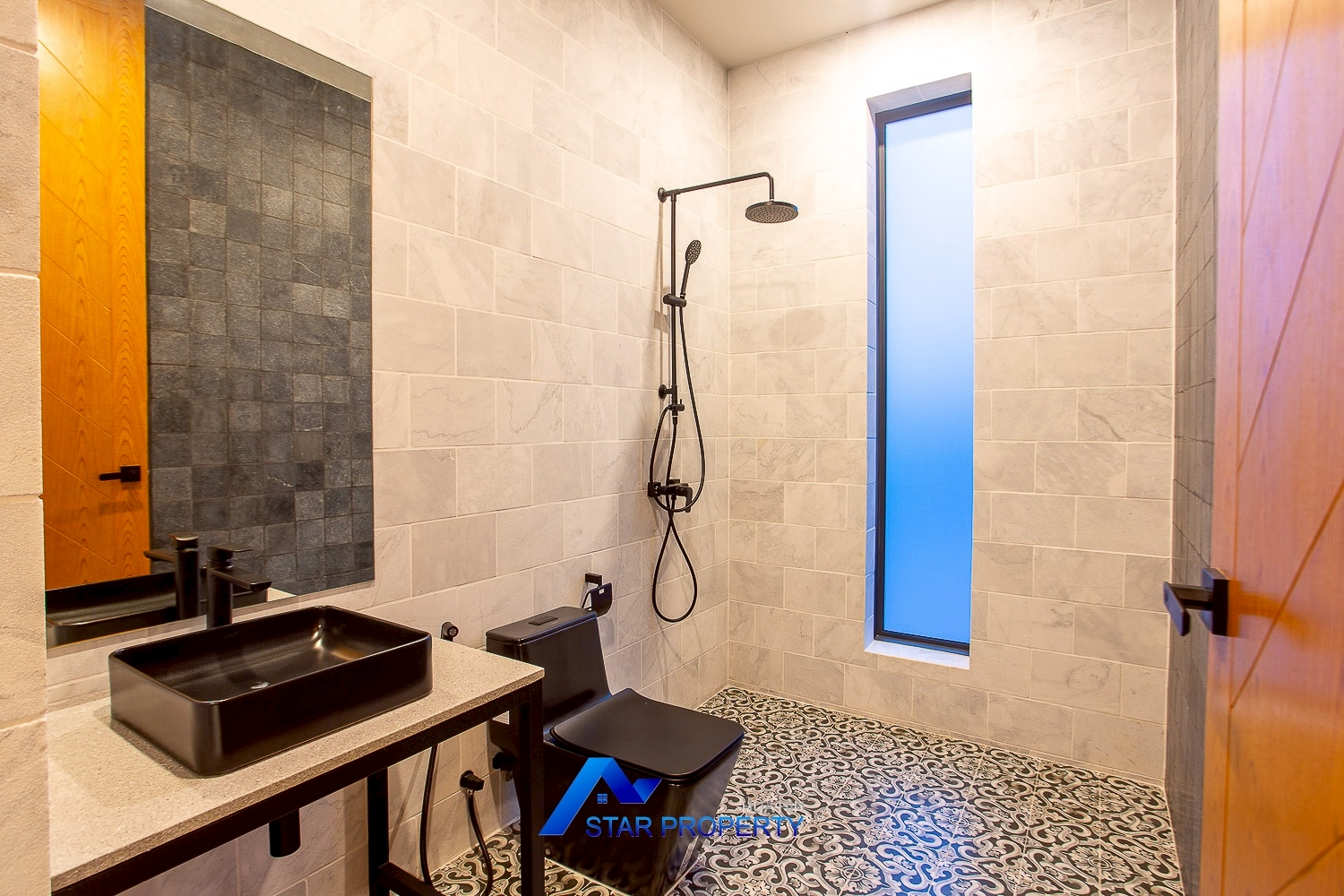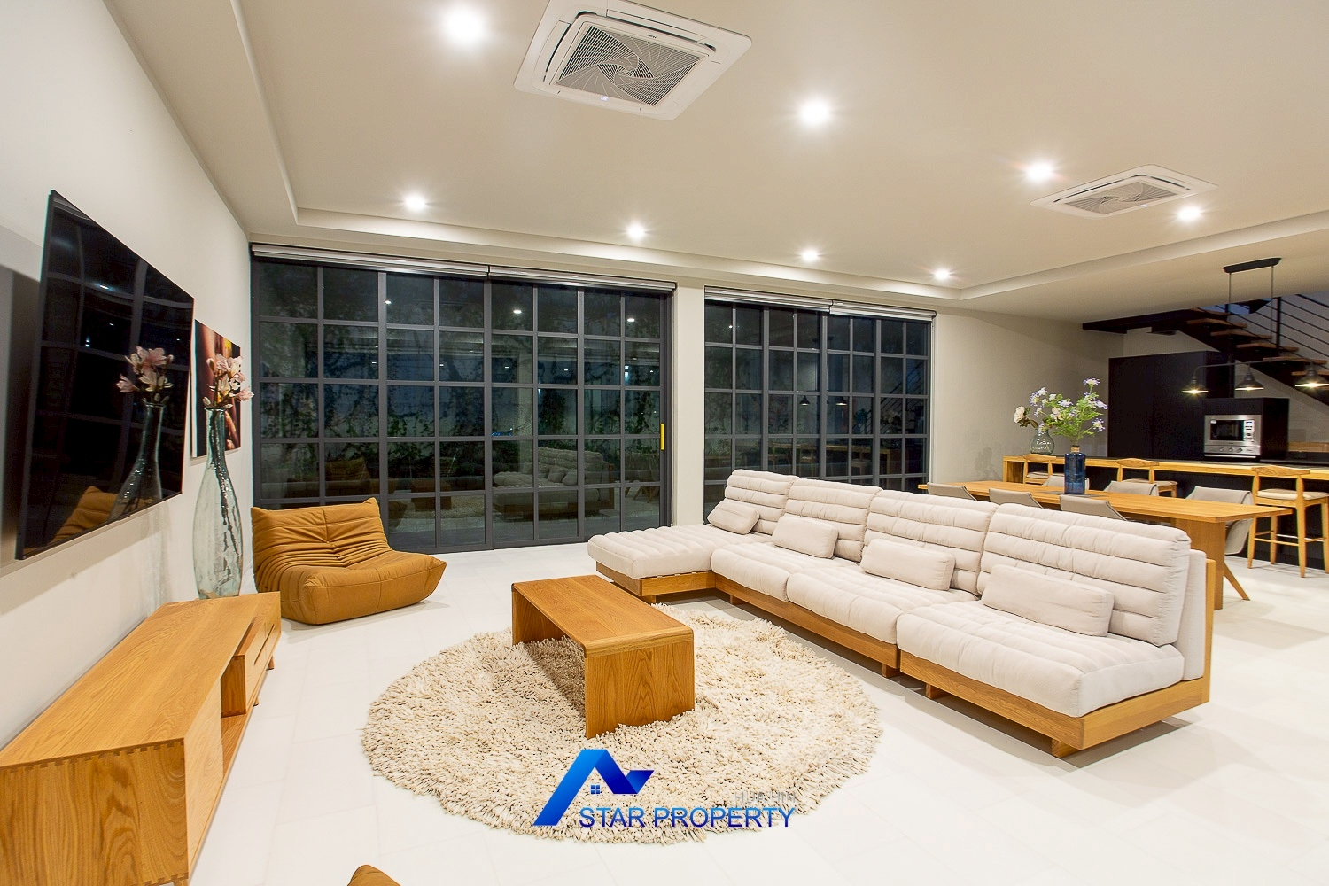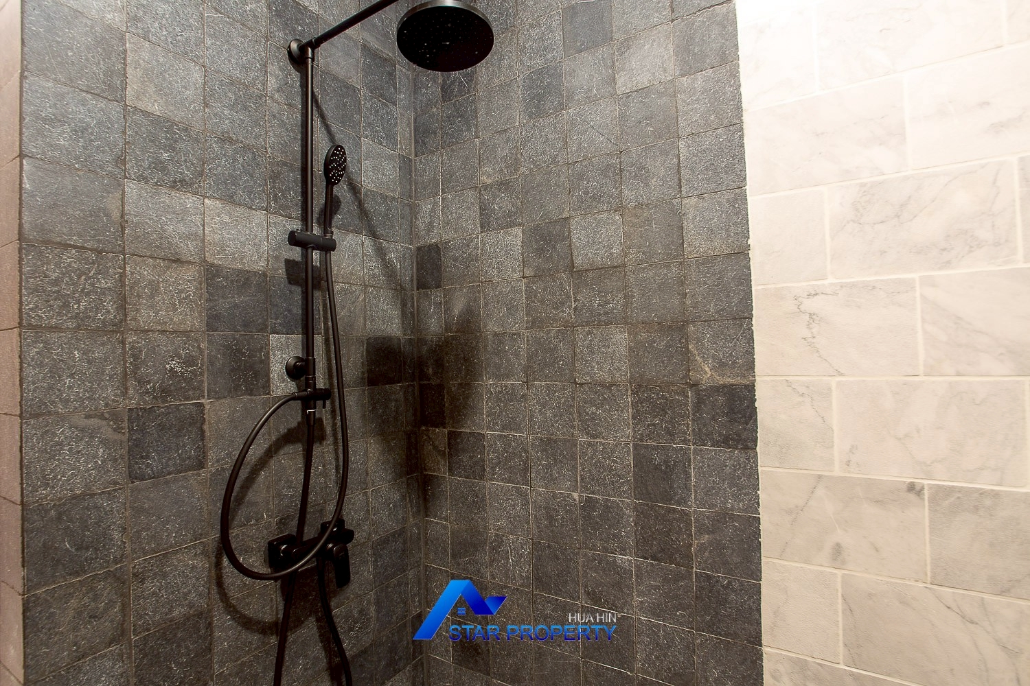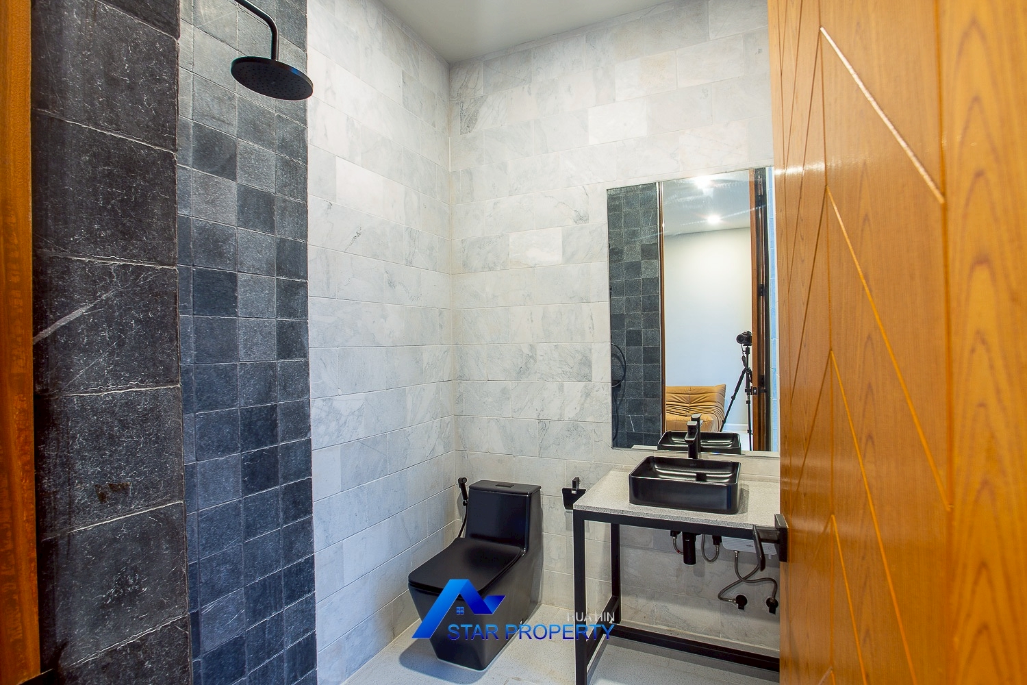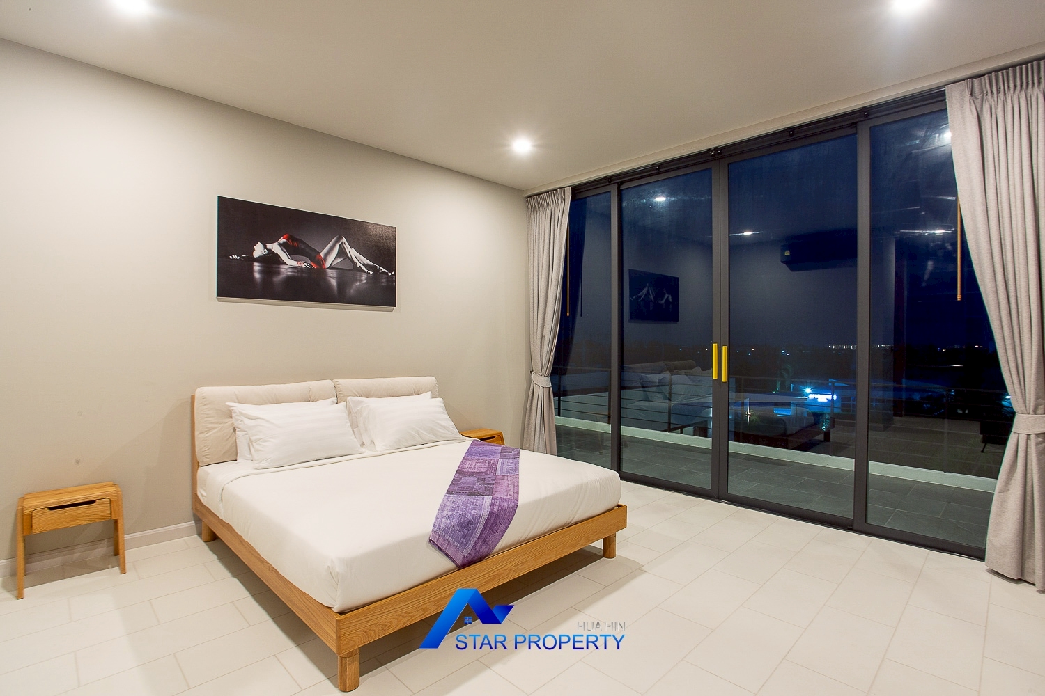 This villa offers a similar unique design which has been enhanced to offer 5 bedrooms, set over 2 storeys and is ideal for owners that need more space and more bedrooms along with a larger pool. The villa has a roof terrace included and continues the theme of an open plan living area with natural airflow and a modern designed kitchen. Located in Soi 126 and is just a short drive to the beautiful beaches of Khao Tao. The location provides easy access to the south of Hua Hin and is only a 10 minutes drive to Hua Hin centre, Bluport and True Areena.