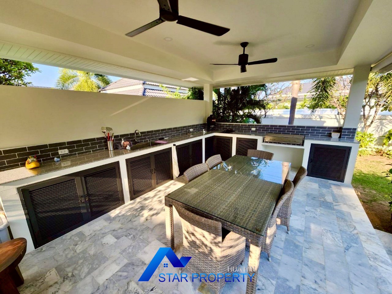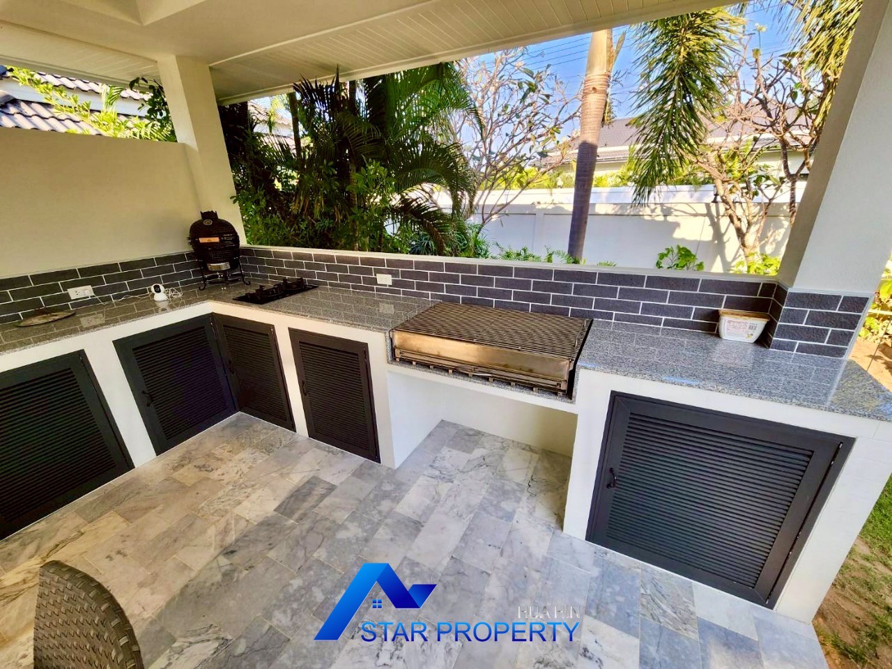 European kitchen, BBQ pavilion, open-air living room