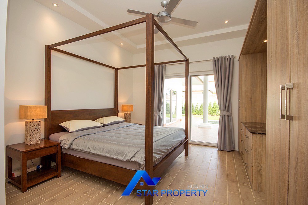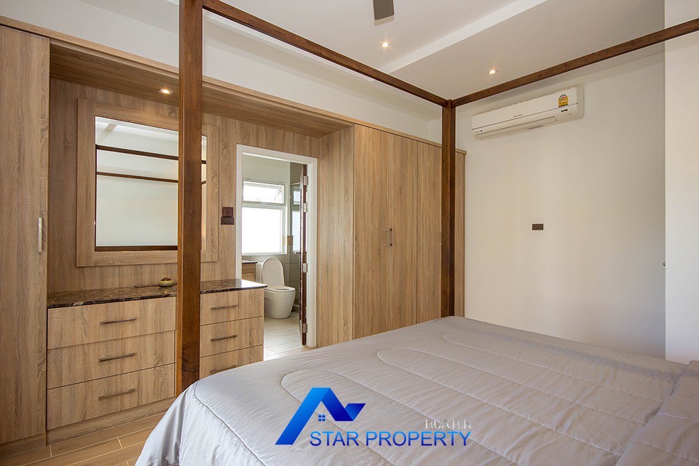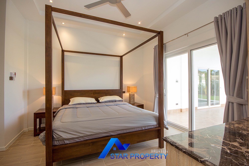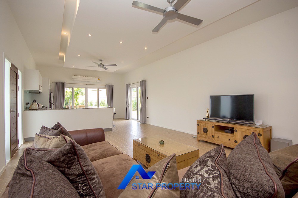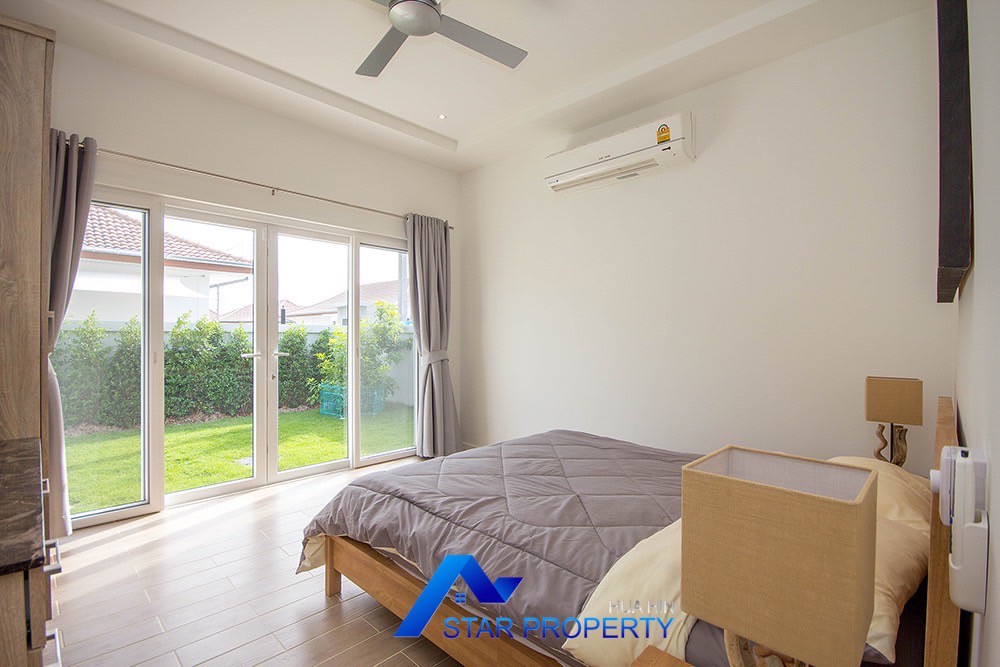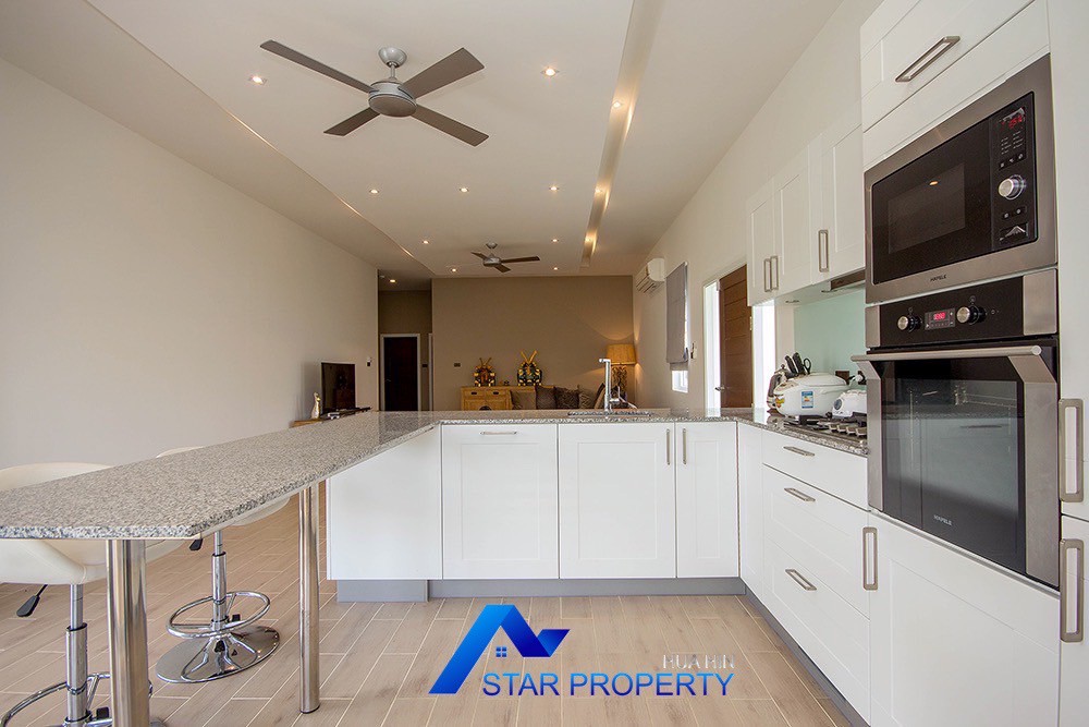 A beautiful and luxurious home, situated in an exclusive estate only 10 kilometers from Hua Hin city centre. This house has a true Asian feel whilst incorporating all modern conveniences. The lush, tropical garden stocked with mature plants surrounds the sun deck and private swimming pool. The inside of the house has been designed to meet high construction specifications. It has been finished to modern and European standards. Using high quality materials and local craftsmen, you can be assured that these homes are built to the highest standards. Main drains, water, waste and electricity are all located underground.