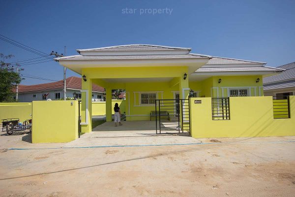 This pool villa in a high quality development. The house is located in soi 88 and has a land area 332 sq.m and a living area of 97 sq.m. There is 3 bedrooms, and 2 bathrooms, air-con, reserve water supply tank, car park and landscaped gardens with a plenty of tropical trees, and a private swimming pool. This house has a nice fitted kitchen.