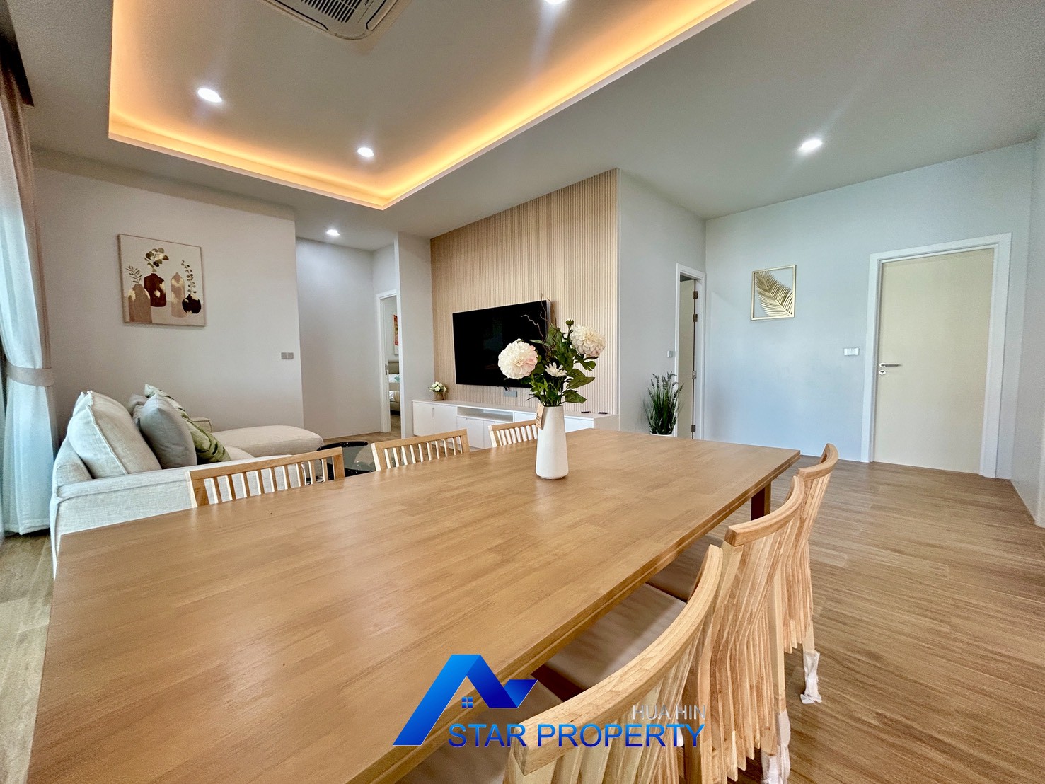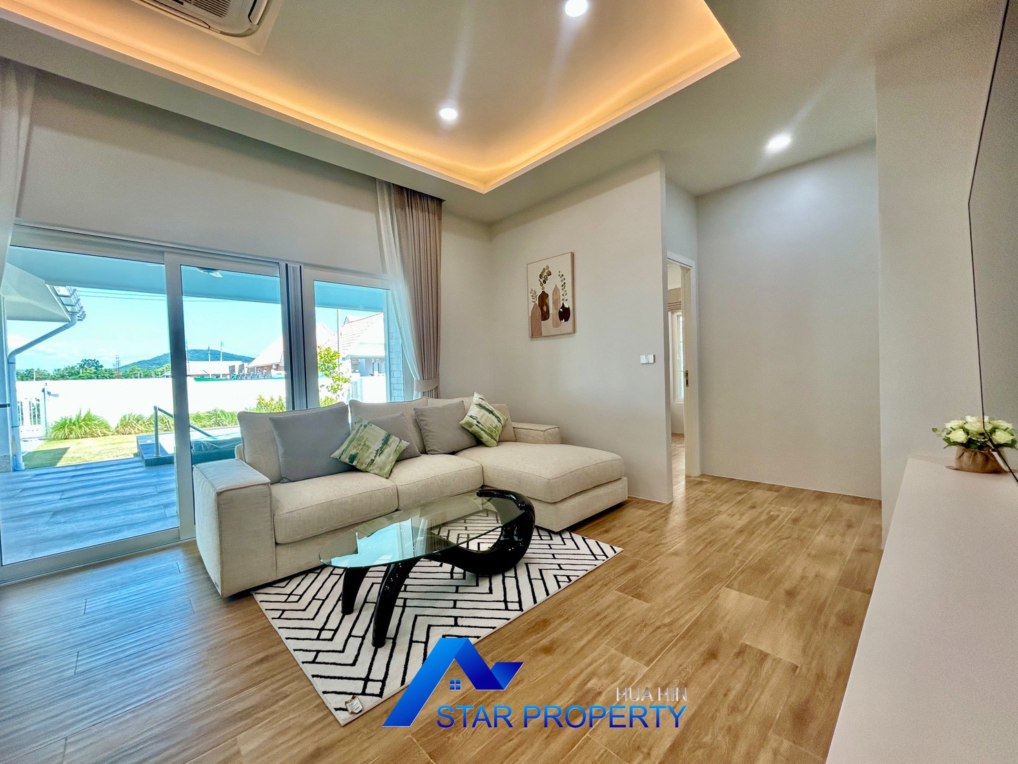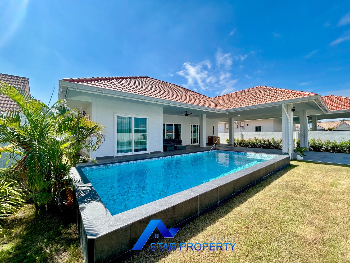 Experience peaceful living surrounded by nature at Dusita Lakeside Village 2. This charming single-storey pool villa offers a warm and private atmosphere within a well-maintained residential community. The project features a beautiful central lake, creating a relaxing environment perfect for families and those seeking a tranquil lifestyle.