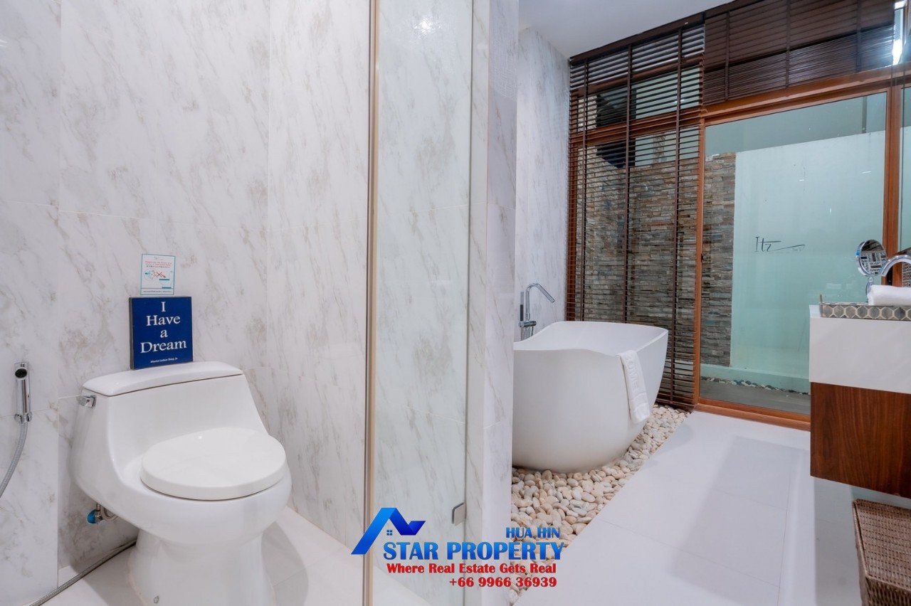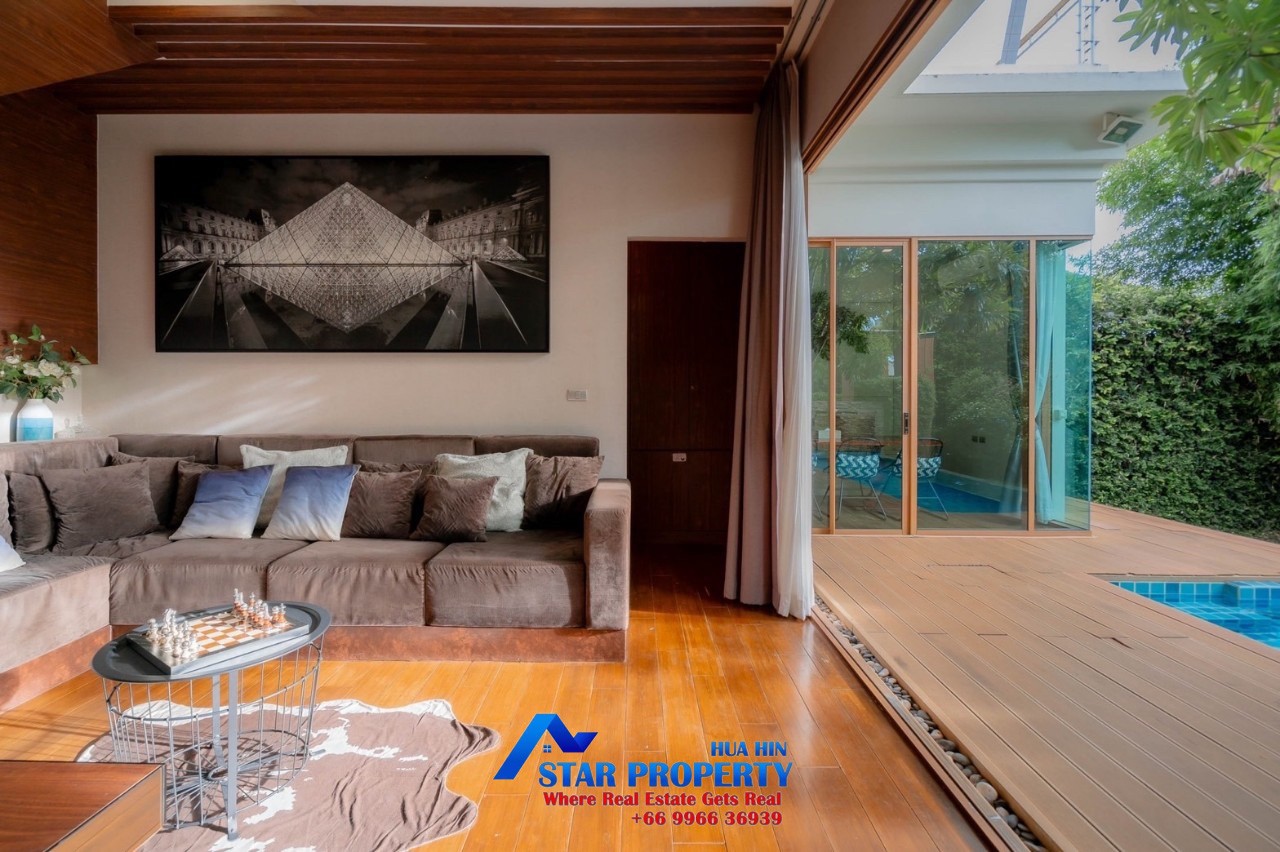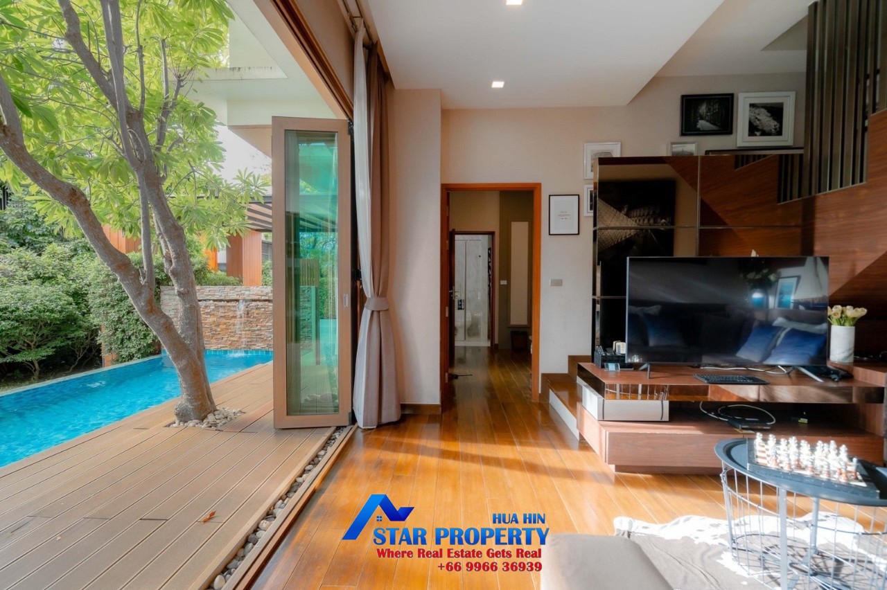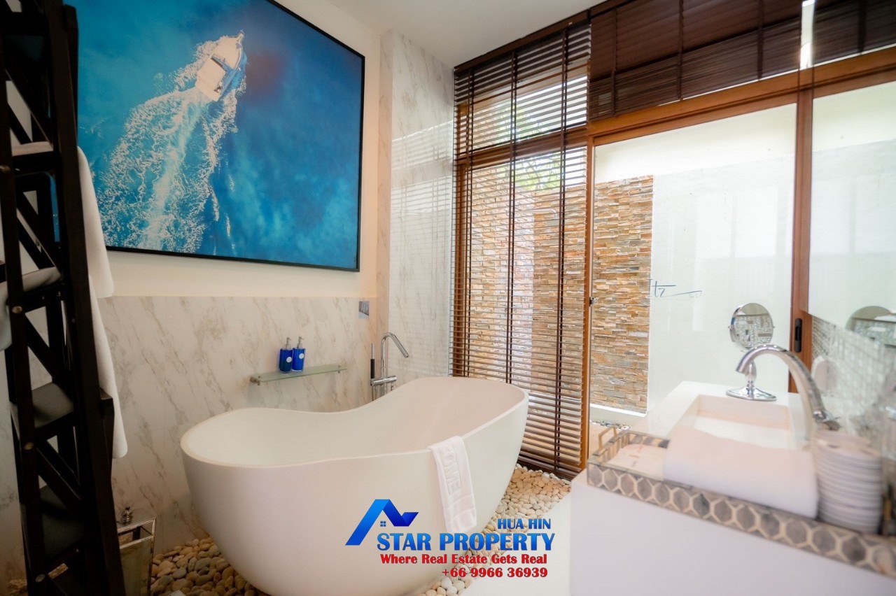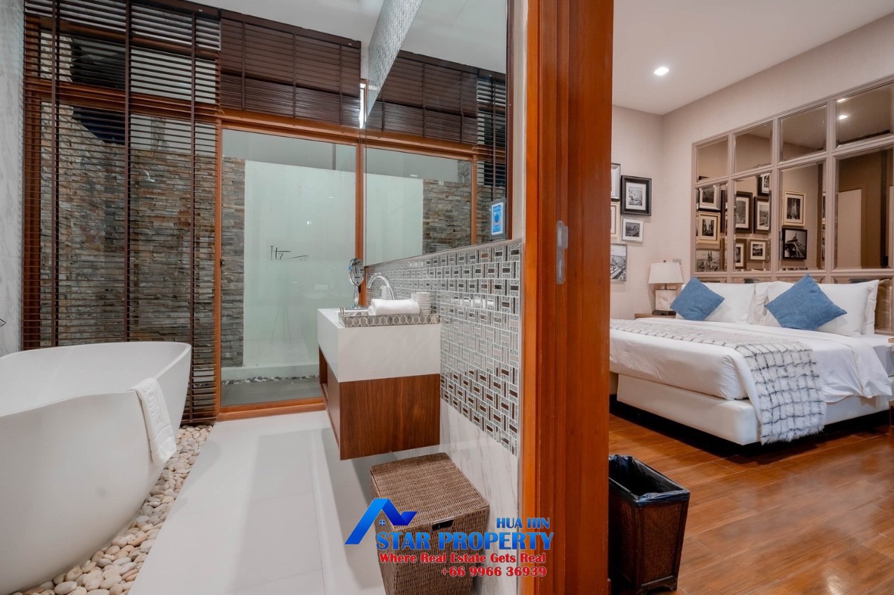 Brand new luxury pool villa for sale with private pool. This is the most beautiful house in Hua Hin, with 3 bedrooms, 4 bathrooms, parking for 3 cars and a BBQ area.