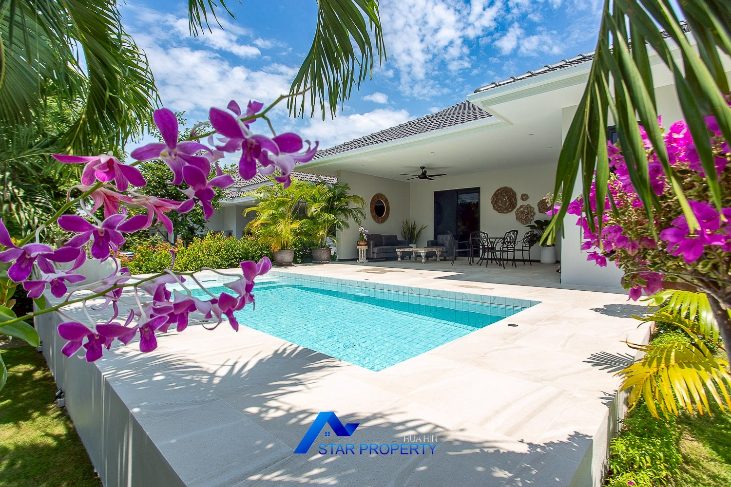Discover this modern 3-bedroom pool villa perfectly situated in the peaceful and scenic area of Khao Tao, just 4 minutes from the beach and close to all essential amenities.