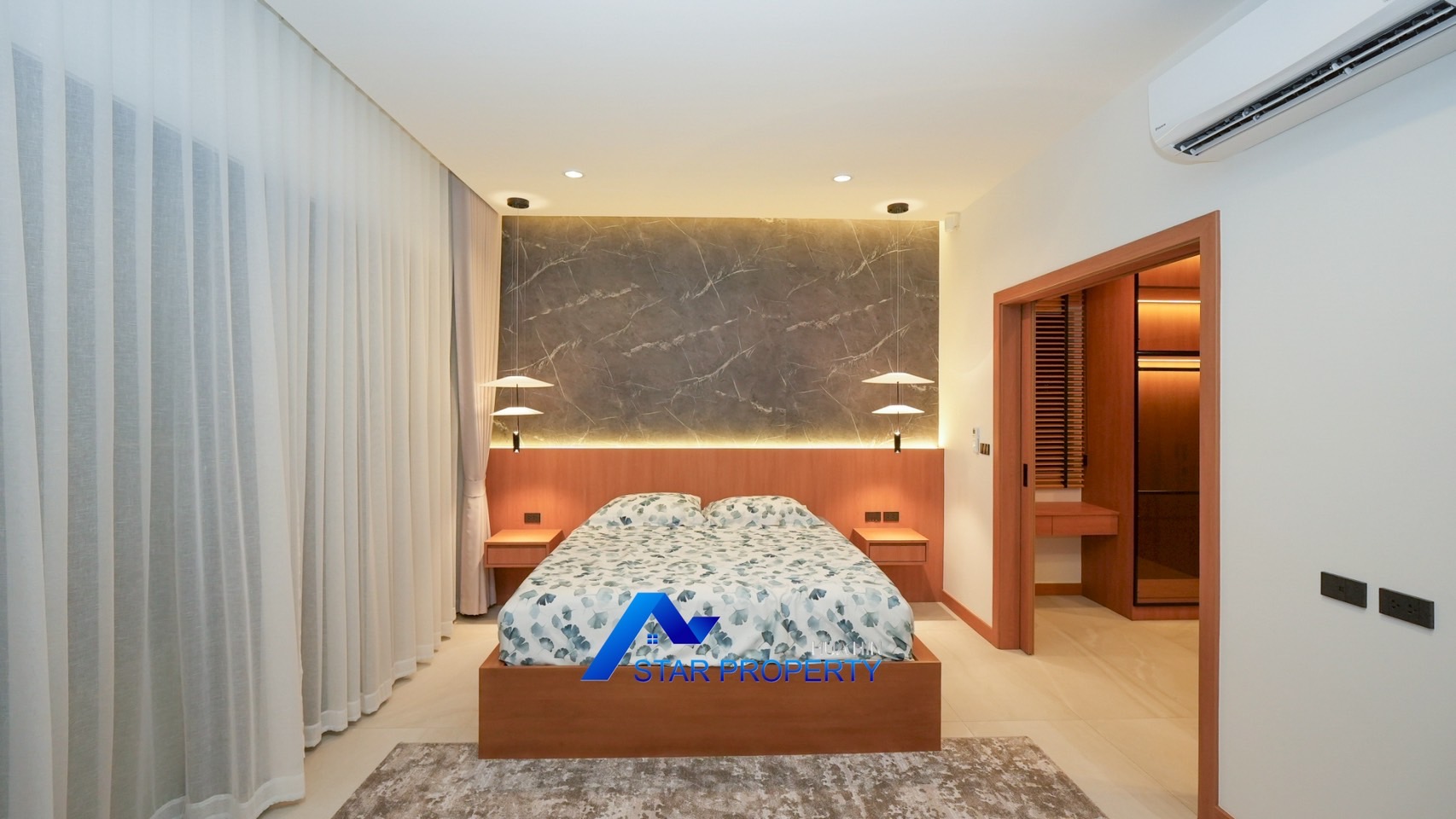 – Teakwood bed in every bedroom along with teakwood bedside cabinet design and color by customer choice.