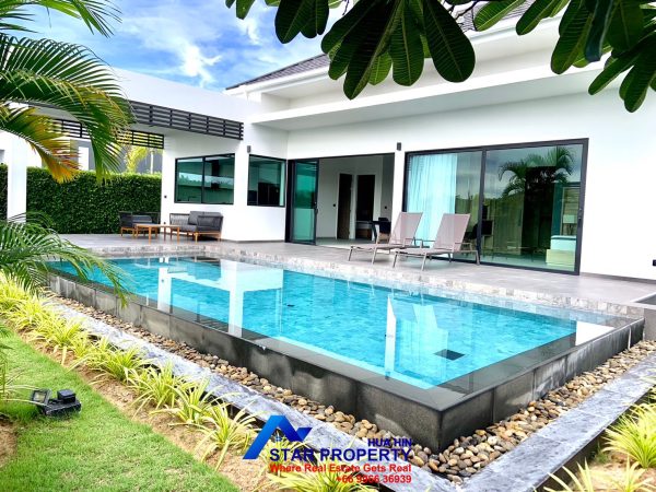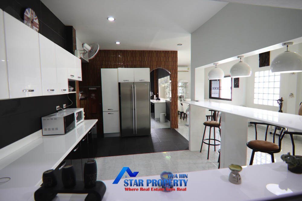 This delightful 4-bedroom pool villa is situated just north of Hua Hin city center in the popular Soi 6 area. The property offers a blend of comfort and functionality, making it an ideal residence for families or those who enjoy entertaining guests.