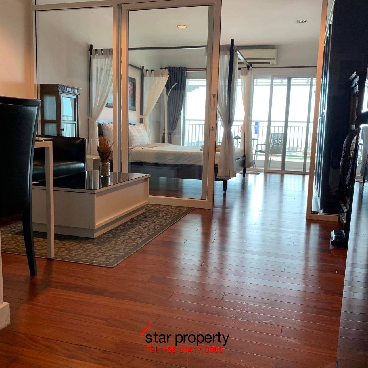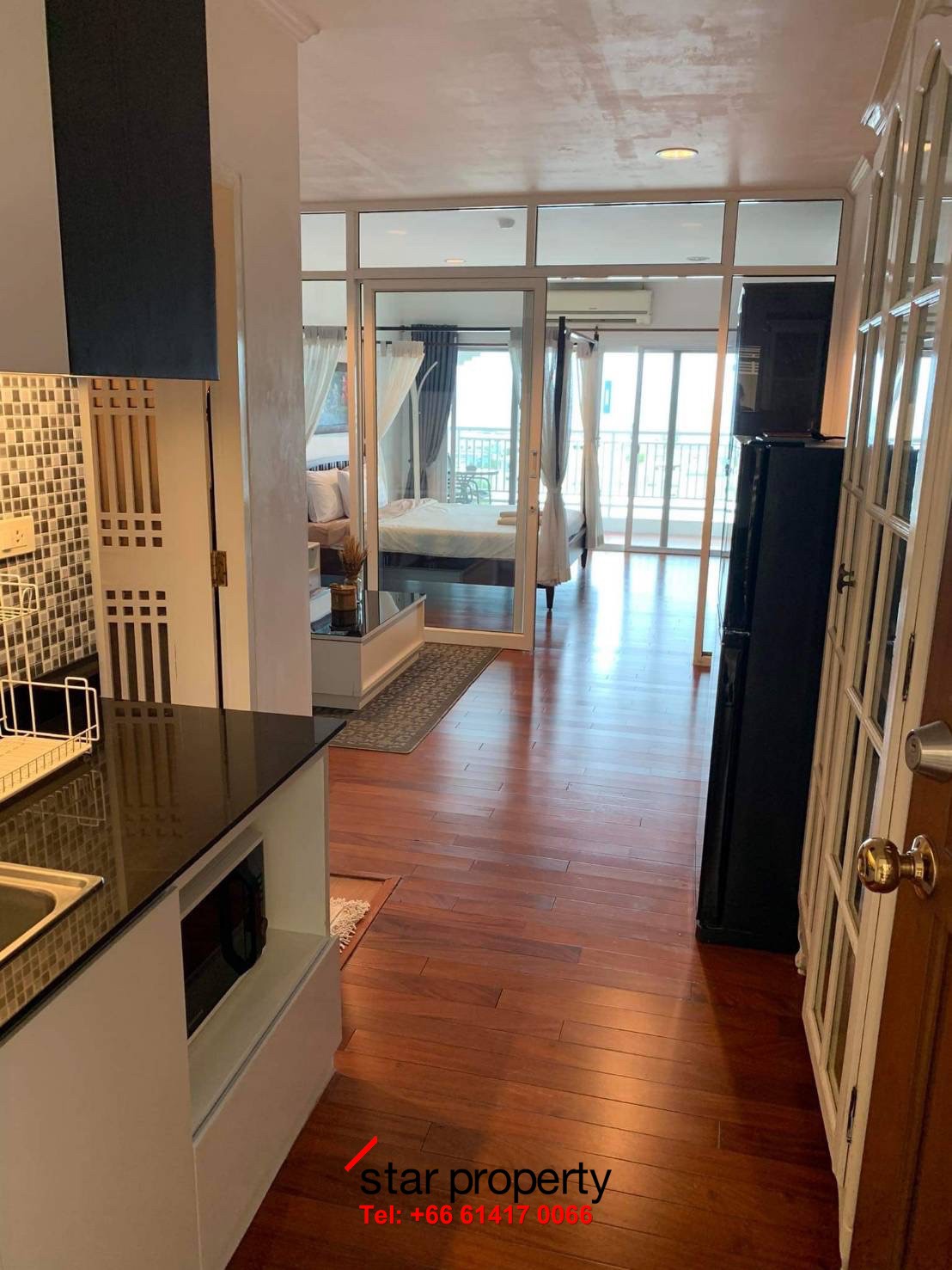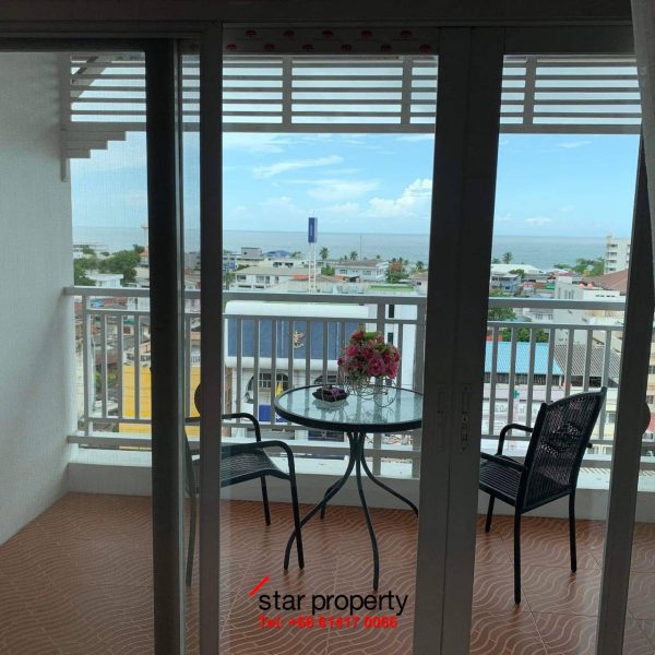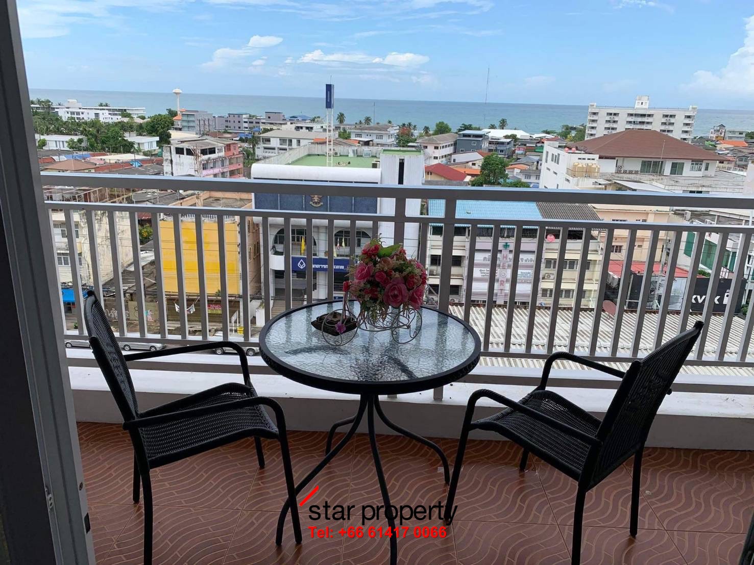 The large room separates the bedroom and living room. Bathroom with separate shower area and cooking area Spacious balcony, sea view and Hua Hin city view, located on the 8th floor, size 41 square meters, near Hua Hin Market, next to the main road, next to Petchkasem Road, has a swimming pool, fitness center, garden, vans, public buses in front of the condo, convenient to travel.