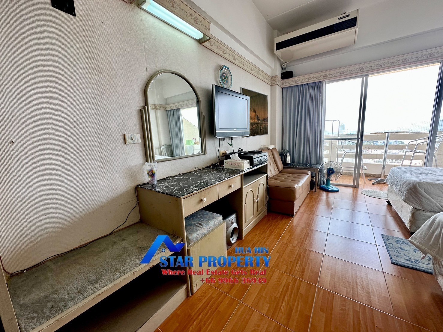This sea view unit comprises of 1 bedroom with 1 bathroom, separate living room and a balcony overlooking to the ocean. The property was completely renovated, so is fresh and functional.