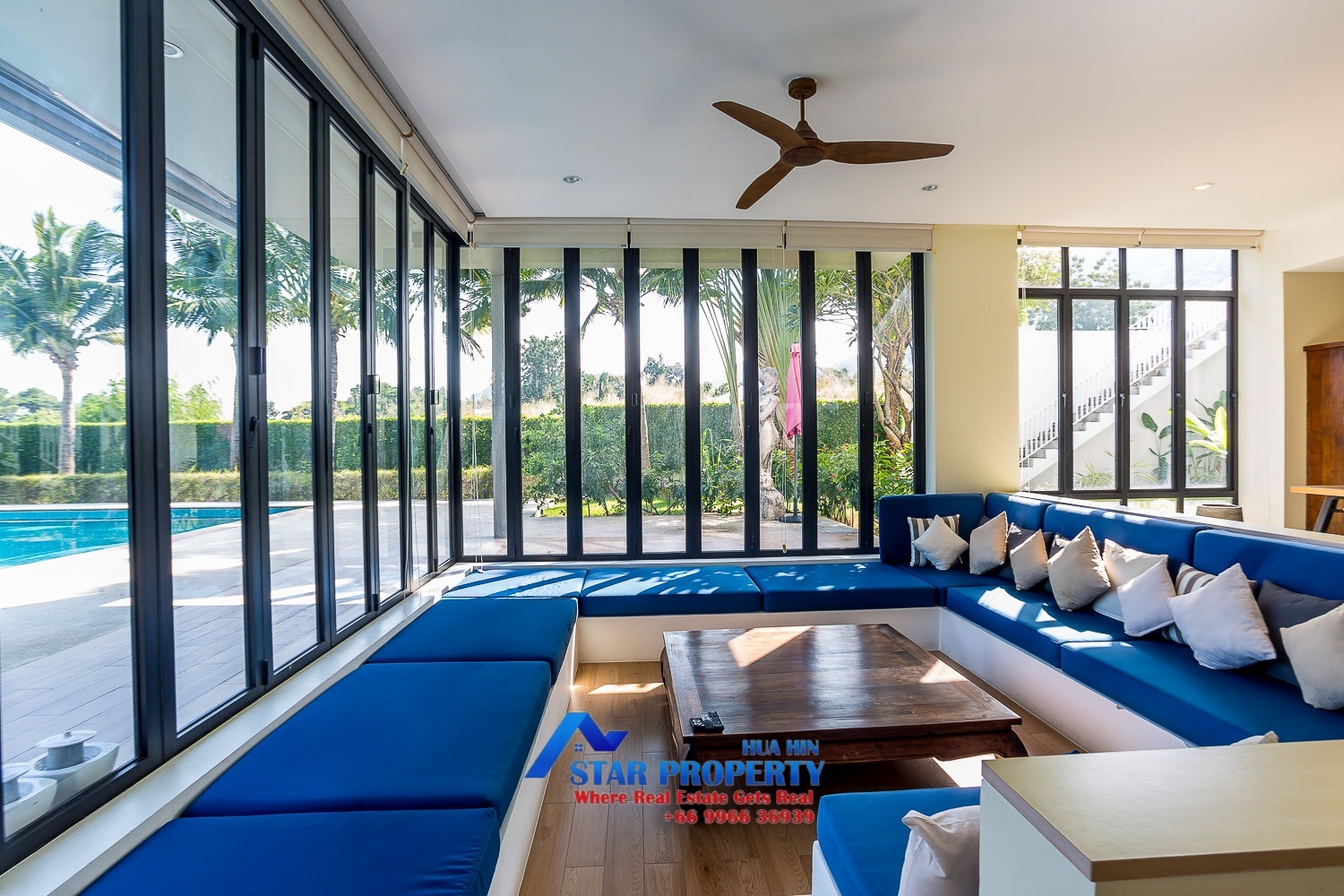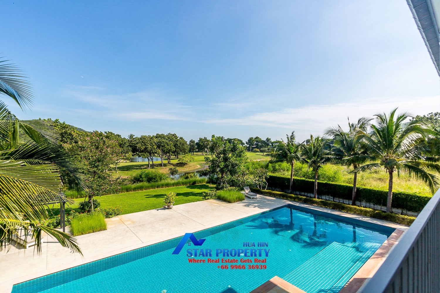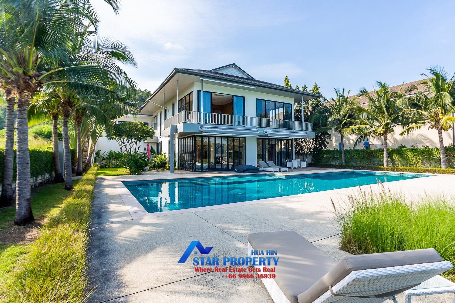 Luxury golf villa that embodies all characteristics one looks for in a private home with open living areas and expansive terraces. Large swimming pool 20 x6 meter offers an excellent family retreat. The villa is situated directly on the golf course with a great view to Hole#6. Merely a 15-minute drive from Hua Hin and nestled in the green oasis of Palm Hills Golf Course, this home offers the pinnacle of luxury. Occupying a 1,800 square meters plot, offering an over-sized living room, 5 bedrooms, 5 bathrooms, huge kitchen with dining room. This exceptional golf villa in a highly attractive area is offered at a very competitive price. Prefer long term rent only.