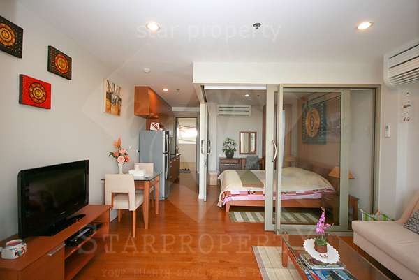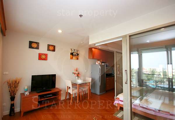 Fitted out to the highest standard. This unit consists of 1 bathroom, a dining area and adjoining European-style kitchen. There is a fully equipped gym, free to use for residents, 15.000 sq. meters of swimming pool. Full sea view from the condo and easy walking access to the beach and the infinity pool by the beach. There are tables with sun umbrellas and chairs by the beach and the Infinity swimming pool.