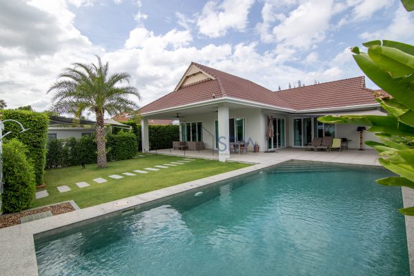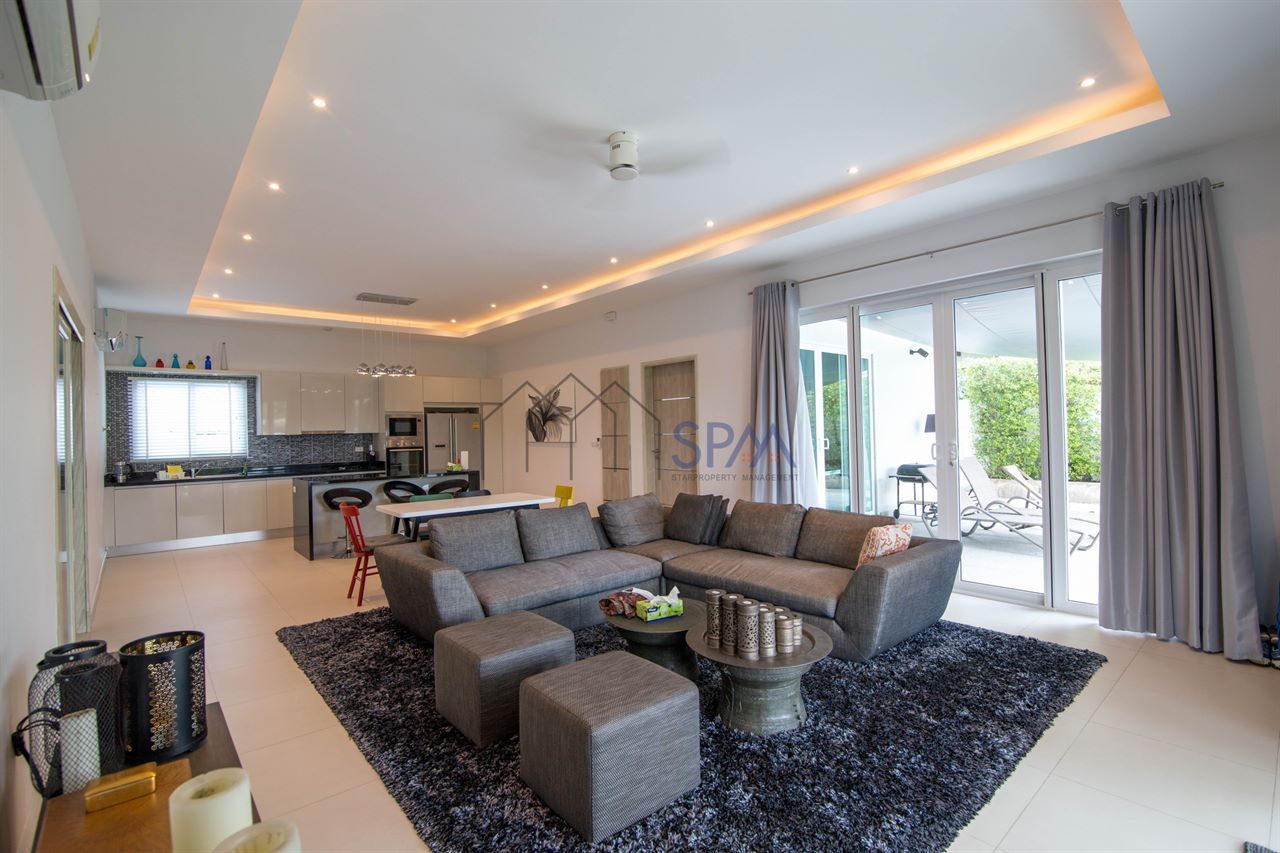 Beautiful 3 bedrooms and 2 bathrooms Villa at the successful development Smart House. Nice living room with open kitchen. All rooms with air-conditioning. Smart House is situated about 8 km. from the center of Hua Hin.