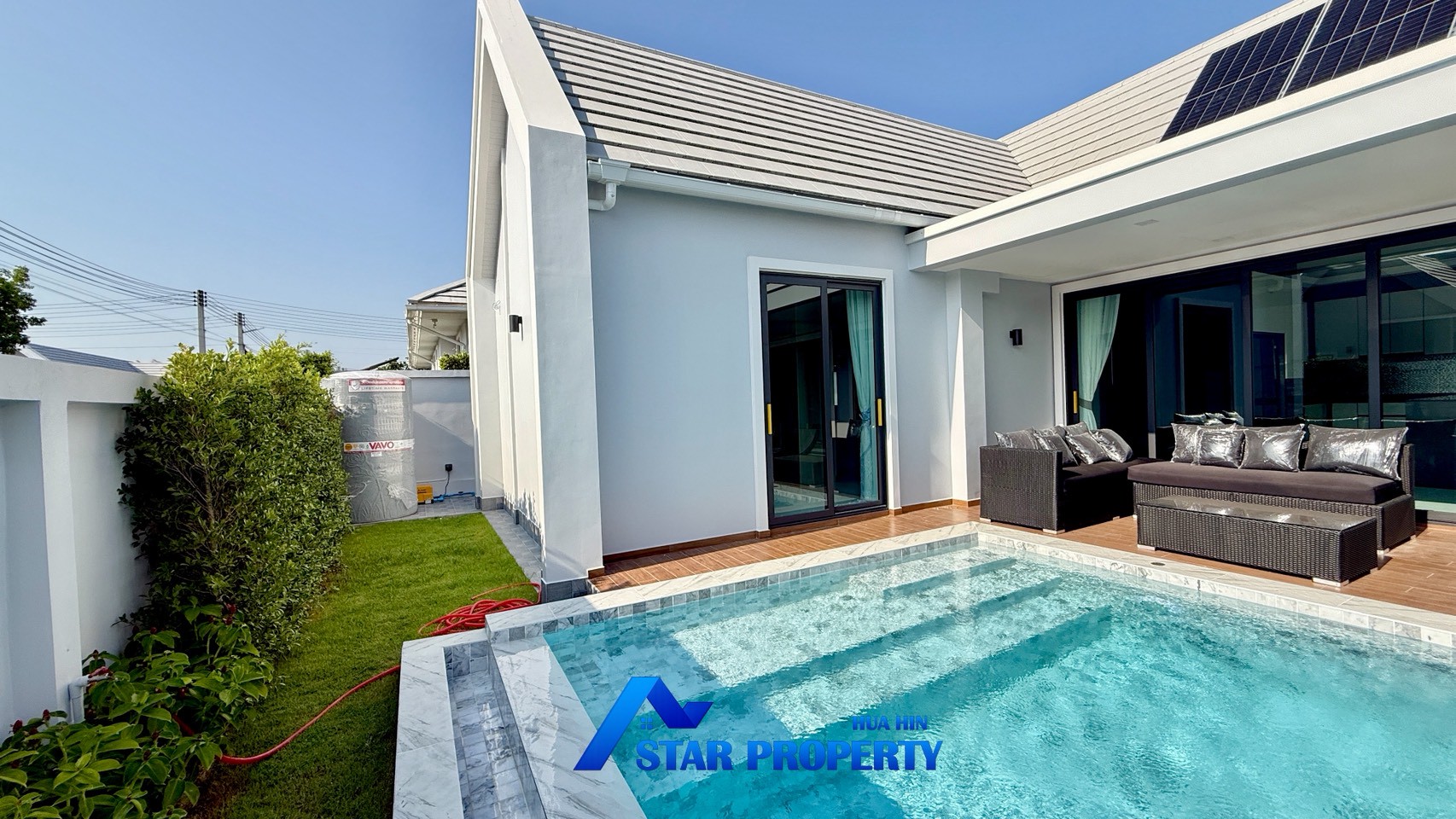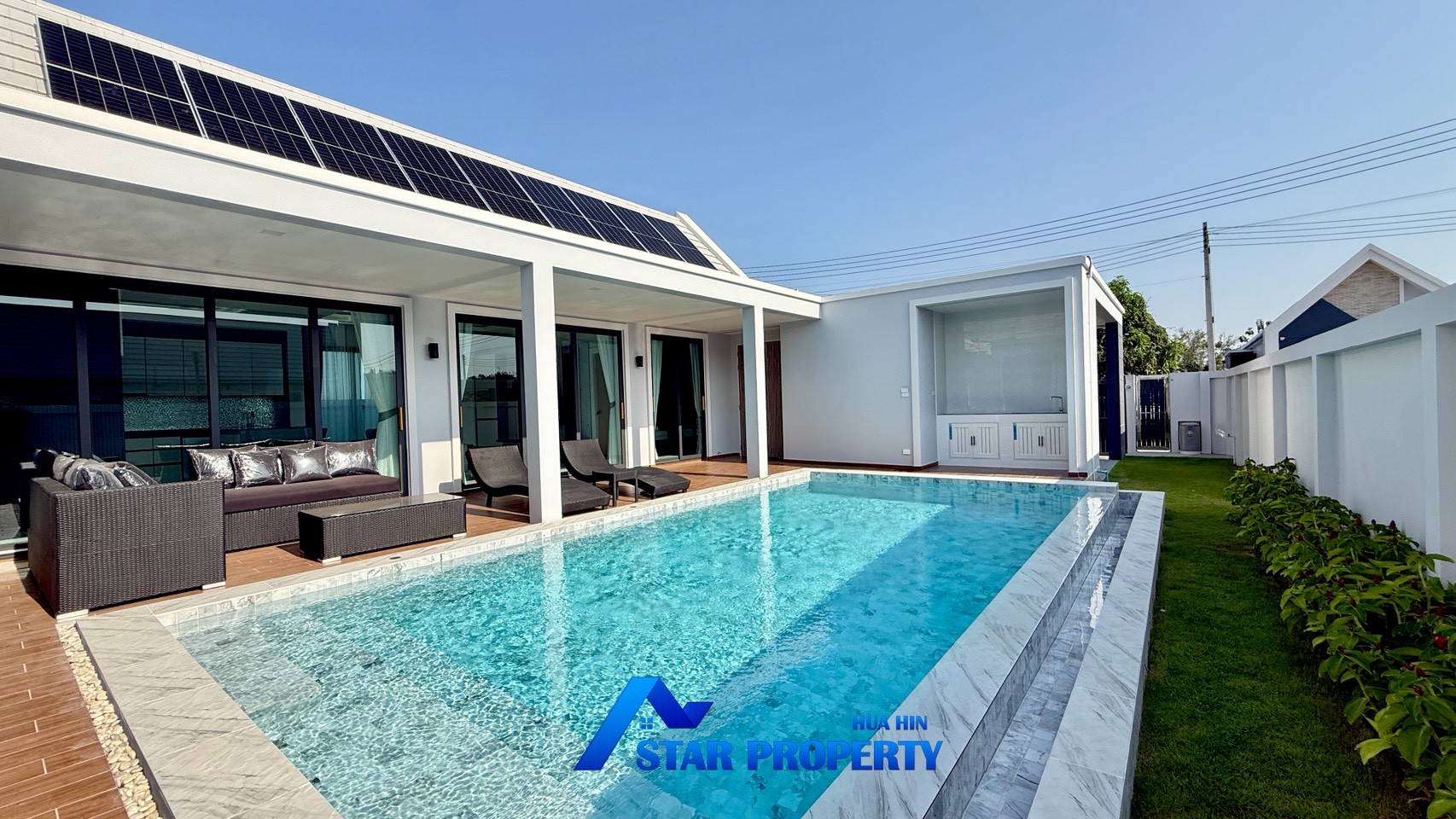 Equipped with 5 kV solar panels, the property helps reduce electricity costs while promoting energy-efficient living. The villa also benefits from a low monthly common area fee of only 1,600 THB, ensuring excellent value in a well-maintained community.