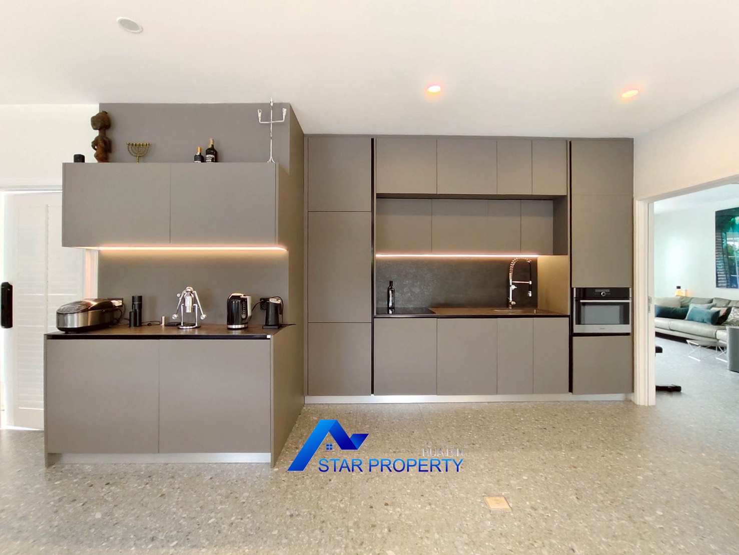 Functional Luxury: A fully equipped European-style kitchen serves the home, and a versatile storage room can be easily converted into a maid’s room with its own bathroom.