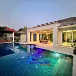 Great Design and Quality 4 bed 3 storey pool villa. This Villa is close to town and features on the ground floor a very large open plan living, dining and modern kitchen with guest bathroom and utility room, 4 bedrooms and 4 bathrooms upstairs on the second and third floors with lovely balconies facing the sea and there is a separate guest house which can be multi-purpose. The villa stands on a 1 rai plot with beautiful gardens and is surrounded by countryside and with sea views. The villa also has very high quality materials and furniture.