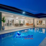Pool Villa in Palm Hills Golf Course, just a 15-minutes drive from Hua Hin and Cha-am is true luxury in all aspects of location, building style, facilities, furnishing, and decoration. The unobstructed views directly to the golf course fairway. This is one of the very best locations at Palm Hills Golf Resort. The villa consists of several buildings facilitating a spacious living/dining lounge, a fully fitted modern kitchen, 4 bedrooms + 2 bathrooms + 2 toilets on the main building and 1 guestroom – en suite. Outside a fantastic relaxation area combined with a sloping overflow swimming pool.