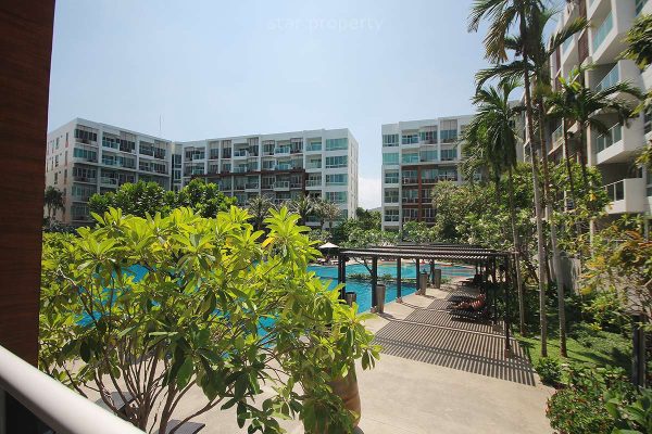 The unit has a balcony to enjoy the view from the balcony. There is also a large community swimming pool.