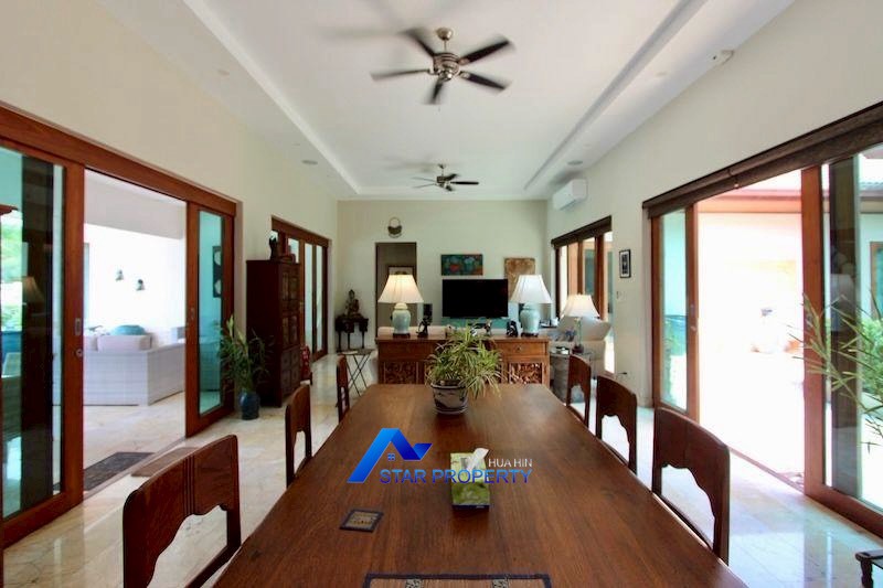 This Hana Lani 7-bedroom Bali-style mansion is a truly must-see luxury property, located within the highly regarded Hana Lani Village, known for its high-quality construction and exclusive Bali-inspired villas. Just 3 km from the tranquil Khao Kalok Beach, the villa offers a rare combination of privacy, space, and resort-style living surrounded by nature.