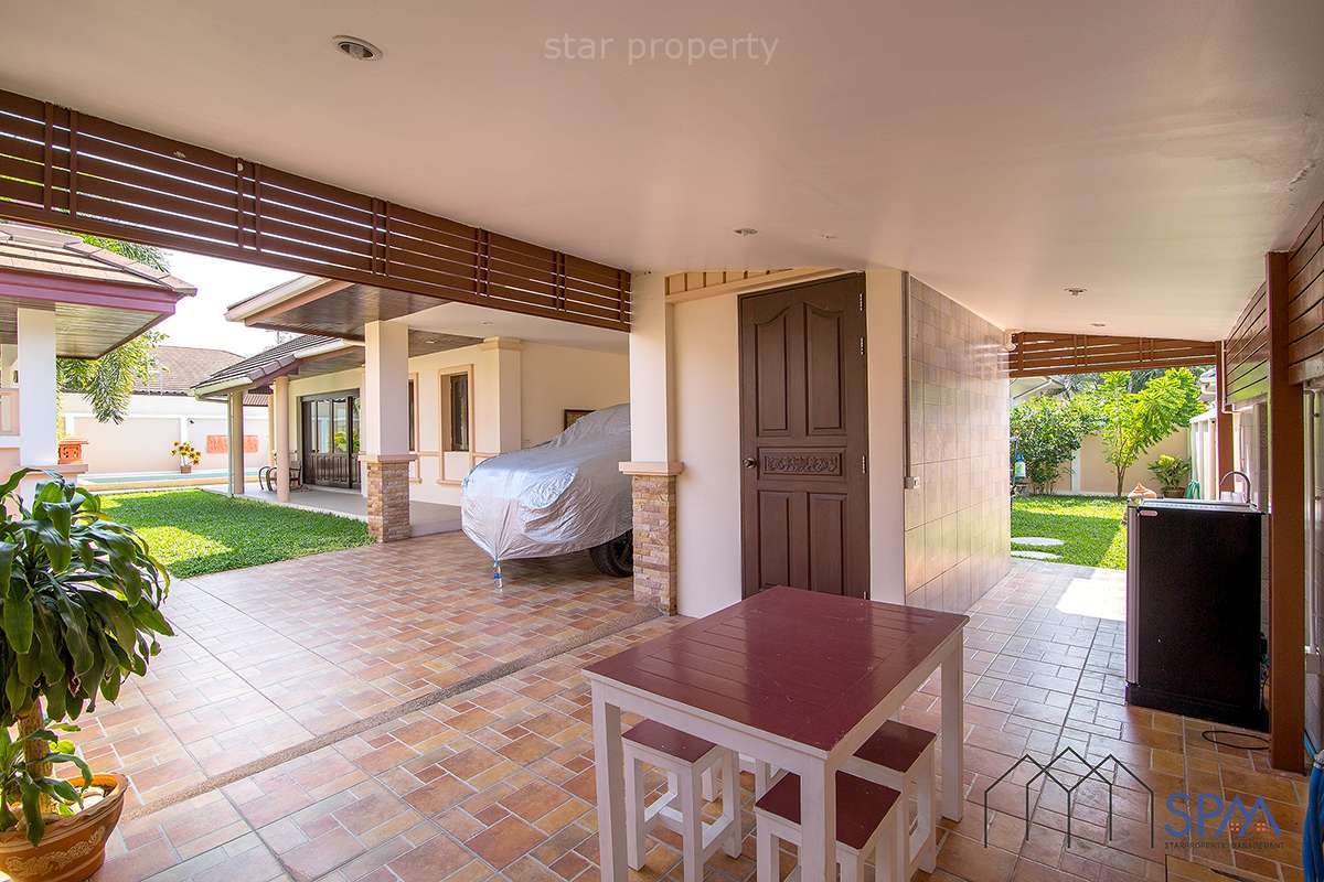 This beautiful villa has an outdoor kitchen and storage room next to the car-park.