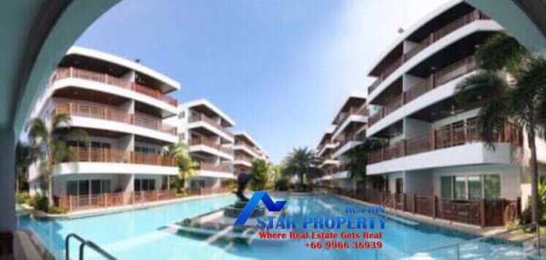 A large community beachfront swimming pool, parking and 24-hour security.