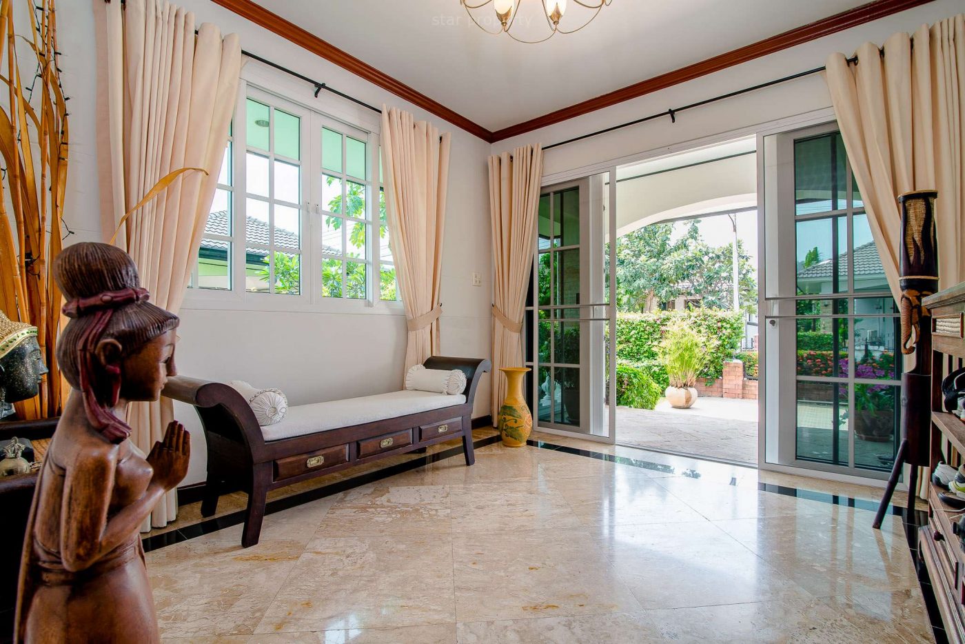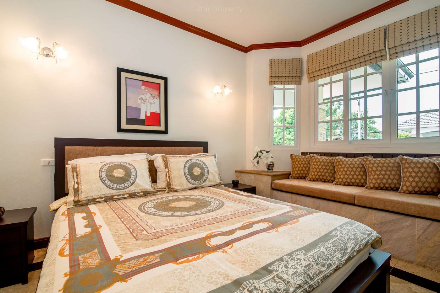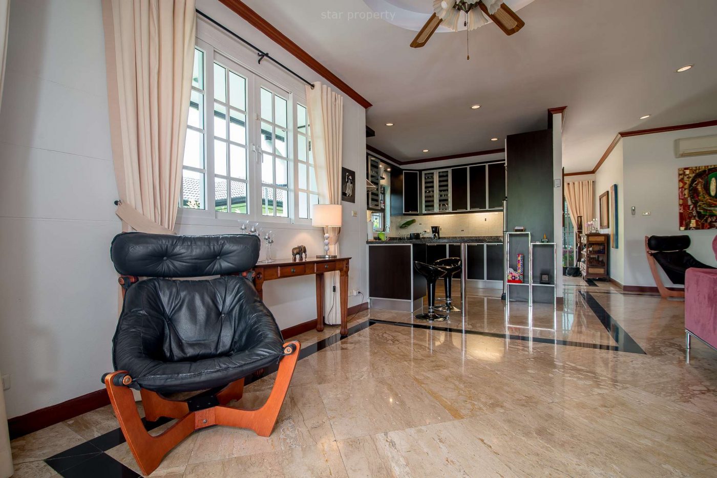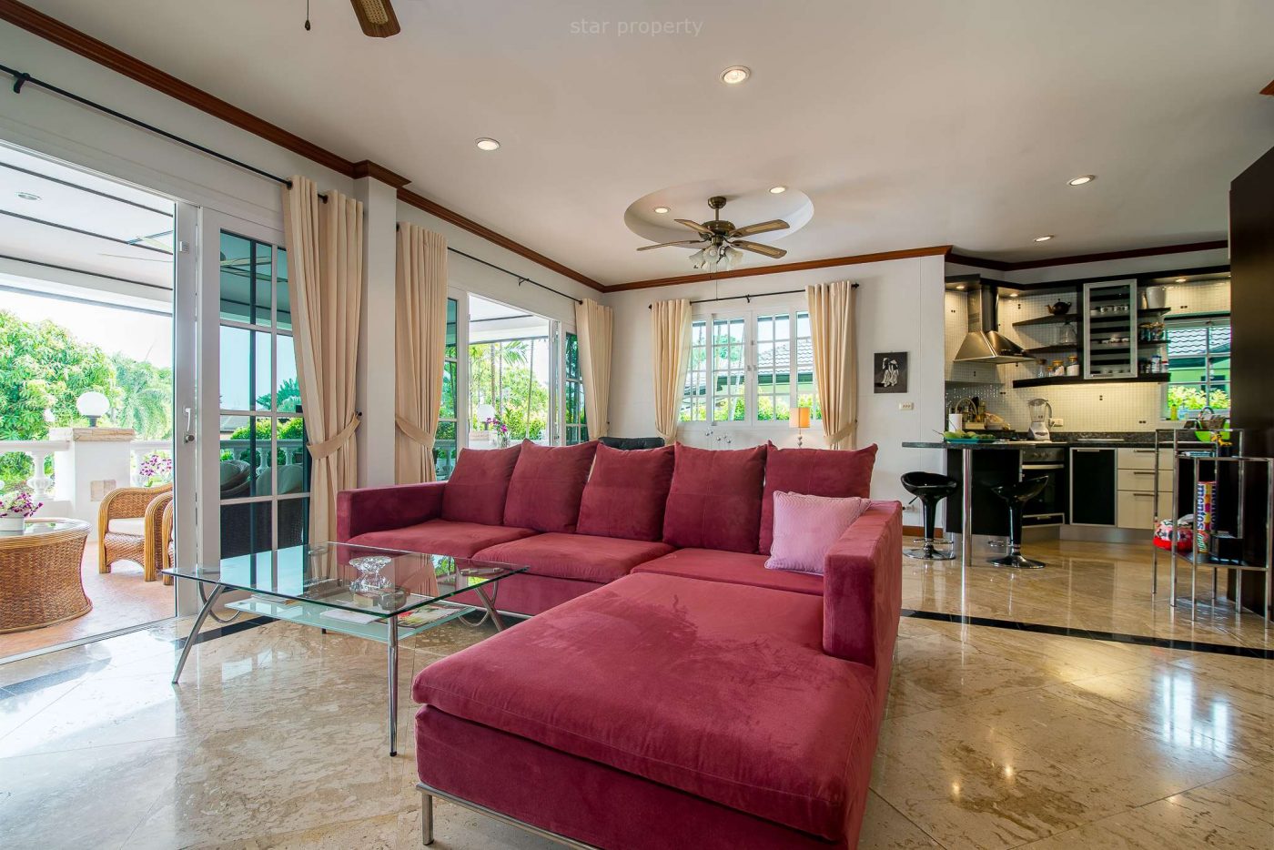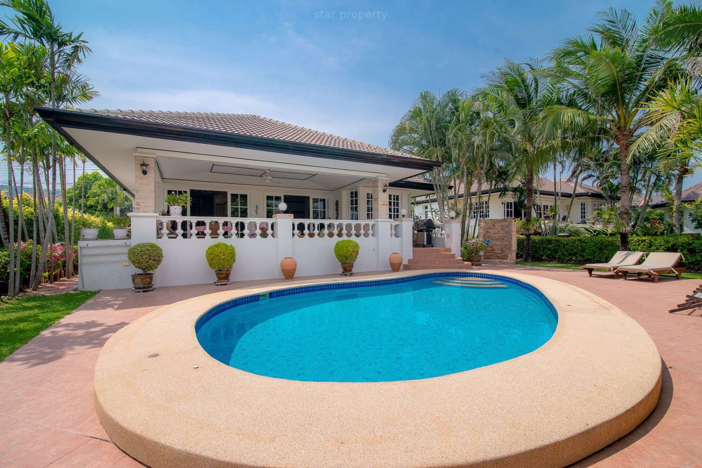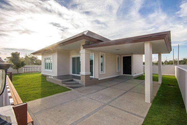 This bungalow is located on the Hua Hin Laguna project, 2km only, south of Hua Hin town centre and consists of 3 bedrooms, 2 bathrooms, living room & dining, kitchen, garden with car parking,and sale is with property fully furnished.