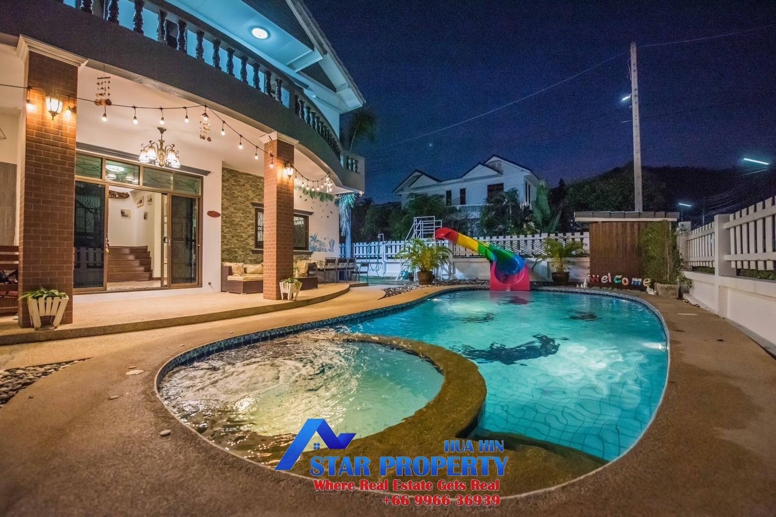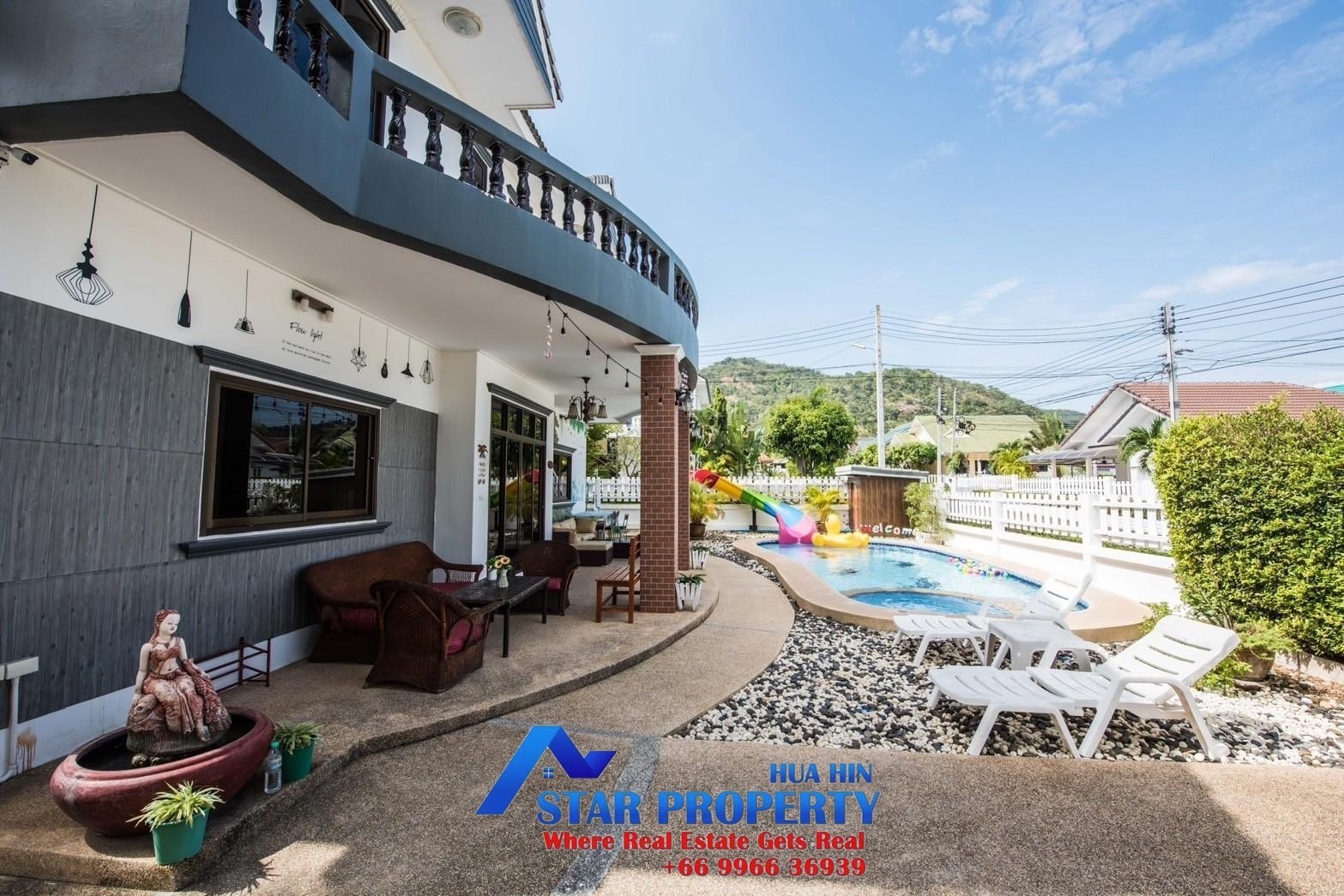 House for sale, Pool Villa, very large house, mountain view on the hill, very beautiful. Facing north, cool breeze all day, located in Hua Hin 58, Samo Phrong, price 5.55 million baht ** • Free transfer •