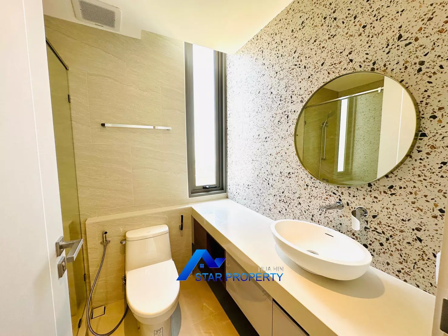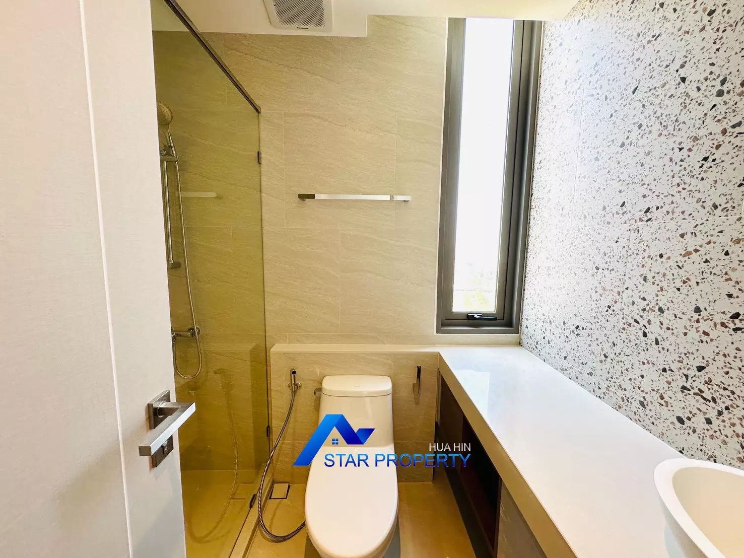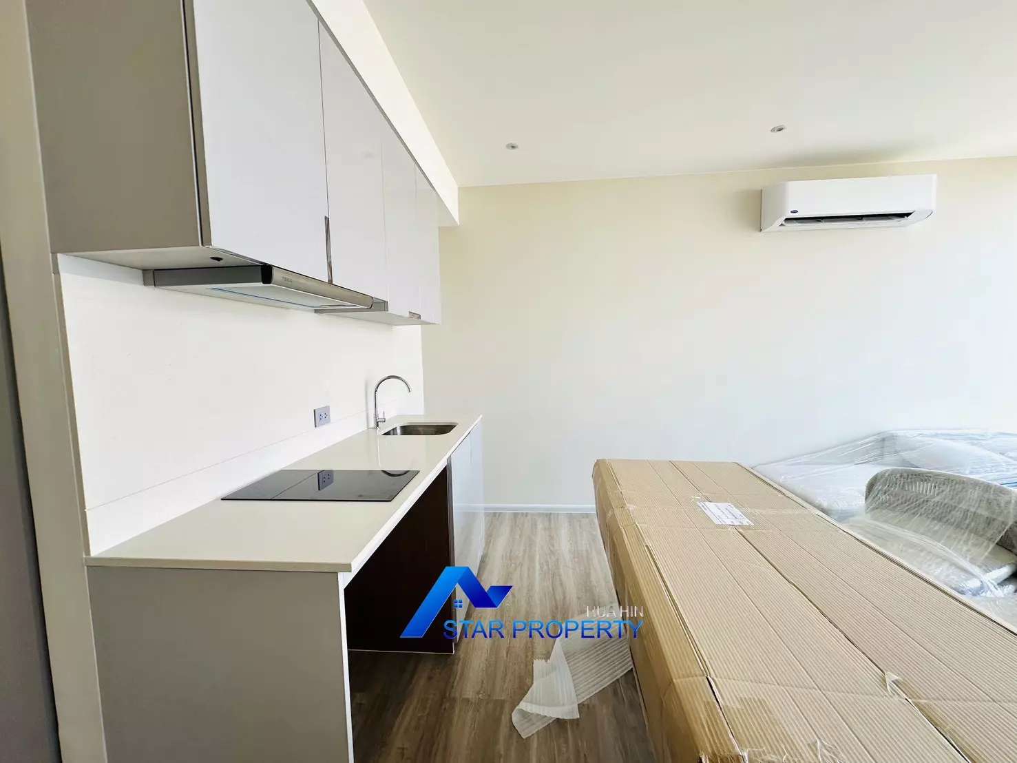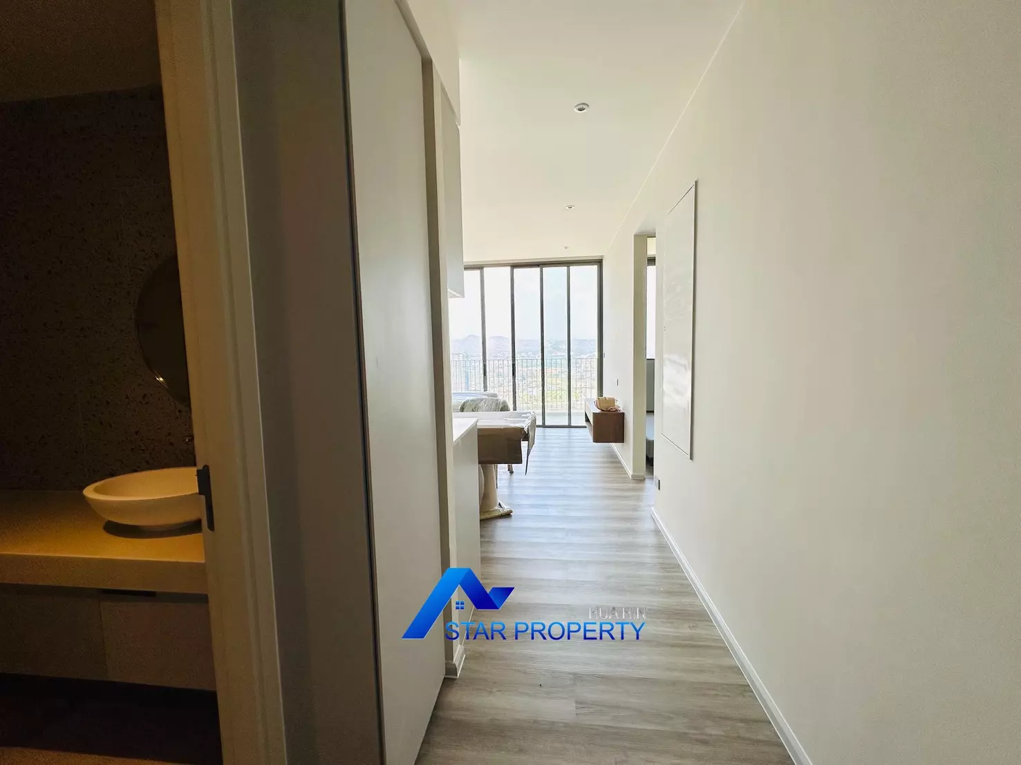 The apartment is fully furnished with brand-new, high-quality furniture, ready for immediate move-in. The modern open-plan living and dining area connects seamlessly to a very large balcony, perfect for relaxing, entertaining, or enjoying stunning sunsets over Hua Hin.