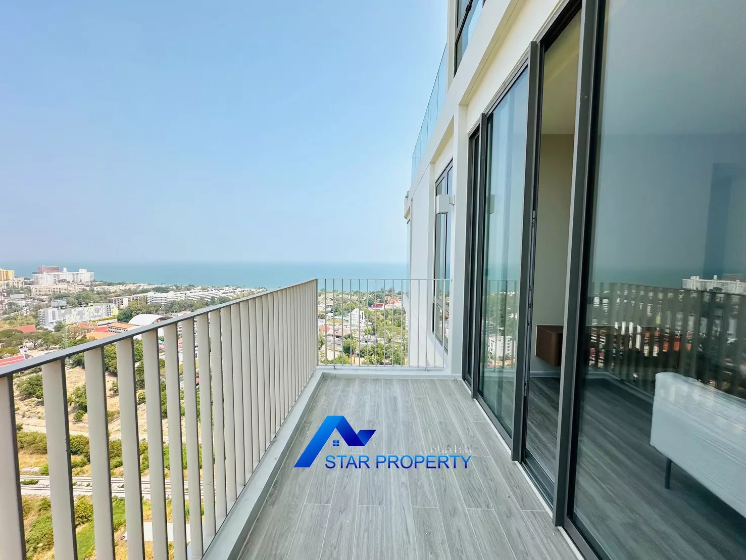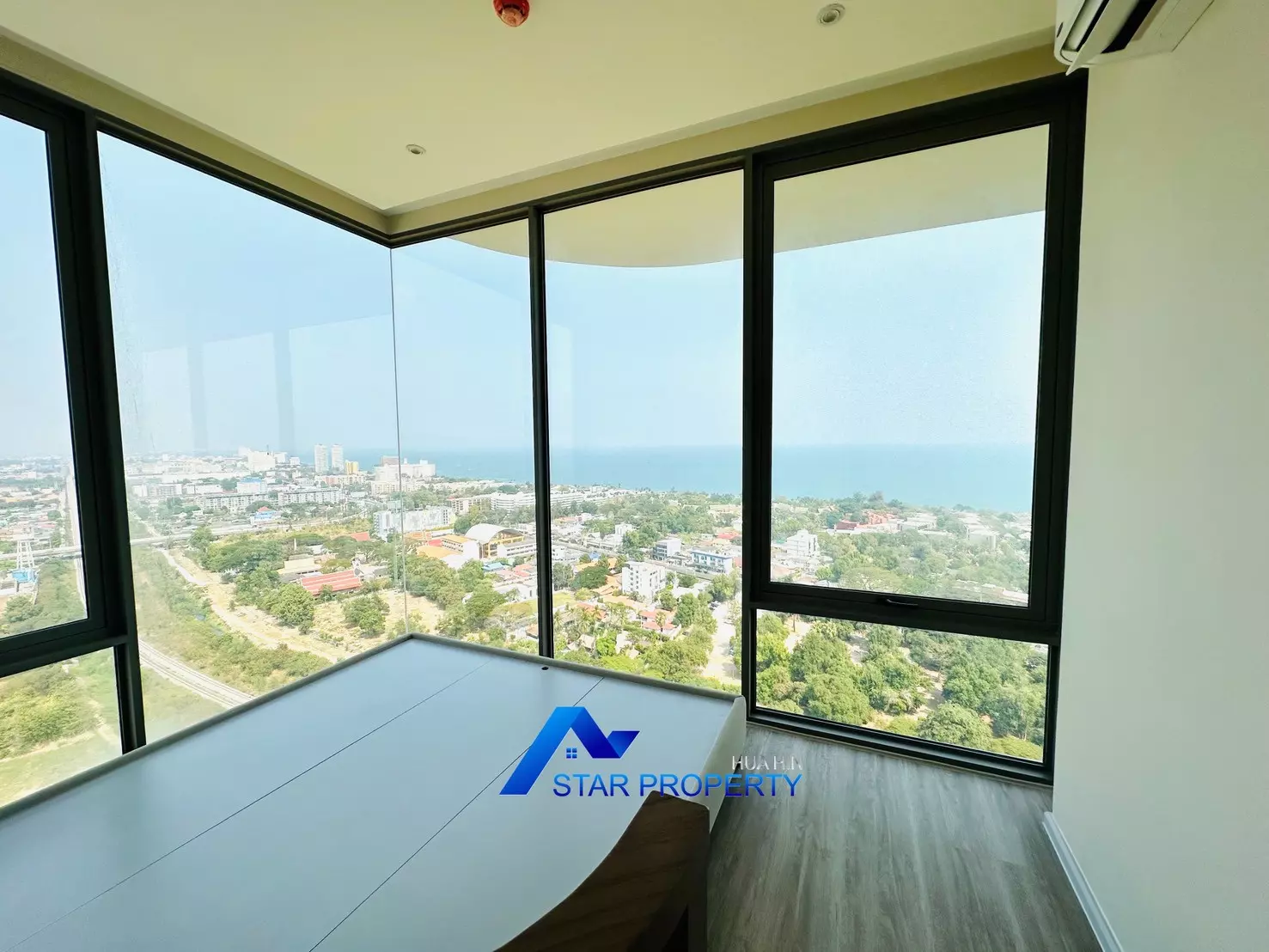 Experience elevated coastal living in this exceptional high-floor corner unit at Vehha Hua Hin, offering breathtaking panoramic sea and city views.