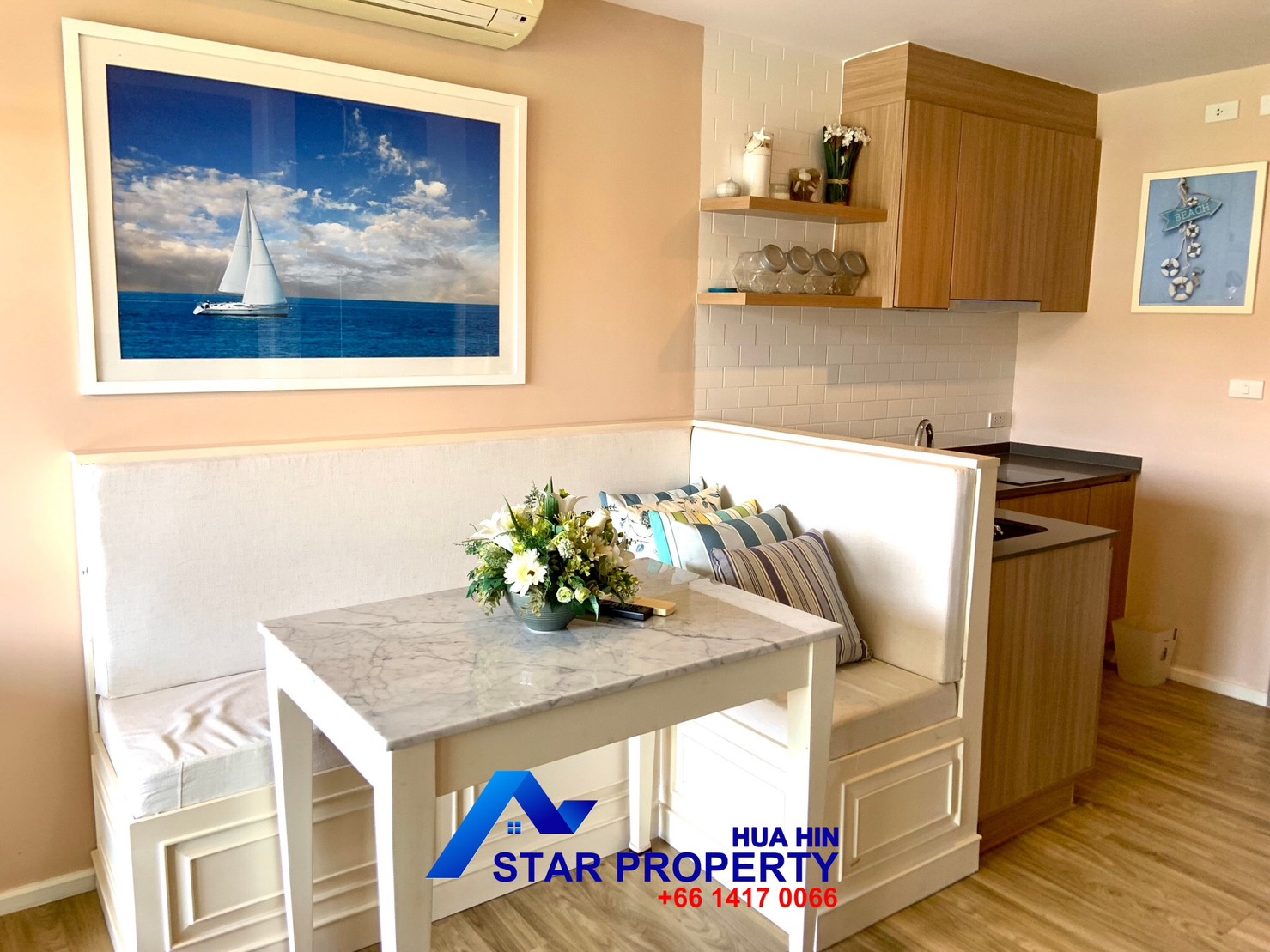 Luxury condo, prime location Just a few steps away from the pristine white sandy beach. The sea water sparkles in the bright sunlight. It’s even more sedative and relaxing, perfect for a day off from a tiring day. This beautiful house in Hua Hin is able to imprint everything to create an impression in every step. Baan Saen Ngam Hua Hin with a condo that comes with the concept of Precious Nature that has created nature to transform into beauty in the style of art. Perfect for every age, every lifestyle, creating a perfect harmony of differences. The atmosphere around the project is lush with greenery and shady trees, ready to breathe in ozone to the fullest extent. Surrounded by the large Freedorm swimming pool, it is conveniently located near many amenities and chic tourist attractions such as The Venezia Hua Hin, Stamford University, Hua Hin and the famous seafood restaurant. Chomtalay restaurant as well