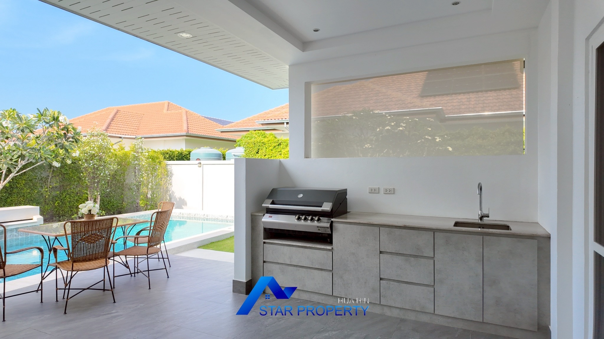 Experience refined tropical living in a peaceful, mountain-surrounded setting just 15 minutes from Hua Hin town. This exclusive villa offers privacy, comfort, and modern design—perfect for both living and investment.