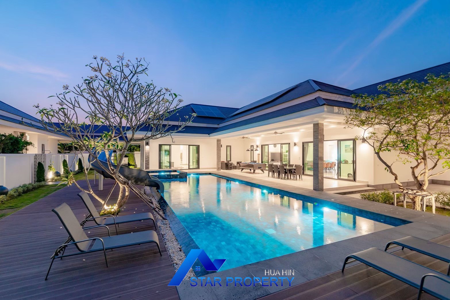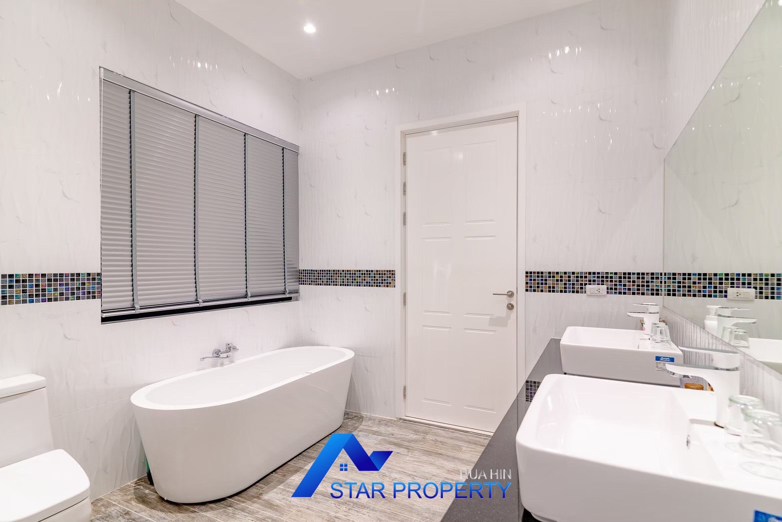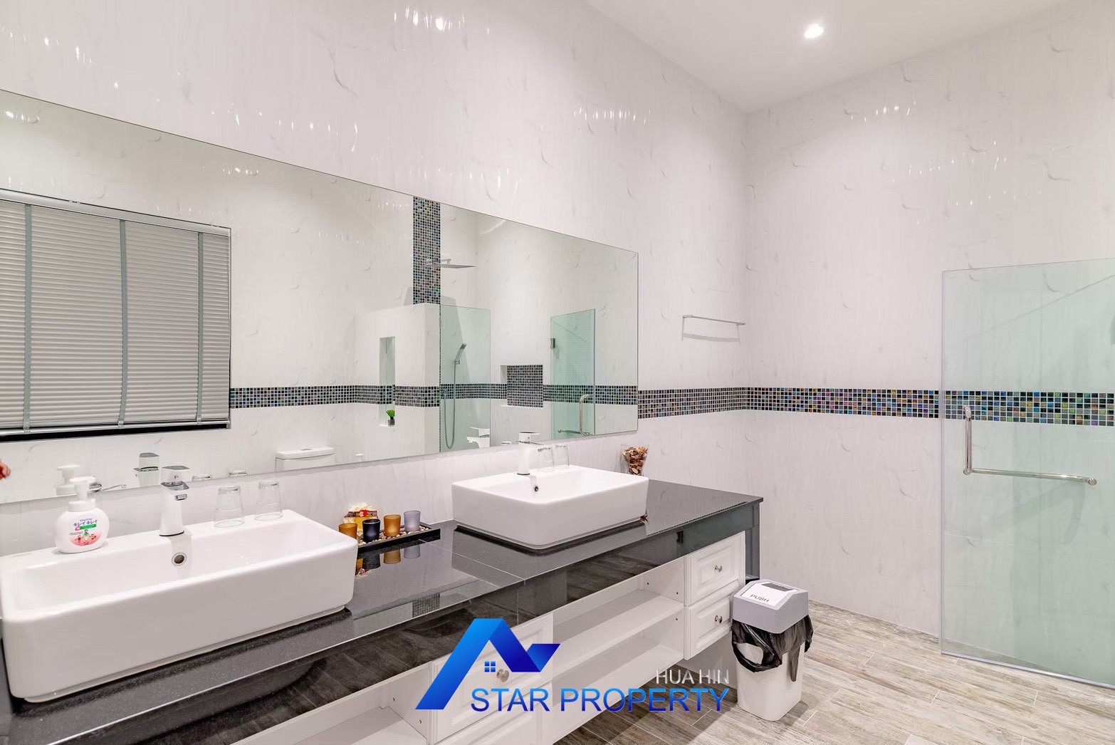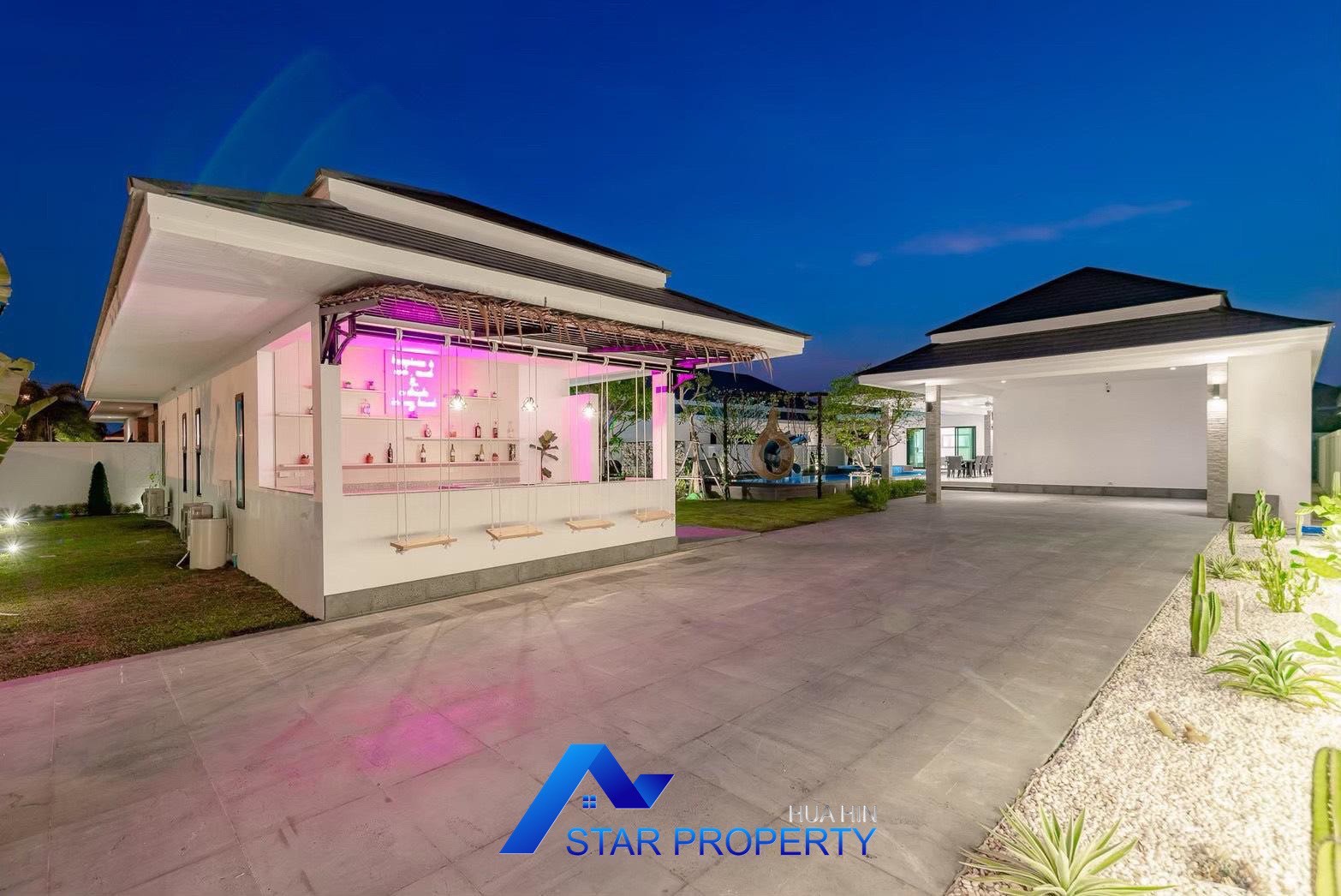 New luxury houses for sale in Hua Hin – Cha Am. Each spacious 5 bedrooms, 5 bathrooms villa includes a large private swimming pool and lanscaped private gardens